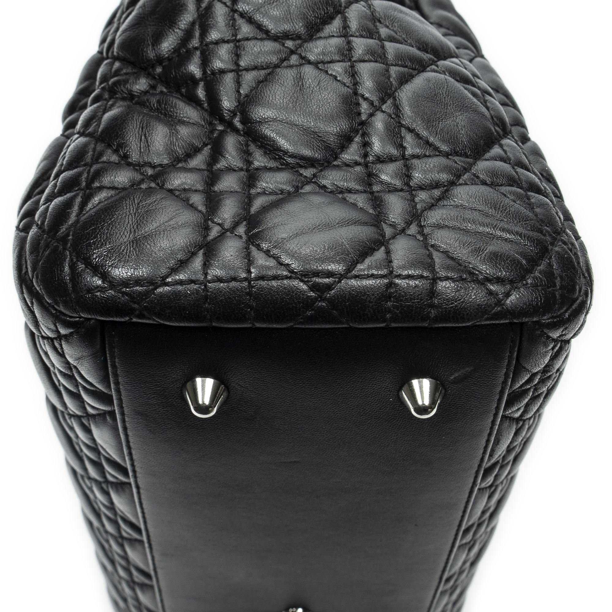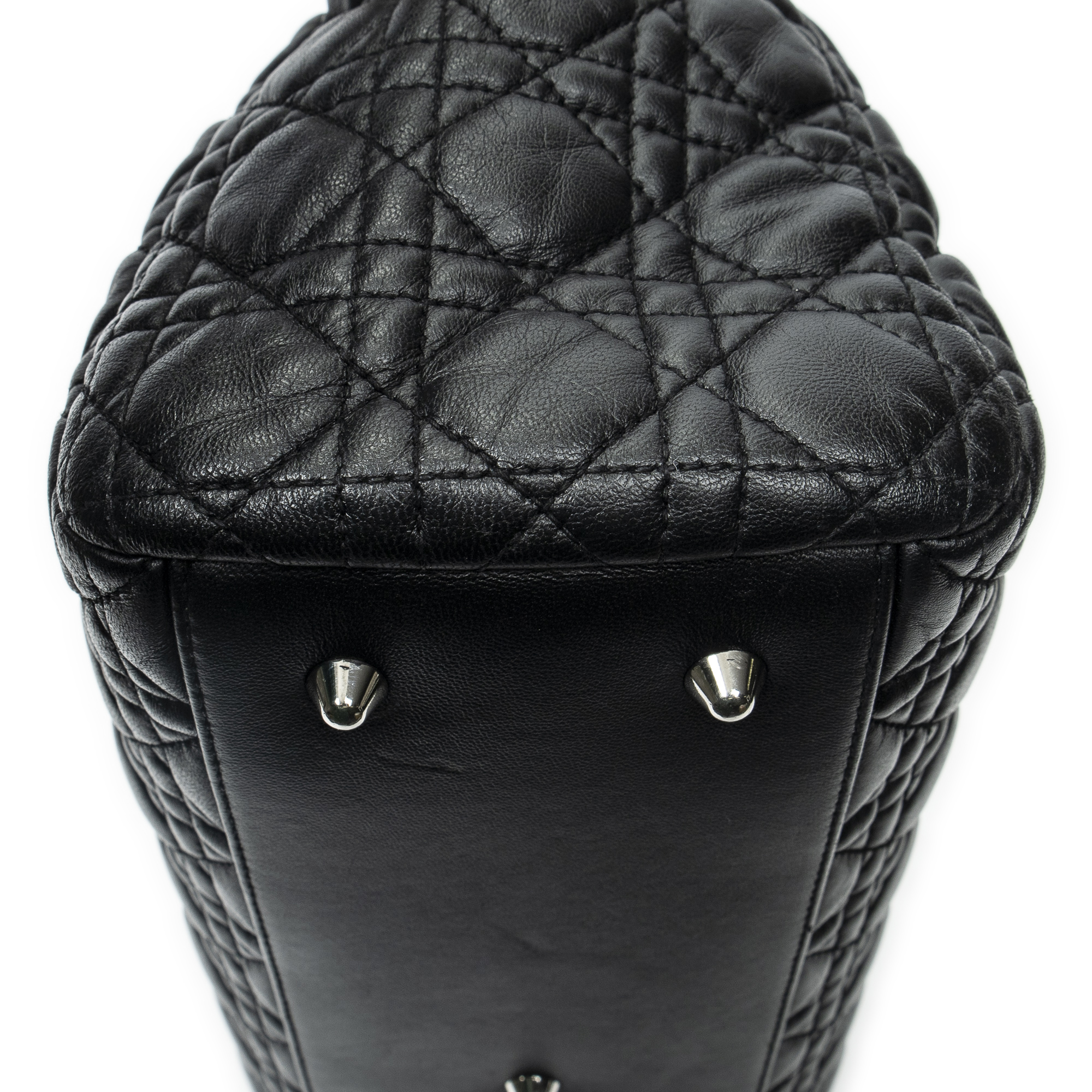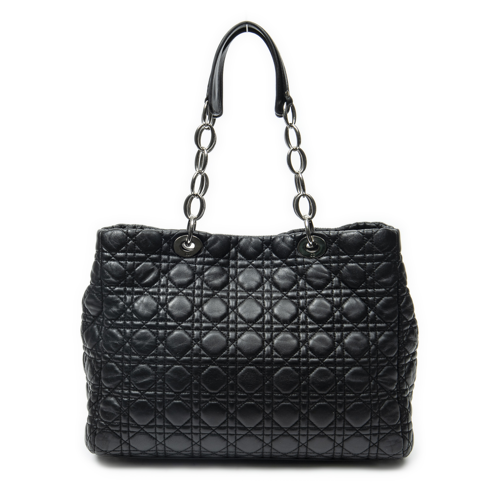 Dior Shoulder Bag Medium Soft Shopping Tote in Black Cannage Calfskin Leather and Silver hardware. The product is in Perfect Condition (AA).