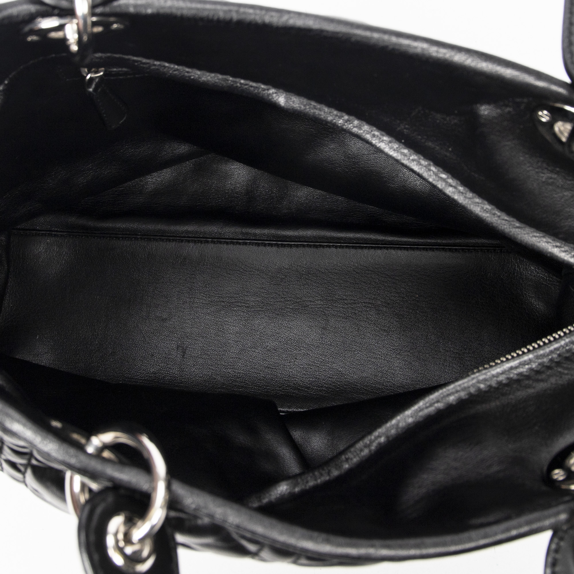 Dior Shoulder bag Medium Soft Shopping Tote in Black Cannage Lambskin Leather and Silver hardware. The product is in Excellent Condition (A).