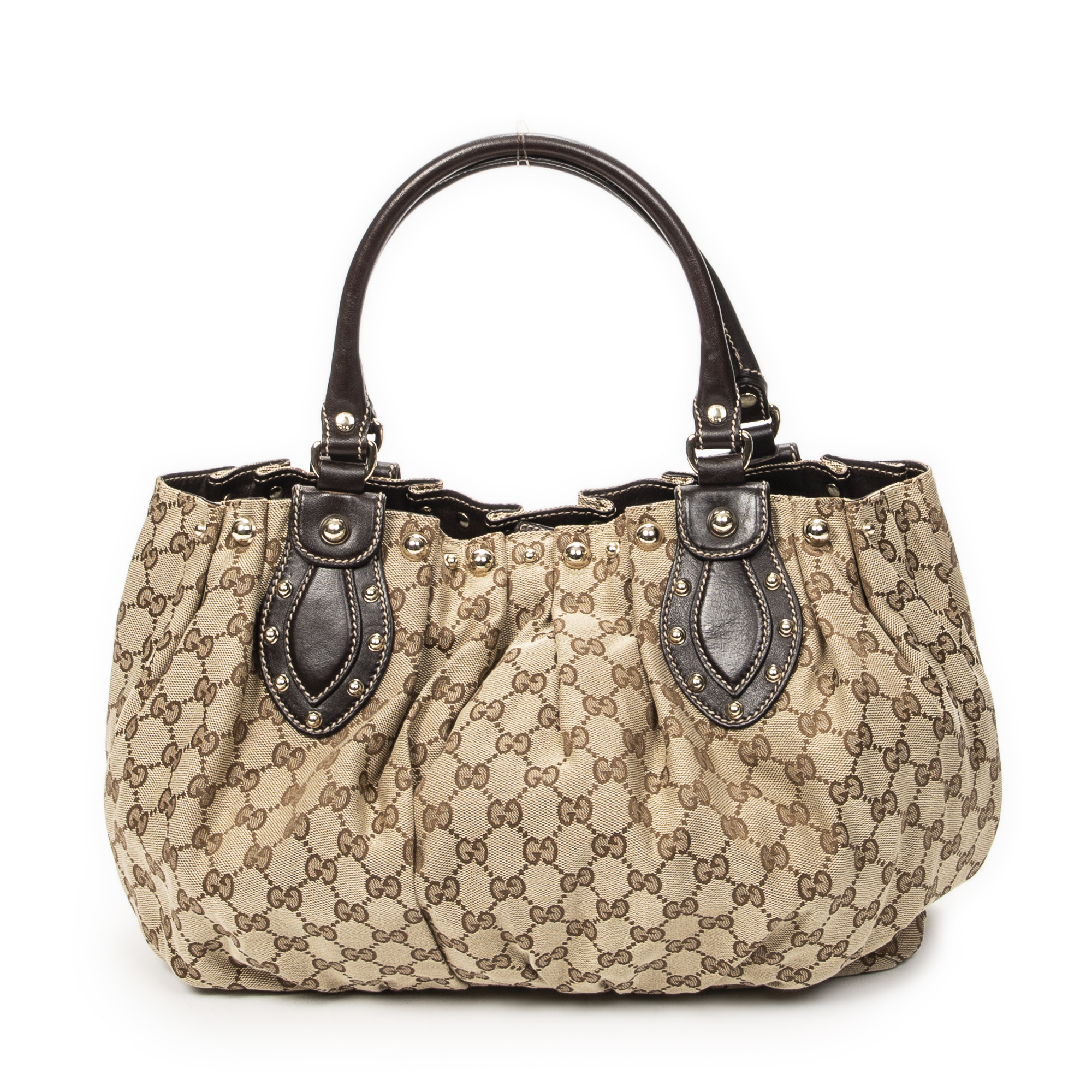 Description : Gucci Shoulder Bag Medium Studded Pelham Tote in Beige/Dark Brown Monogrammed Canvas and Gold hardware. The product is in Excellent Condition (A). Dimensions: 32x28x12 cm SKU: ABC8557 Serial number: 206719-467891 Accessories Included: Booklet Delivery: We have a 5 to 7 business days delivery policy, hassle-free and duties/tariffs included! BrandCo Paris finds rare and top condition items at great deals, they are worth your patience! Shop with confidence - All BrandCo Paris items are carefully selected and authenticated by our team of experts. All the items come with an authenticity certificate and packaging delivered by BrandCo Paris. Item Condition Grading Table N (Like New) AA (Perfect Condition) A (Excellent Condition) AB (Very Good Condition) B (Good/Fair)