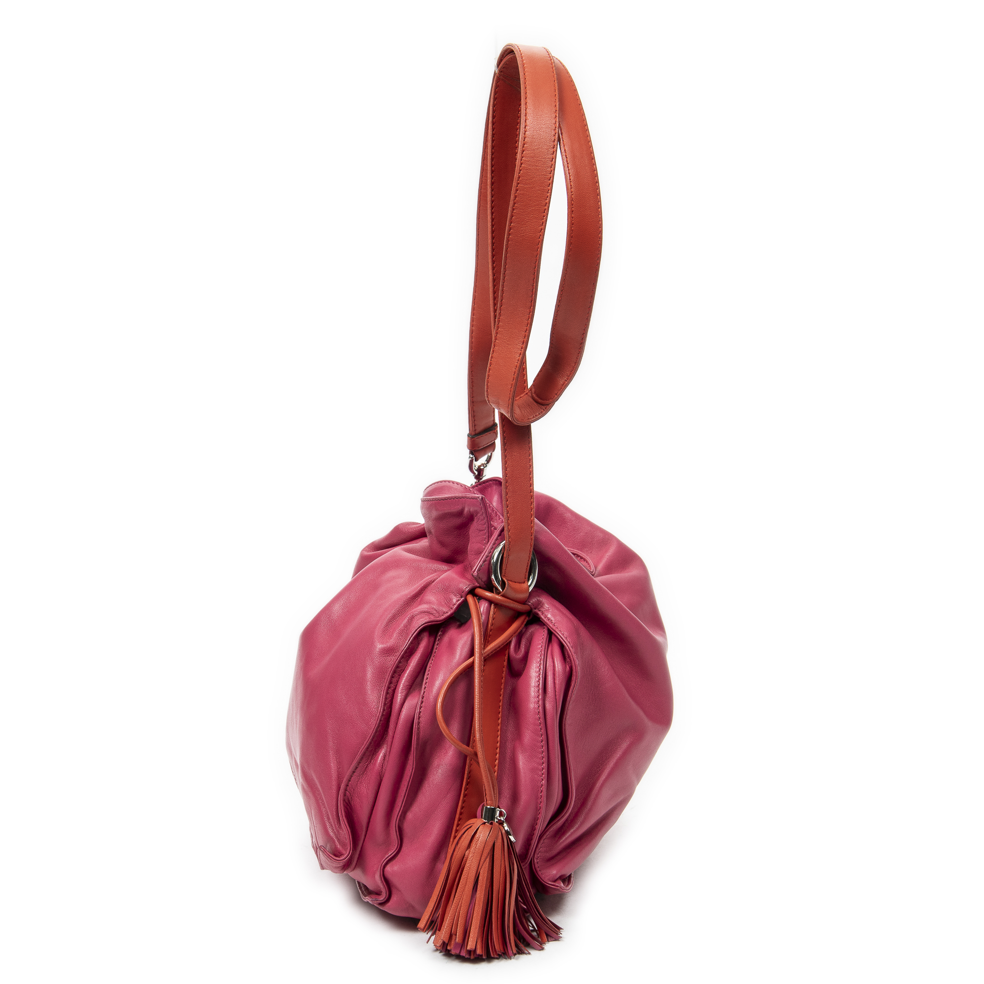 Loewe Shoulder Bag Medium Tassel Flamenco in Pink Smooth Leather and Silver hardware. The product is in Excellent Condition (A).