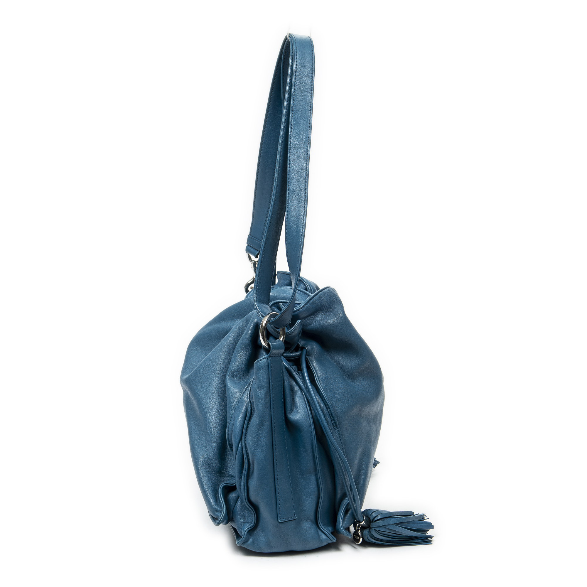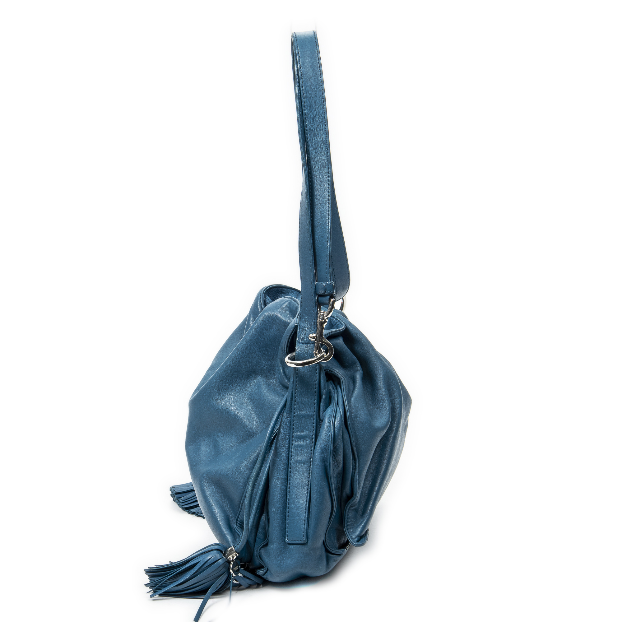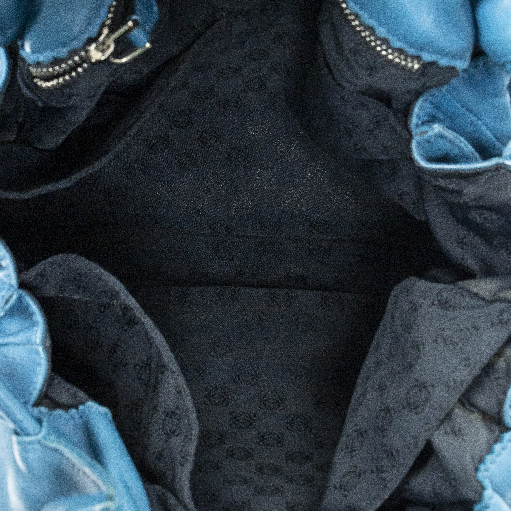Loewe Shoulder Bag Medium Tassel Flamenco in Blue Smooth Leather and Silver hardware. The product is in Excellent Condition (A).