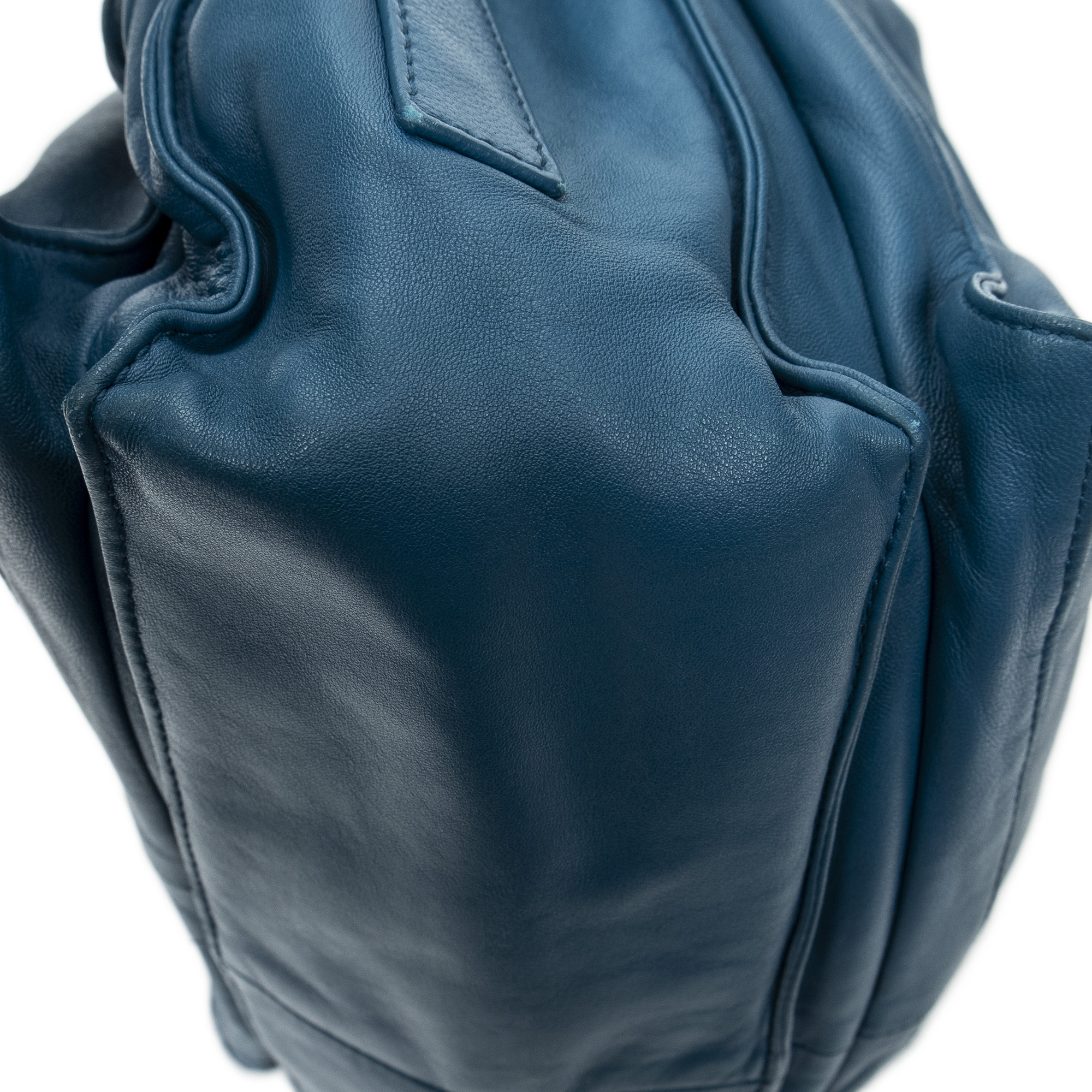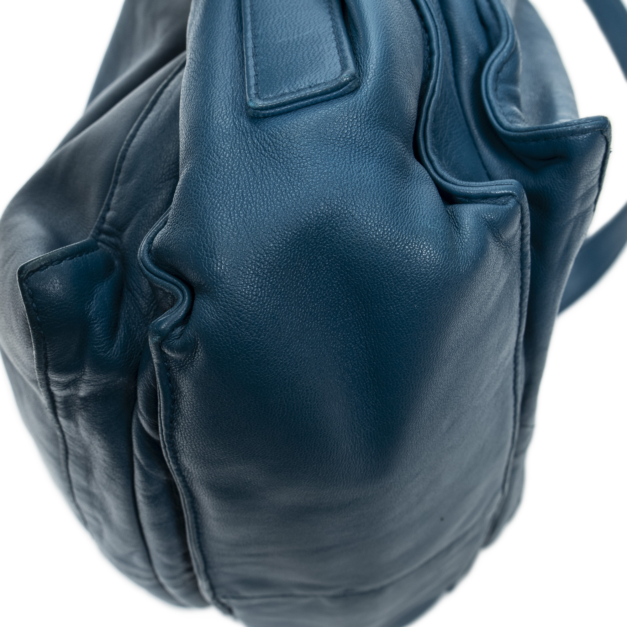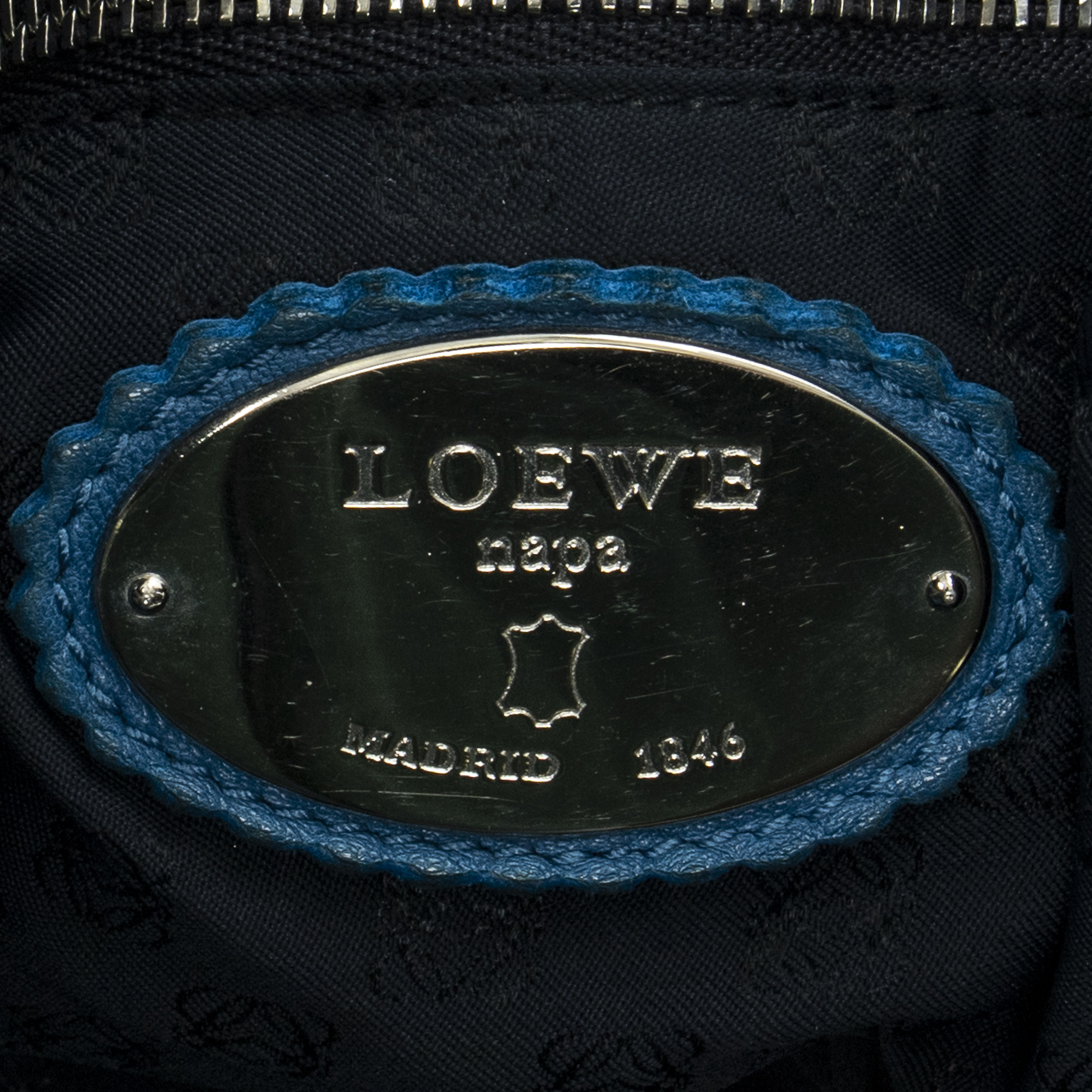 Loewe Shoulder Bag Medium Tassel Flamenco in Blue Smooth Leather and Silver hardware. The product is in Excellent Condition (A).