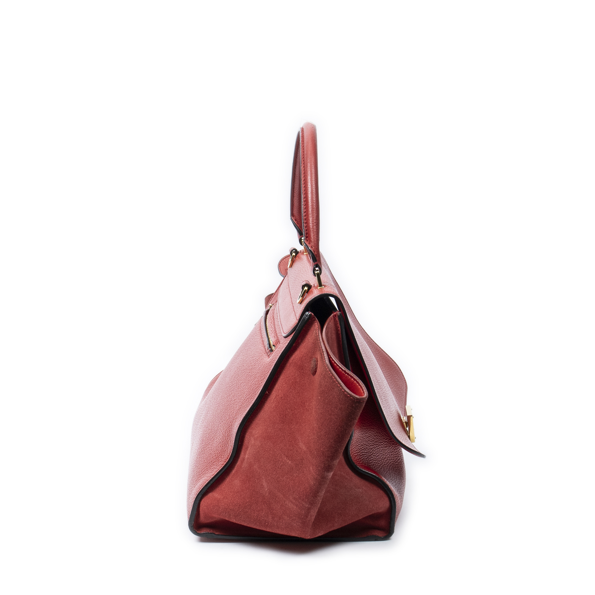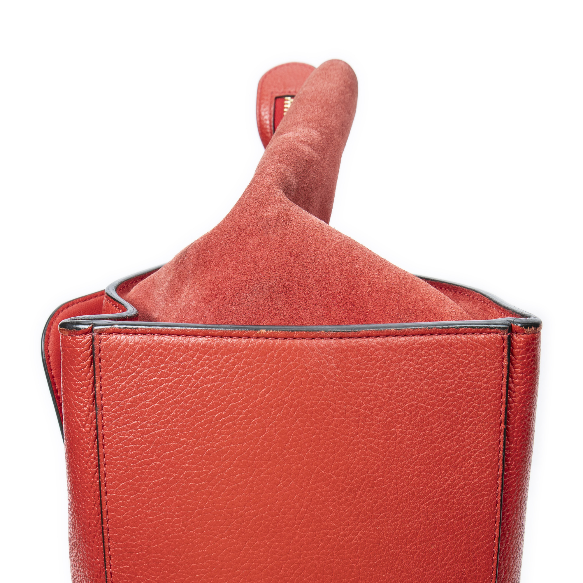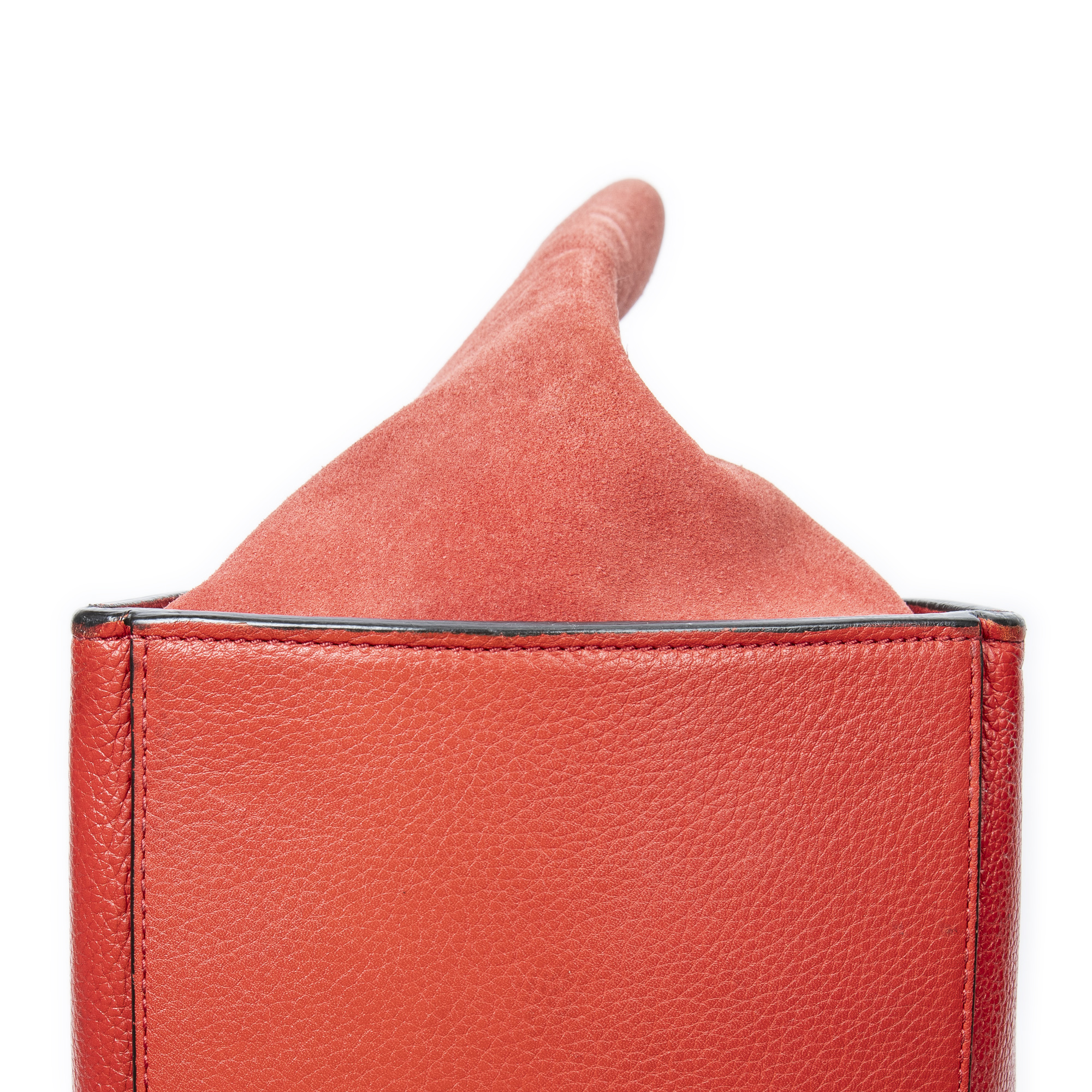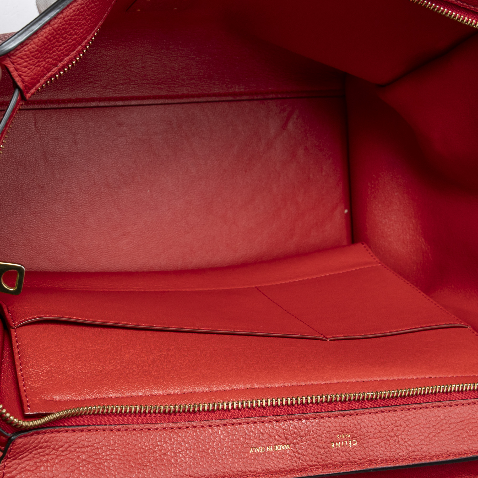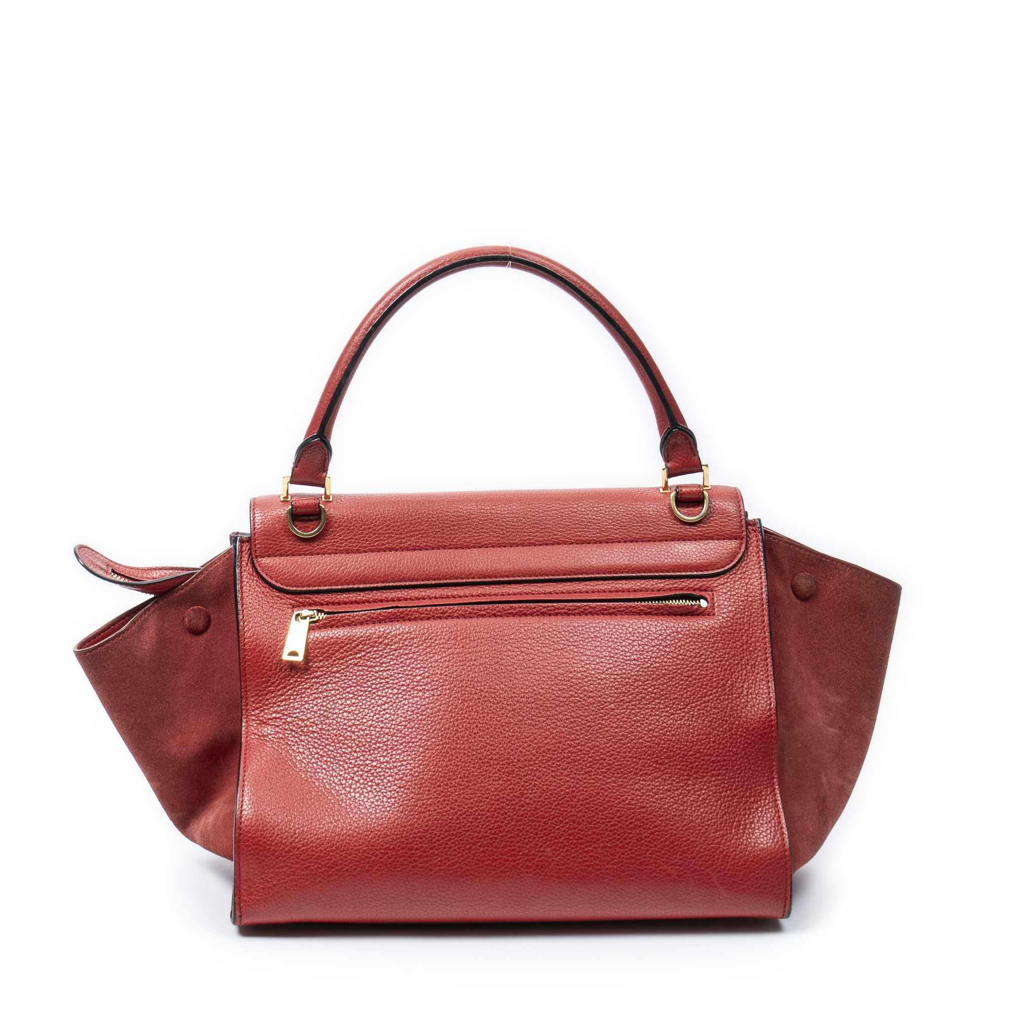 Celine Shoulder Bag Medium Trapeze in Red Grained Calfskin Leather and Gold hardware. The product is in Very Good Condition (AB).