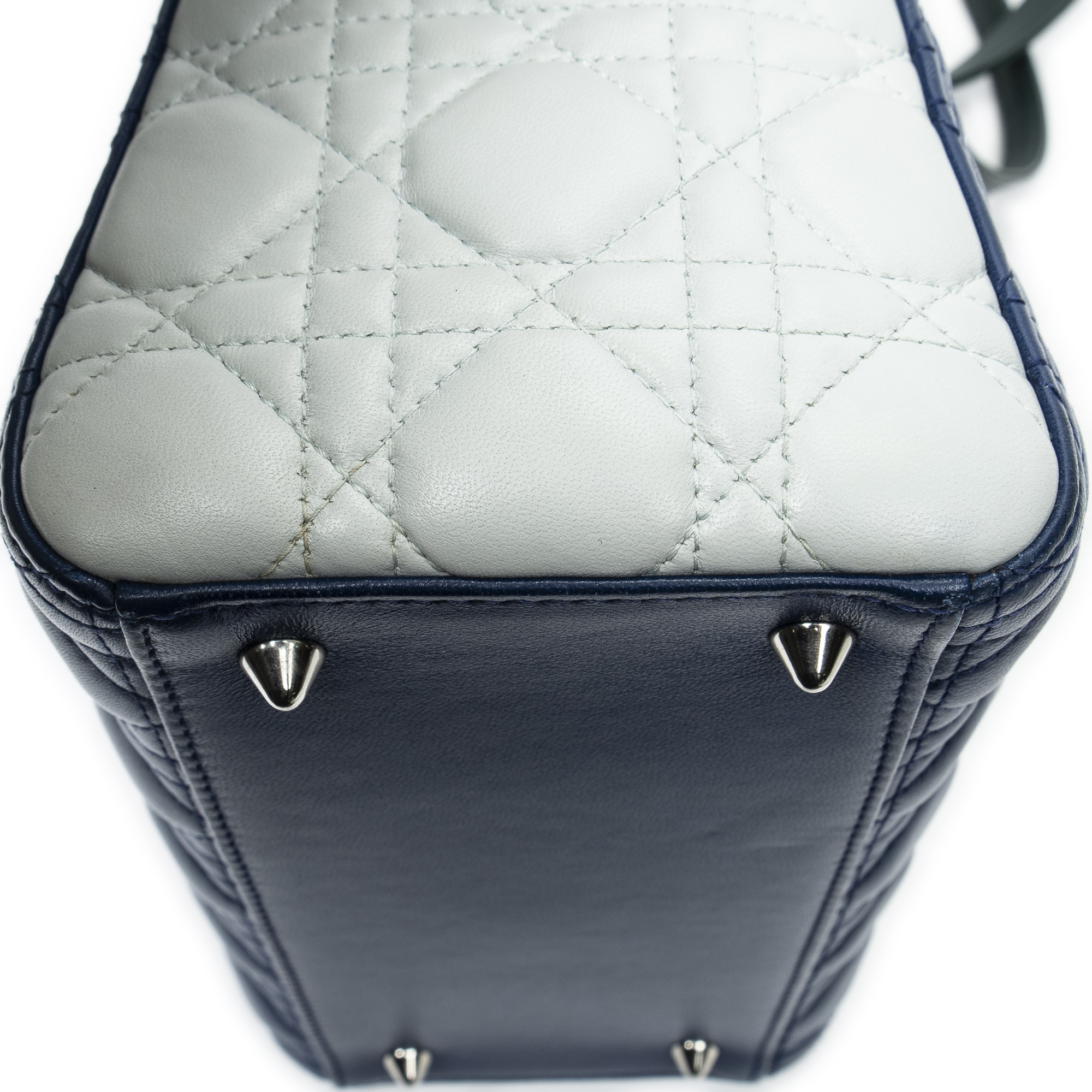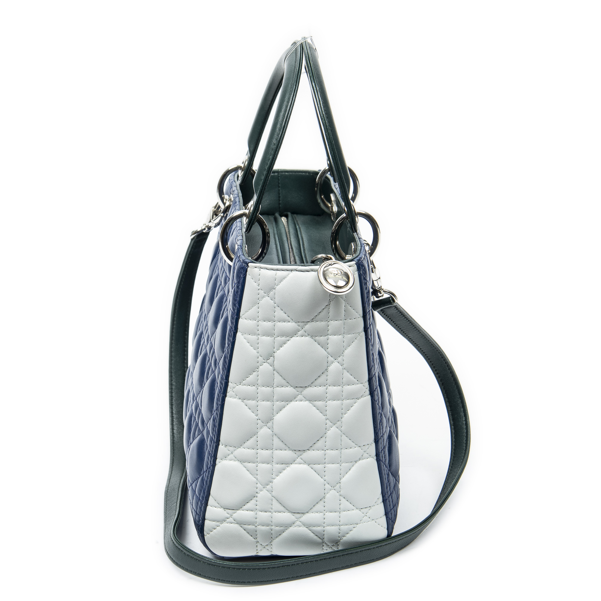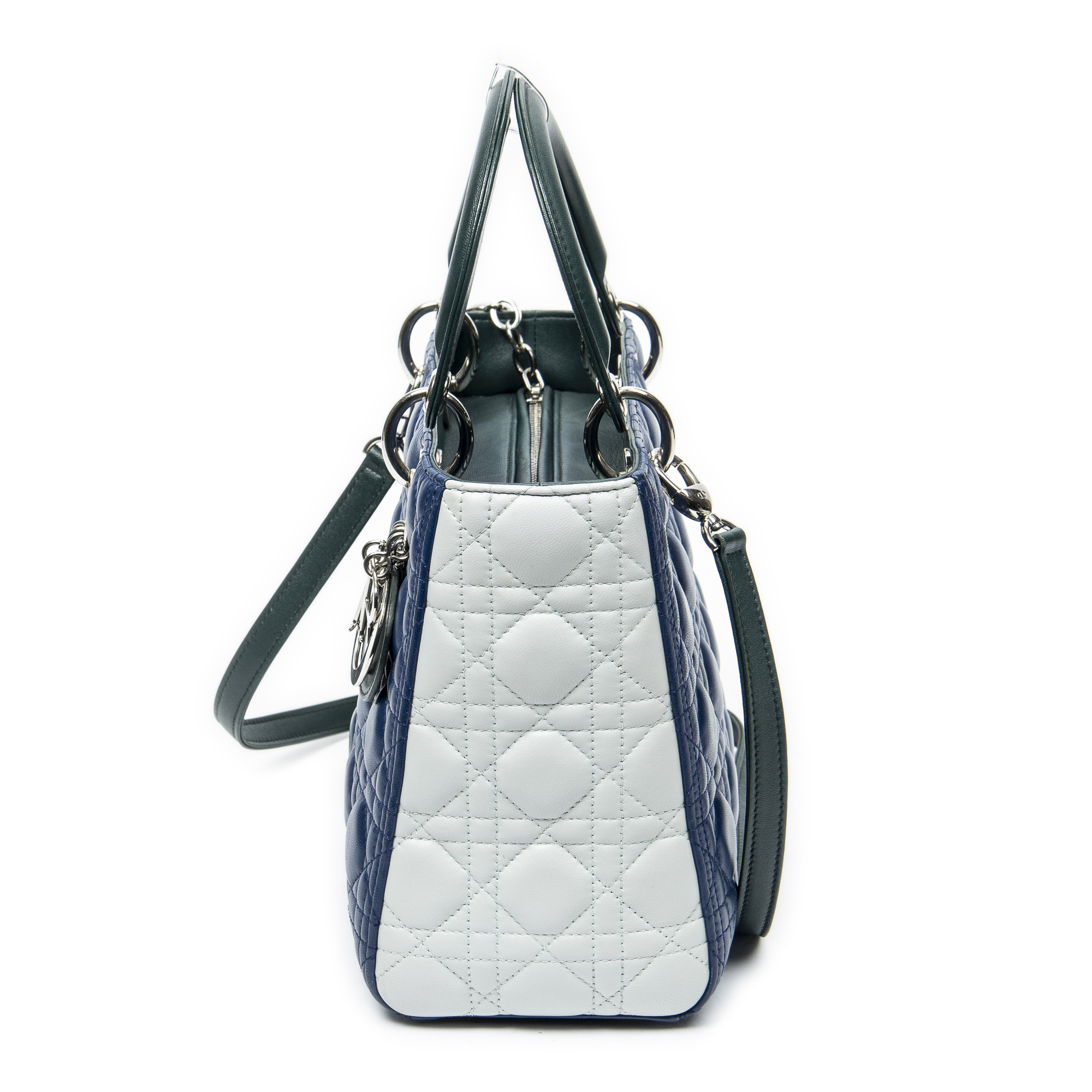 Dior Shoulder Bag Medium Tricolor Lady Dior Zip in Green/Blue/Ivory Cannage Lambskin Leather and Silver hardware. The product is in Excellent Condition (A).