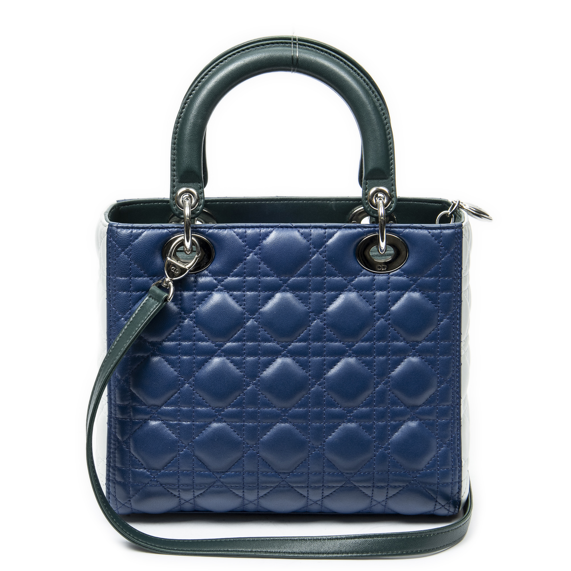 Description : Dior Shoulder Bag Medium Tricolor Lady Dior Zip in Green/Blue/Ivory Cannage Lambskin Leather and Silver hardware. The product is in Excellent Condition (A). Dimensions: 24x20x11 cm SKU: ABC5099 Serial number: 16-BO-0115 Accessories Included: Strap; Charms Delivery: We have a 5 to 7 business days delivery policy, hassle-free and duties/tariffs included! BrandCo Paris finds rare and top condition items at great deals, they are worth your patience! Shop with confidence - All BrandCo Paris items are carefully selected and authenticated by our team of experts. All the items come with an authenticity certificate and packaging delivered by BrandCo Paris. Item Condition Grading Table N (Like New) AA (Perfect Condition) A (Excellent Condition) AB (Very Good Condition) B (Good/Fair)