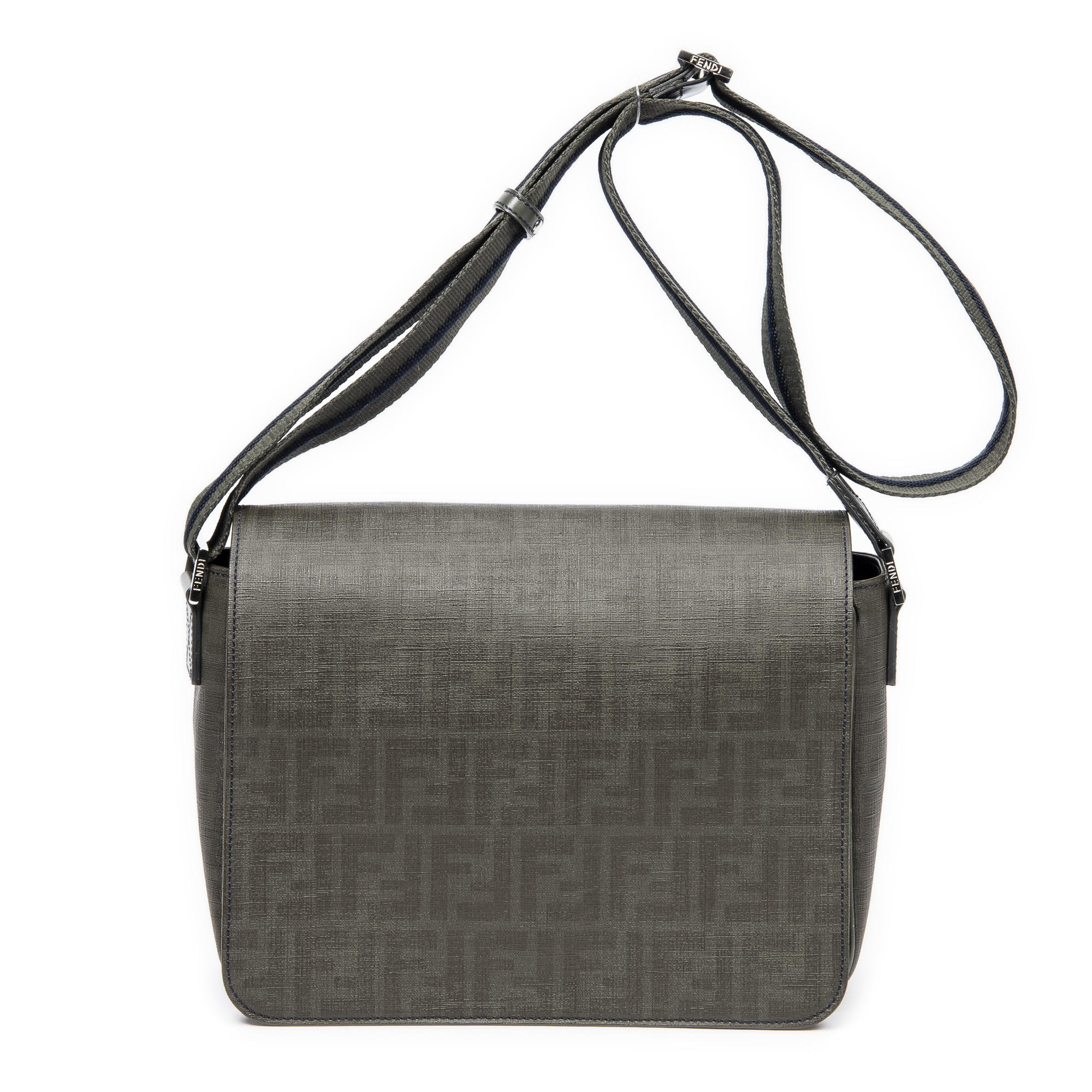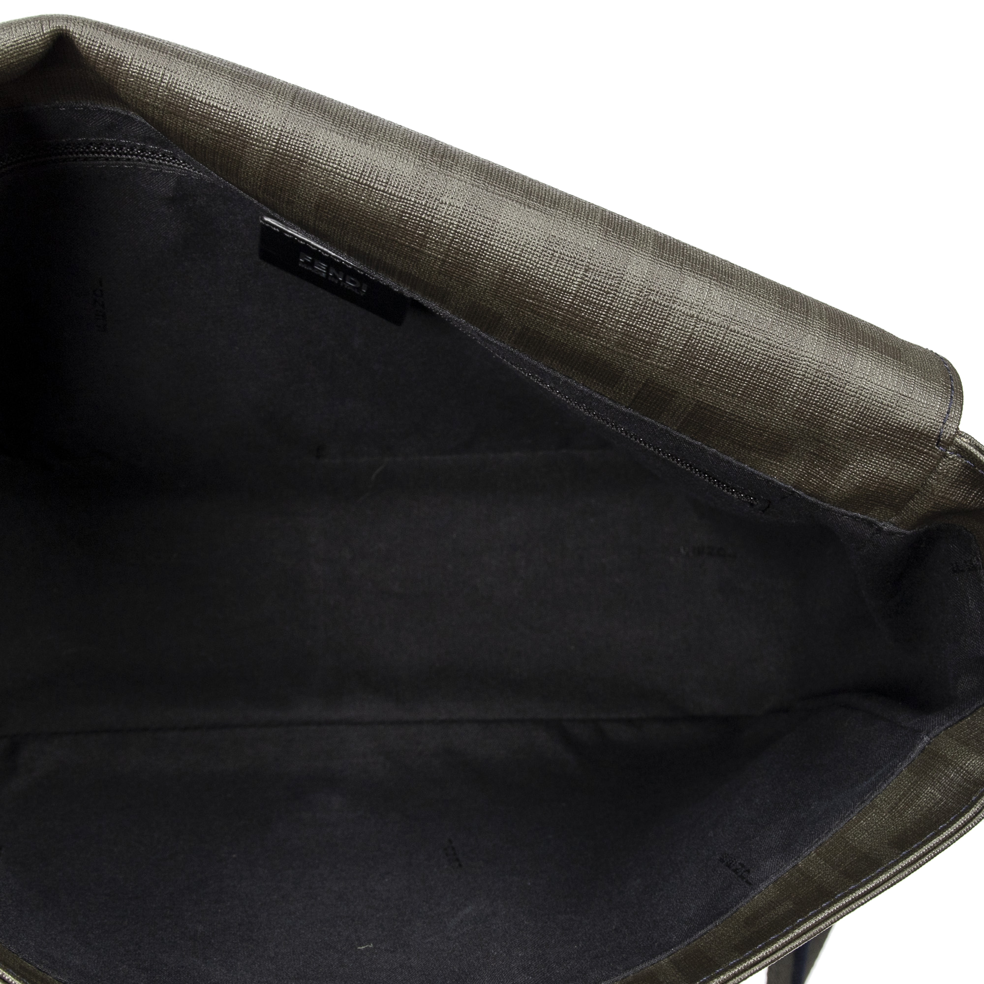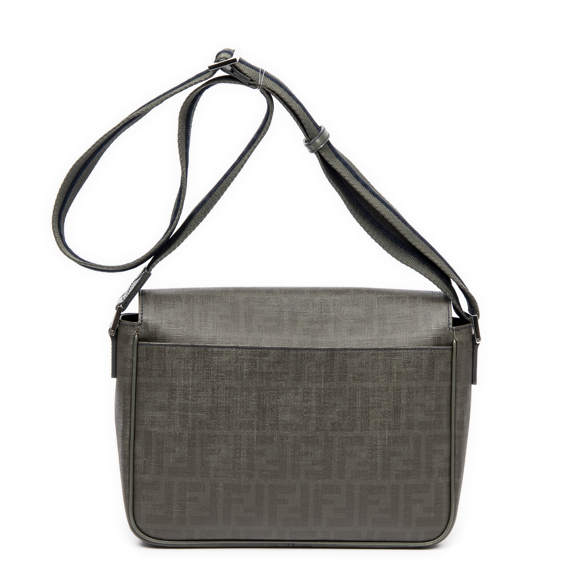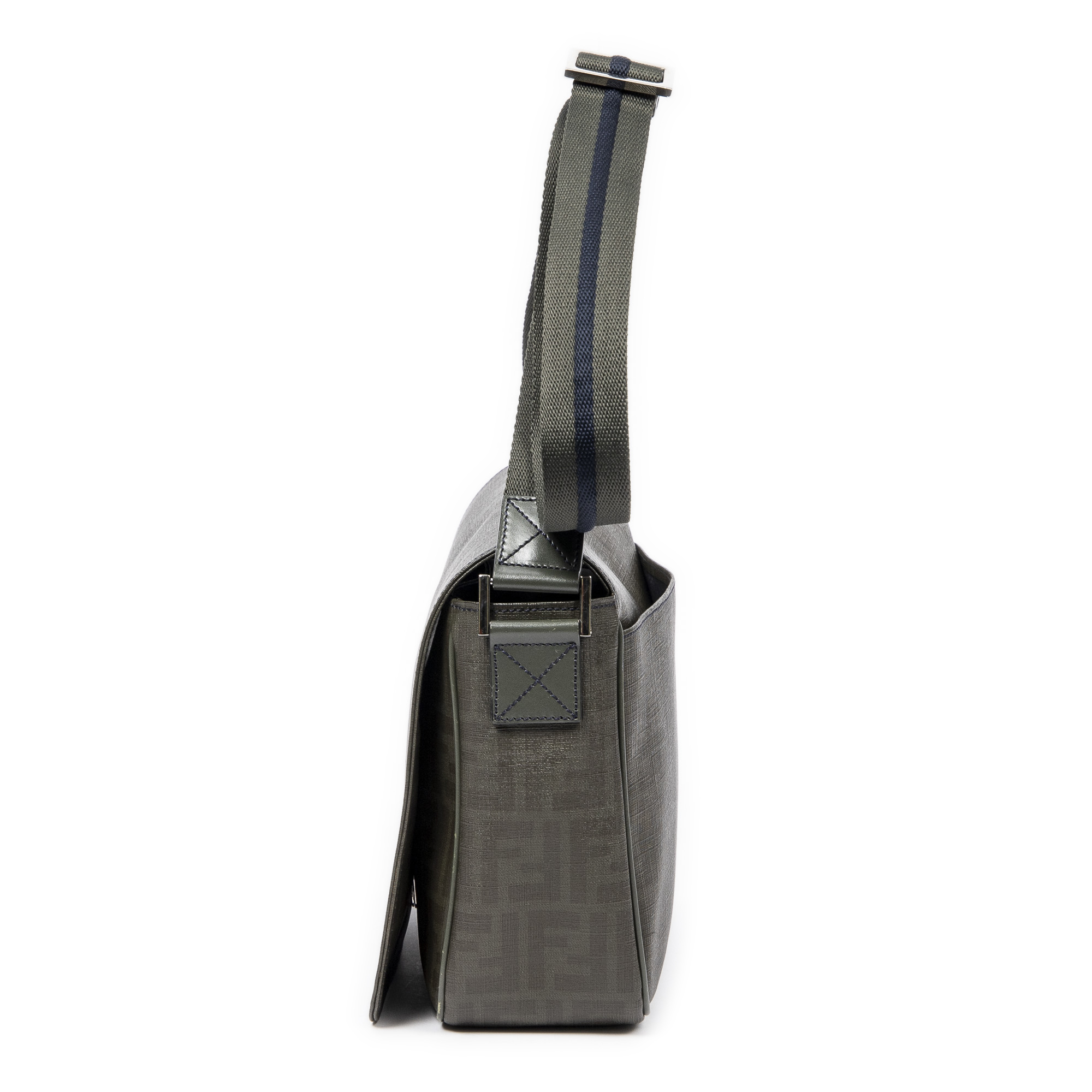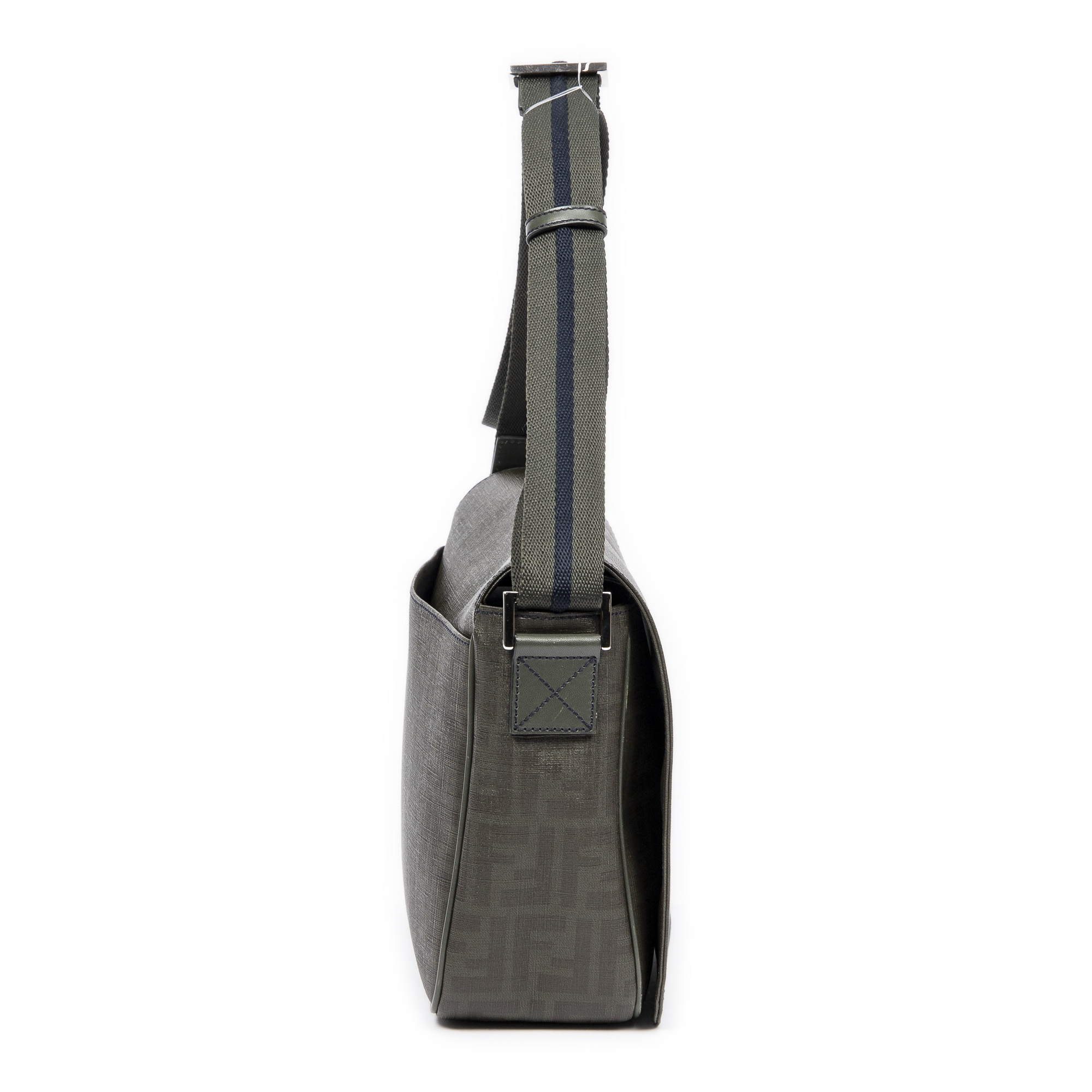 Fendi Shoulder Bag Messenger Flap in Olive Zucca Coated Canvas and Silver hardware. The product is in Excellent Condition (A).