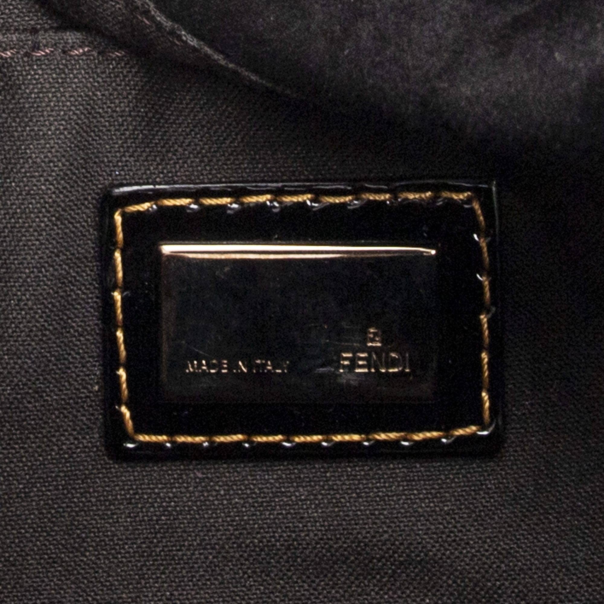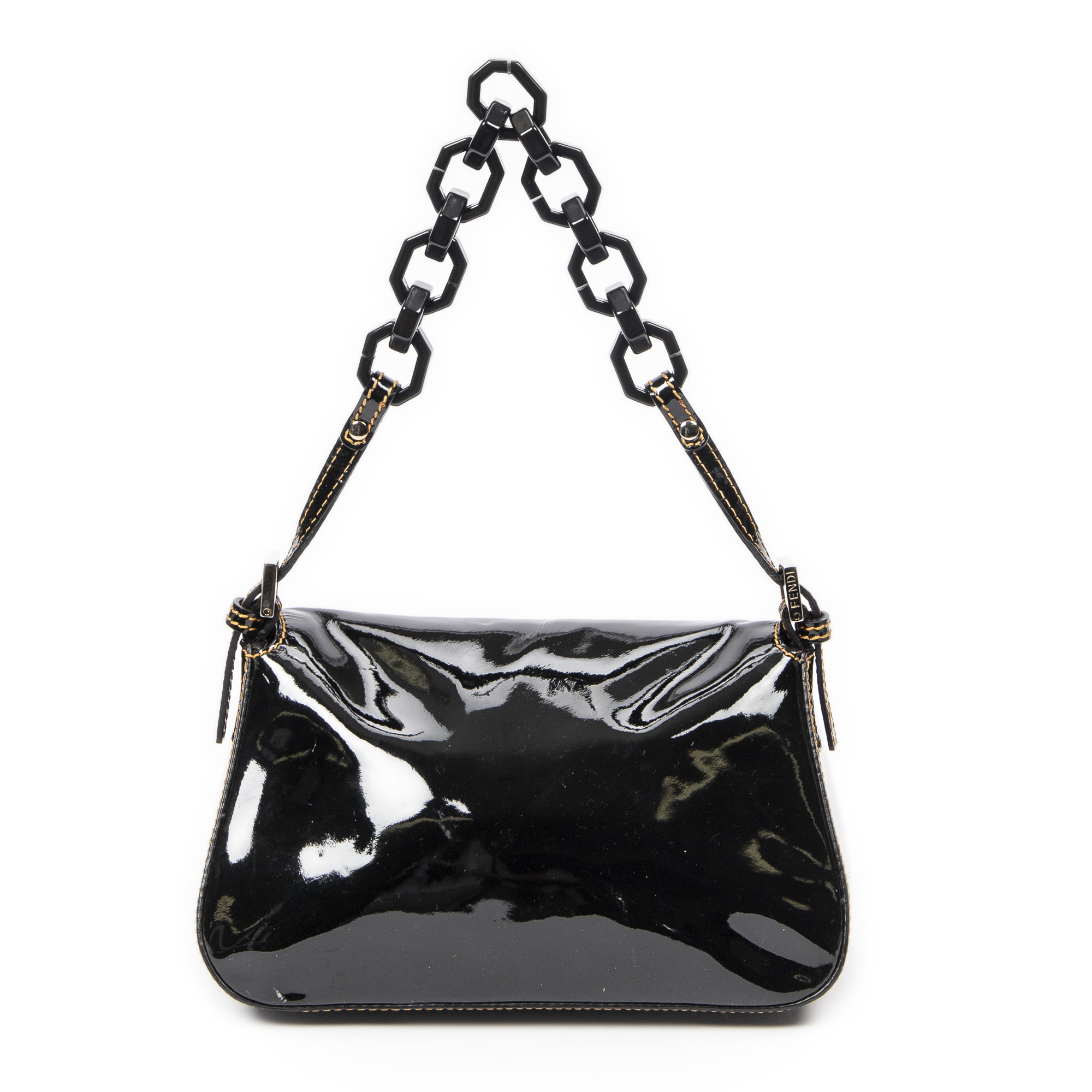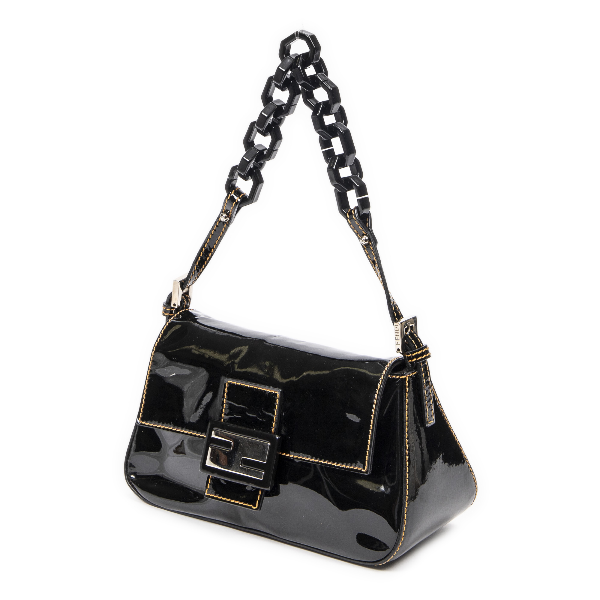 Fendi Shoulder Bag Mini Baguette in Black Patent Leather and Silver hardware. The product is in Excellent Condition (A).