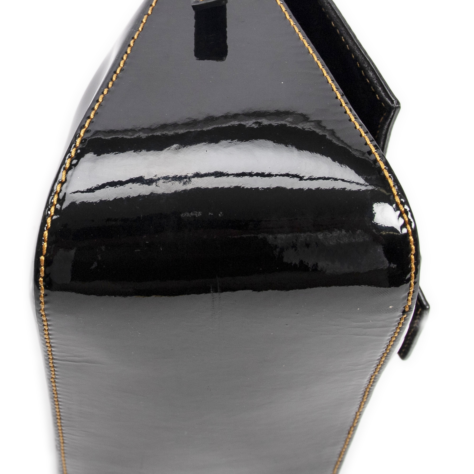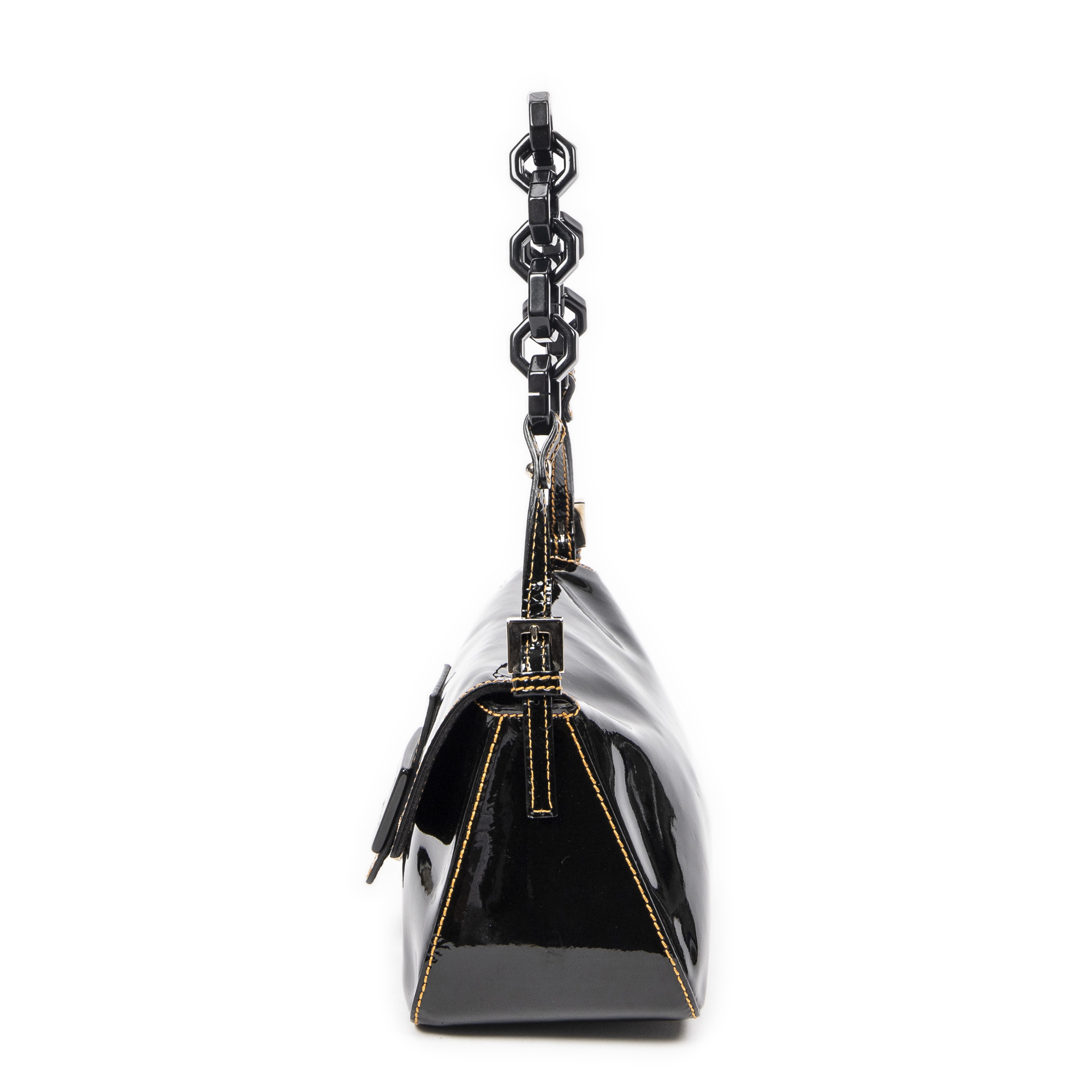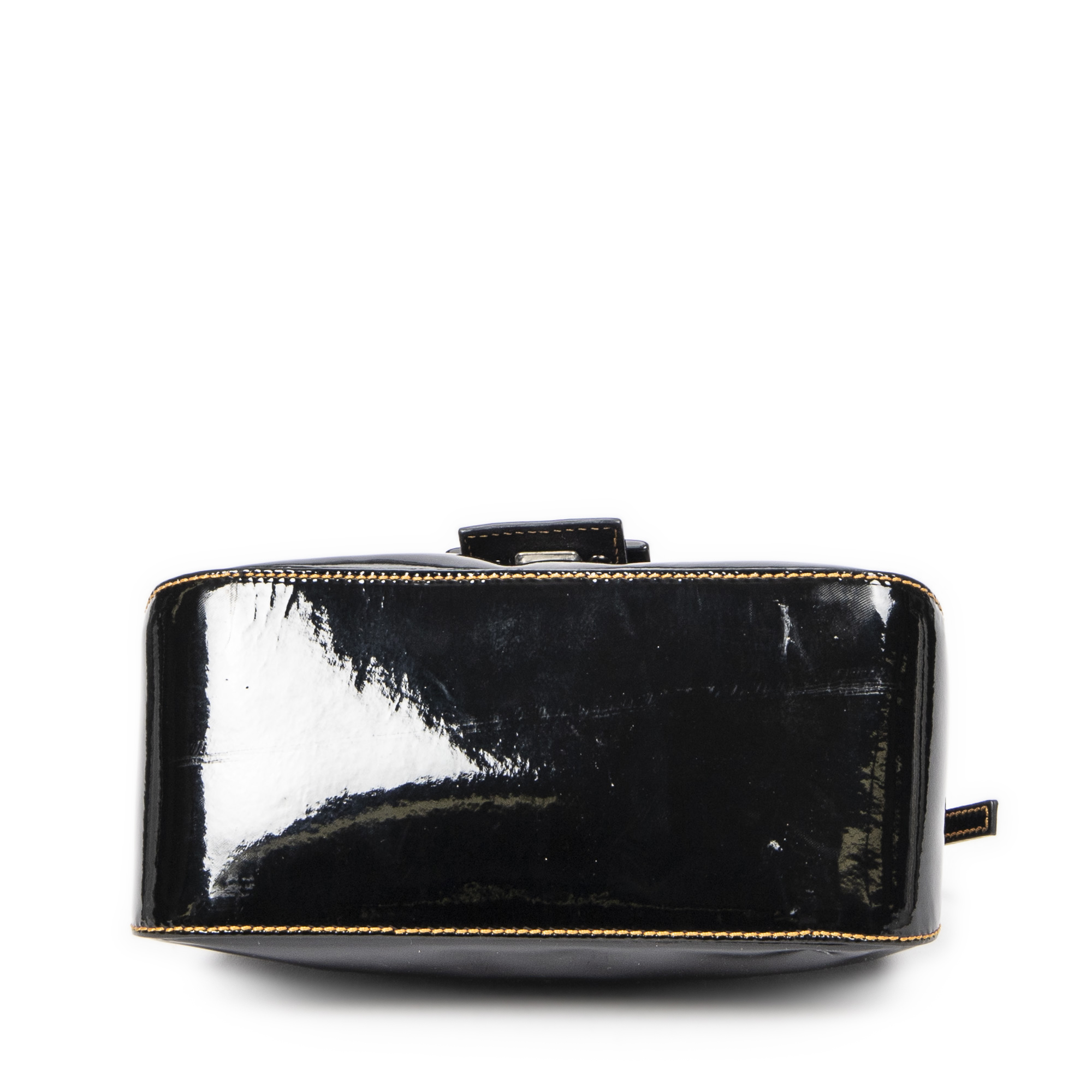 Fendi Shoulder Bag Mini Baguette in Black Patent Leather and Silver hardware. The product is in Excellent Condition (A).