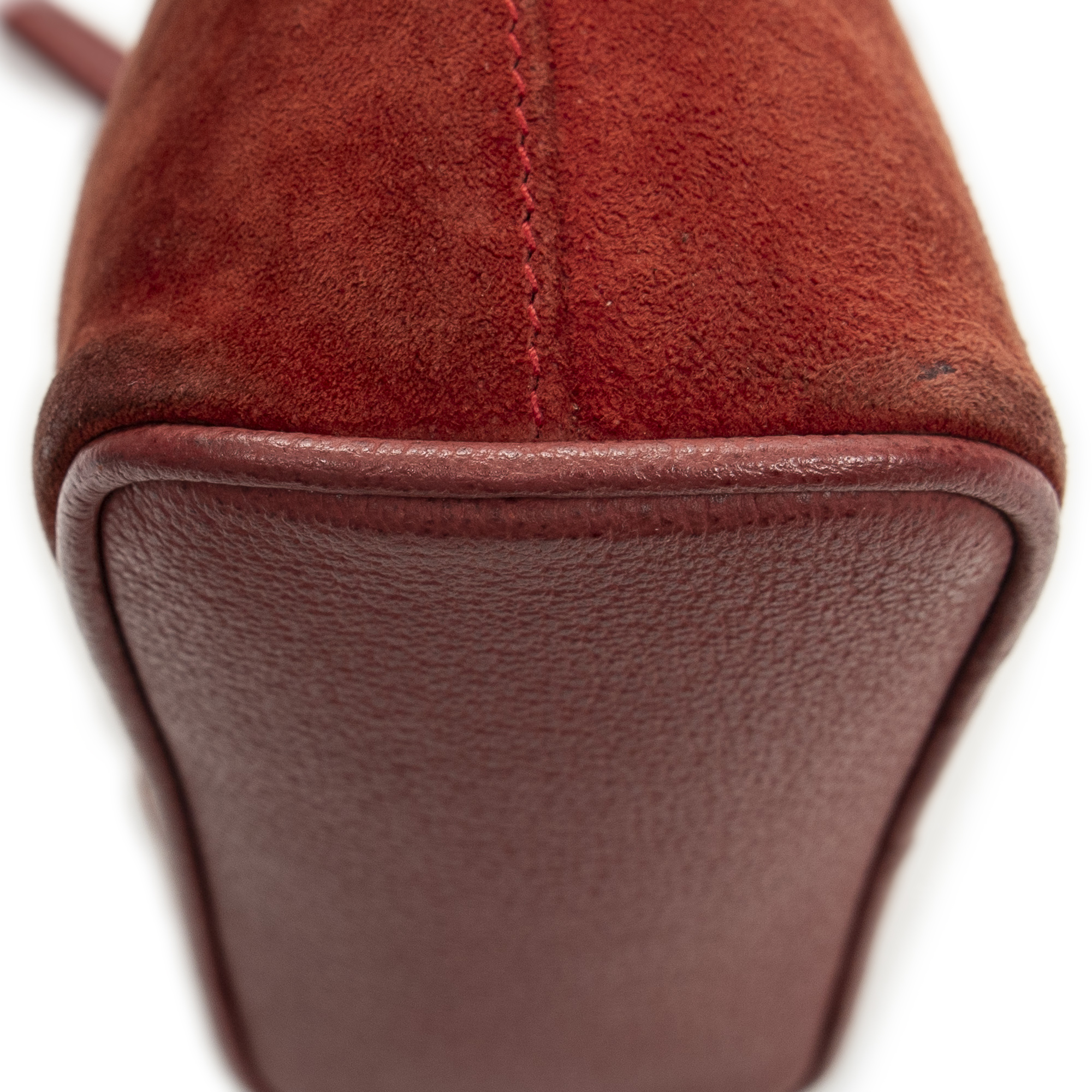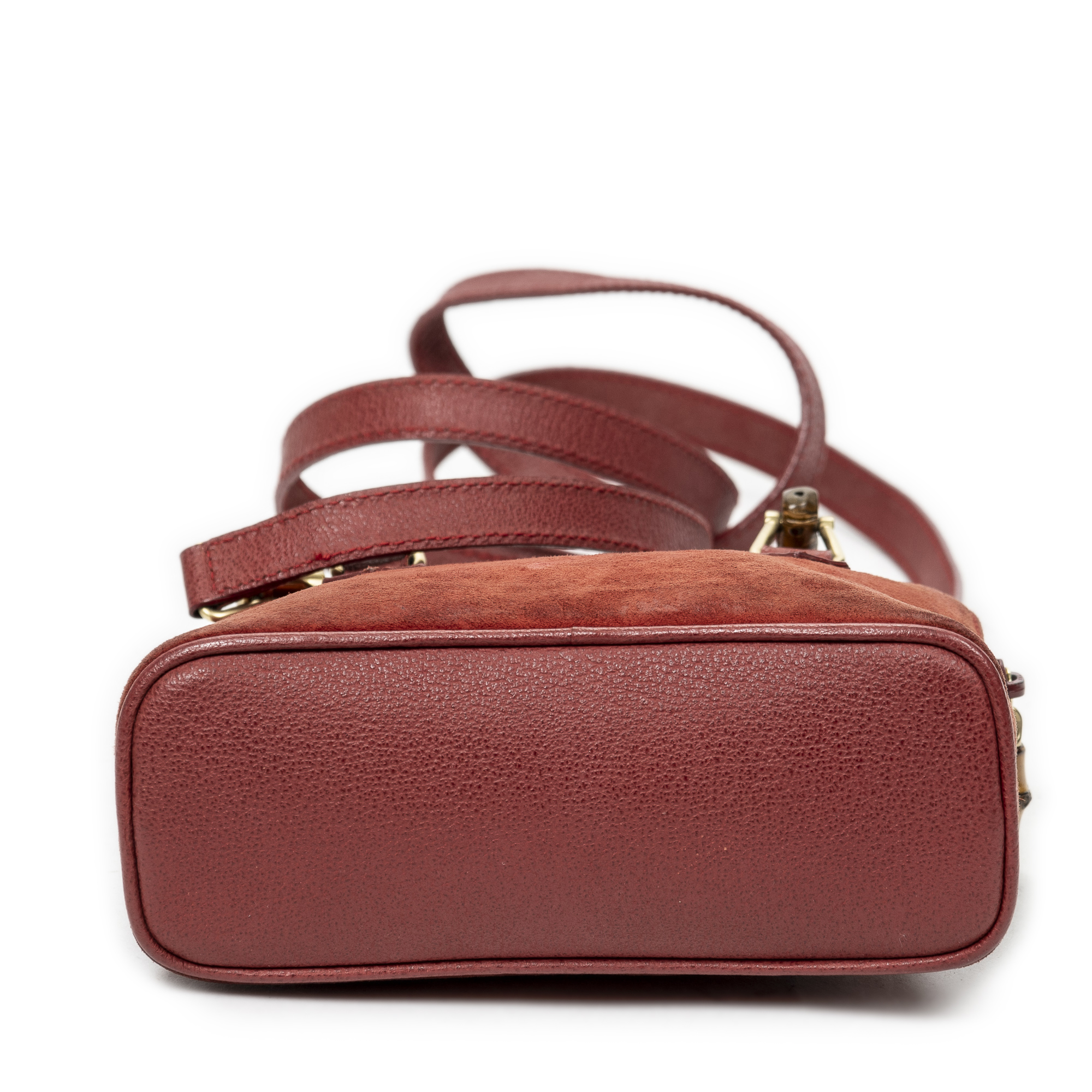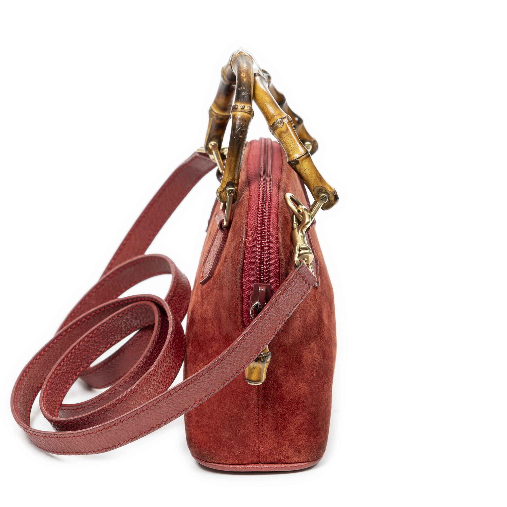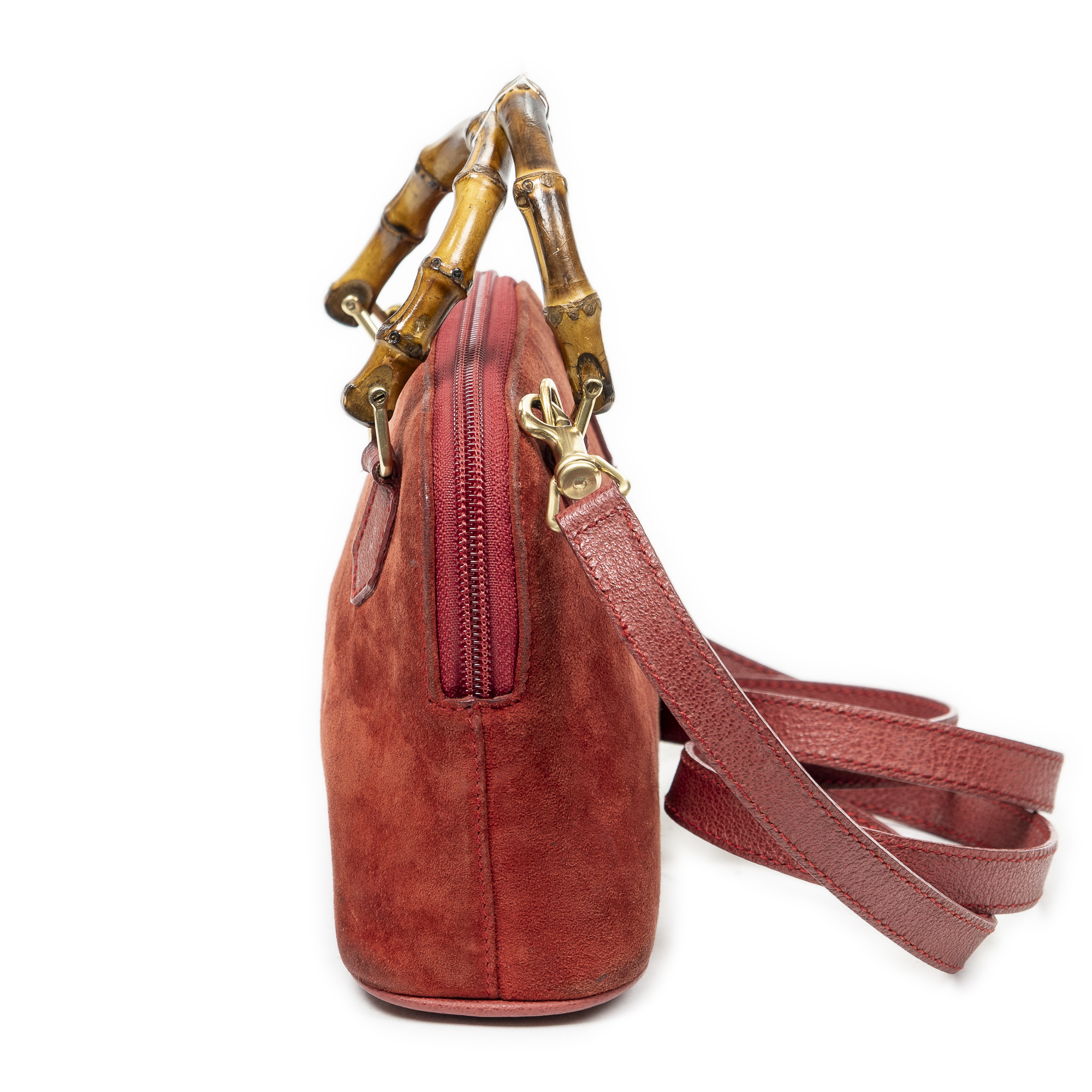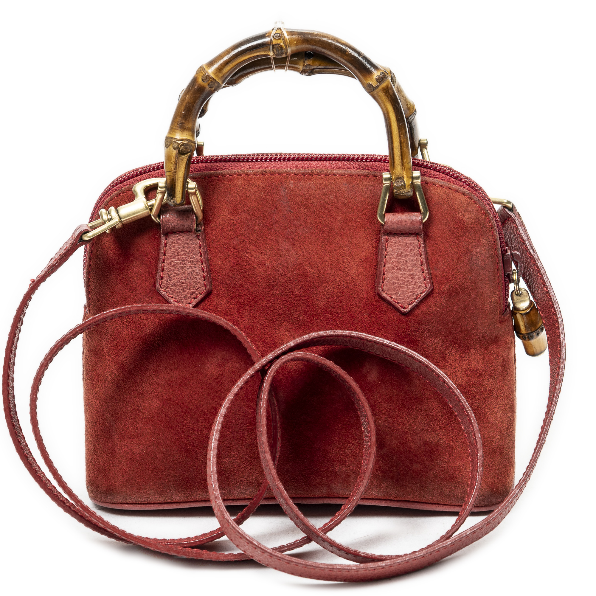 Gucci Shoulder bag Mini Bamboo Dome in Red Suede Leather and Gold hardware. The product is in Very Good Condition (AB).
