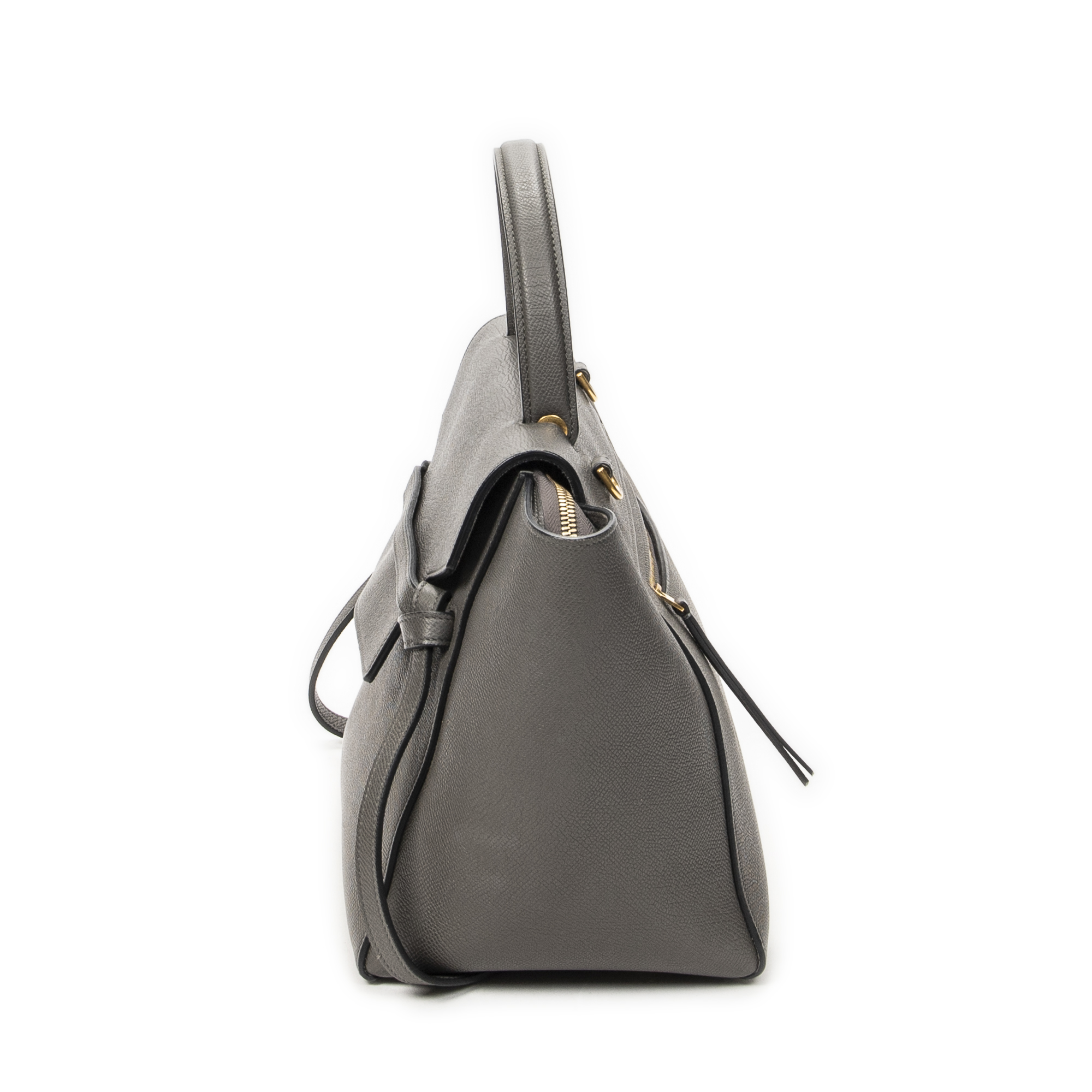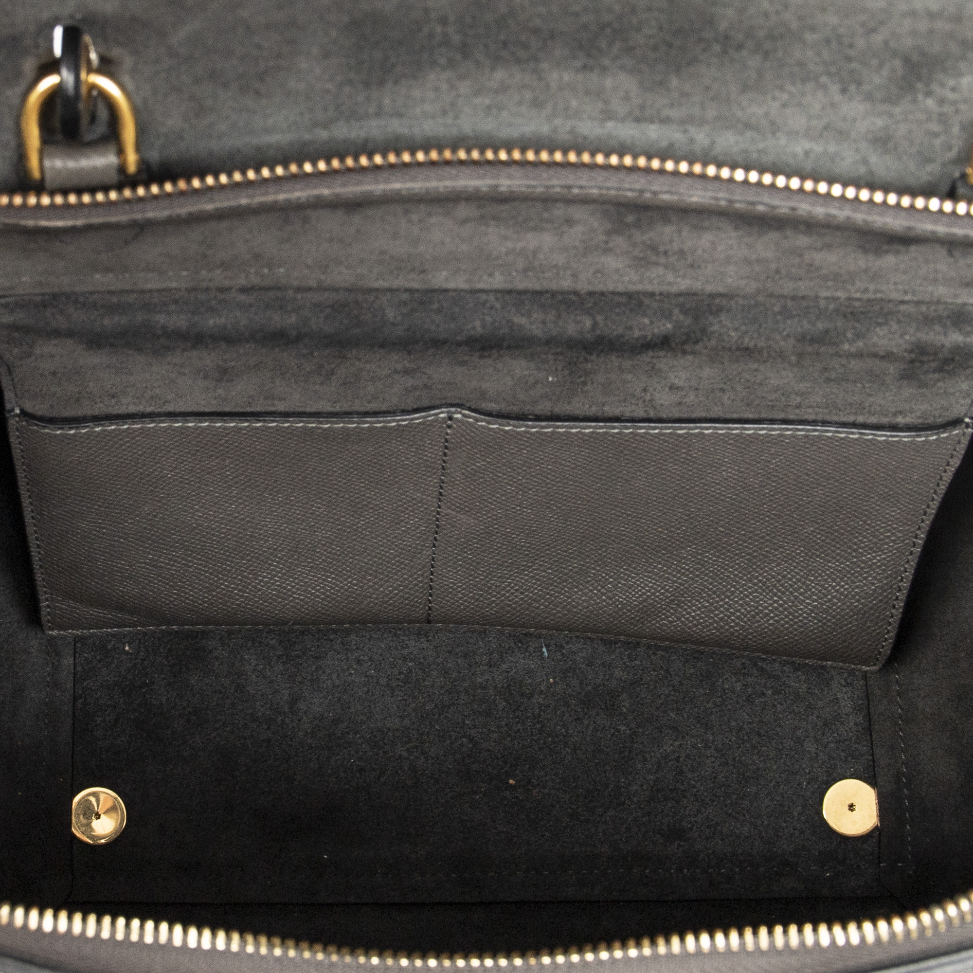 Celine Shoulder Bag Mini Belt Bag in Grey Grained Leather and Gold hardware. The product is in Excellent Condition (A).