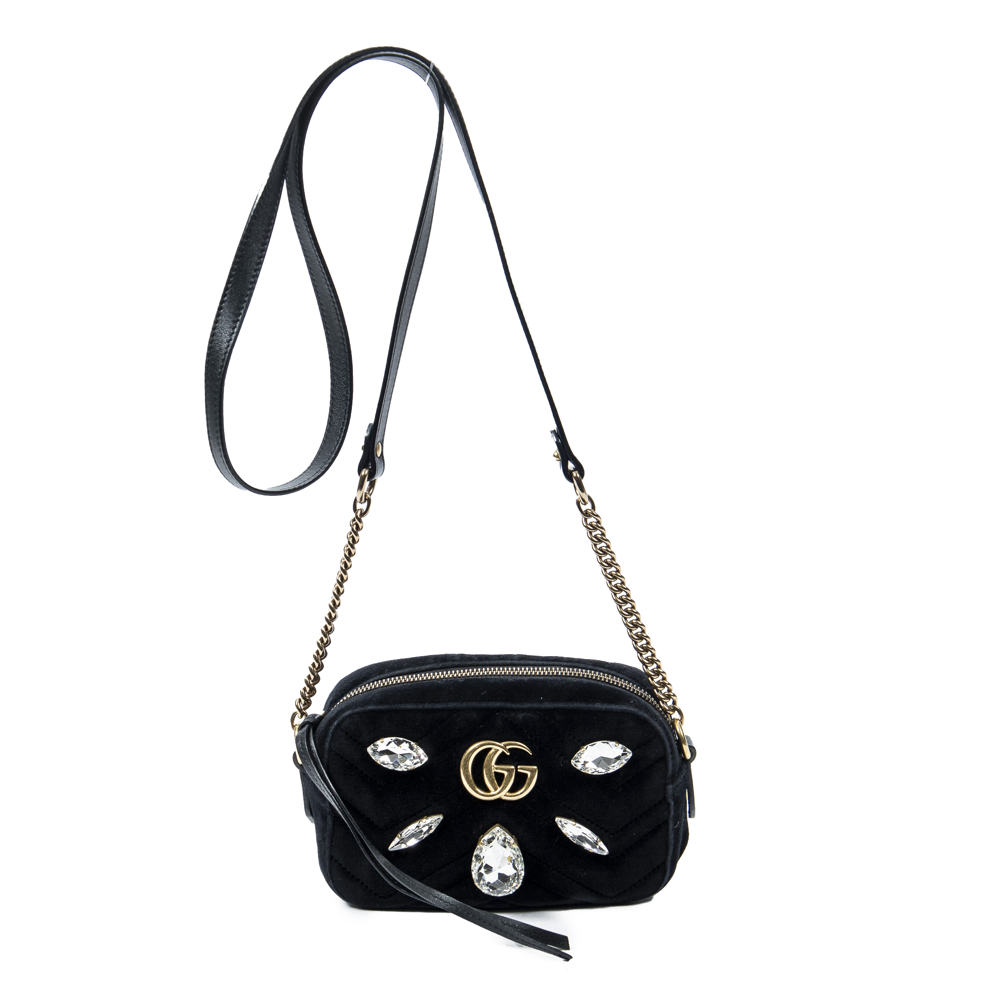 Description : Gucci Shoulder Bag Mini Crystal Marmont Crossbody in Black Velvet Canvas and Gold hardware. The product is in Excellent Condition (A). Dimensions: 18x12x6 cm SKU: AAW3810 Serial number: 448065-525040 Accessories Included: None Condition NOTES: Light marks on interior Delivery: We have a 5 to 7 business days delivery policy, hassle-free and duties/tariffs included! BrandCo Paris finds rare and top condition items at great deals, they are worth your patience! Shop with confidence - All BrandCo Paris items are carefully selected and authenticated by our team of experts. All the items come with an authenticity certificate and packaging delivered by BrandCo Paris. Item Condition Grading Table N (Like New) AA (Perfect Condition) A (Excellent Condition) AB (Very Good Condition) B (Good/Fair)