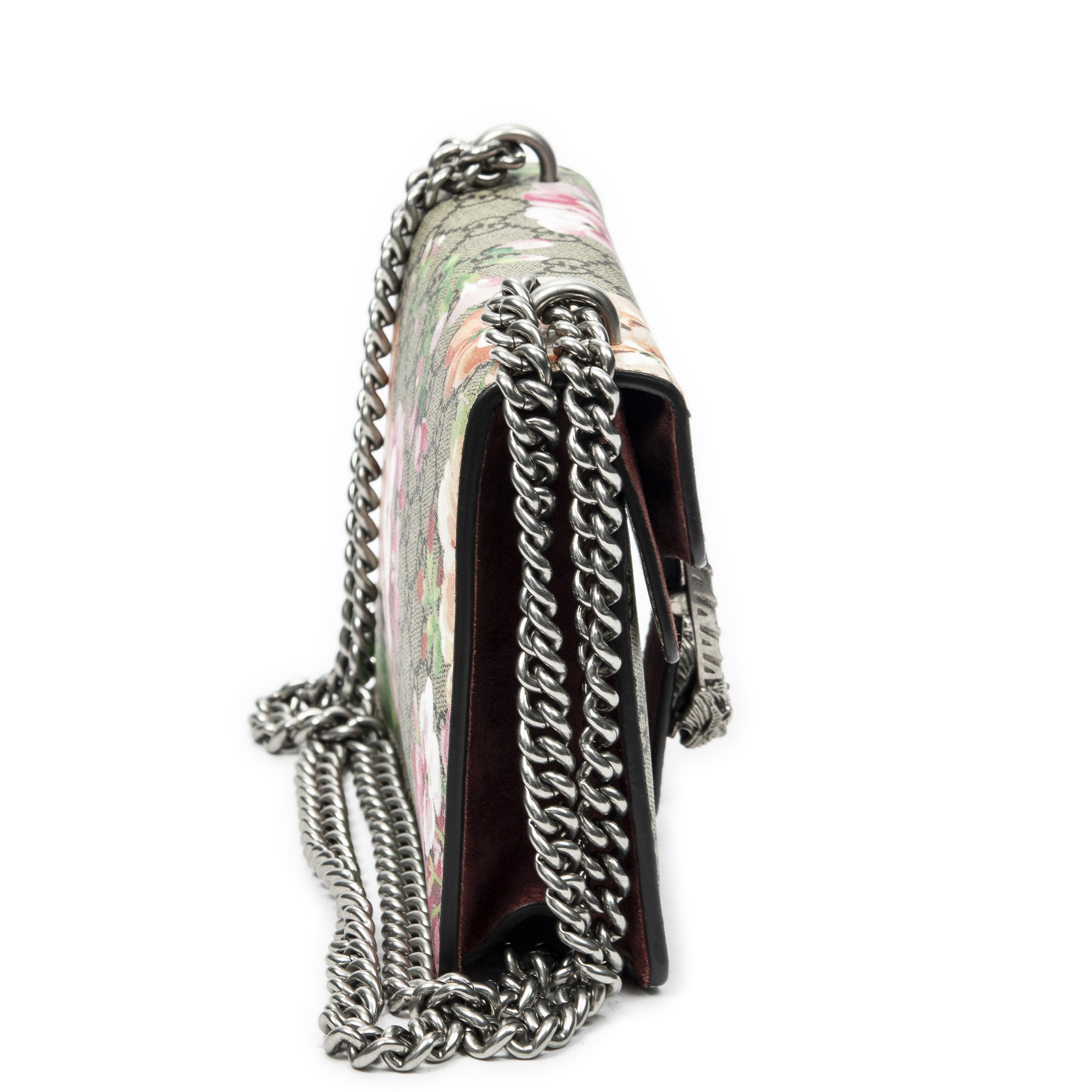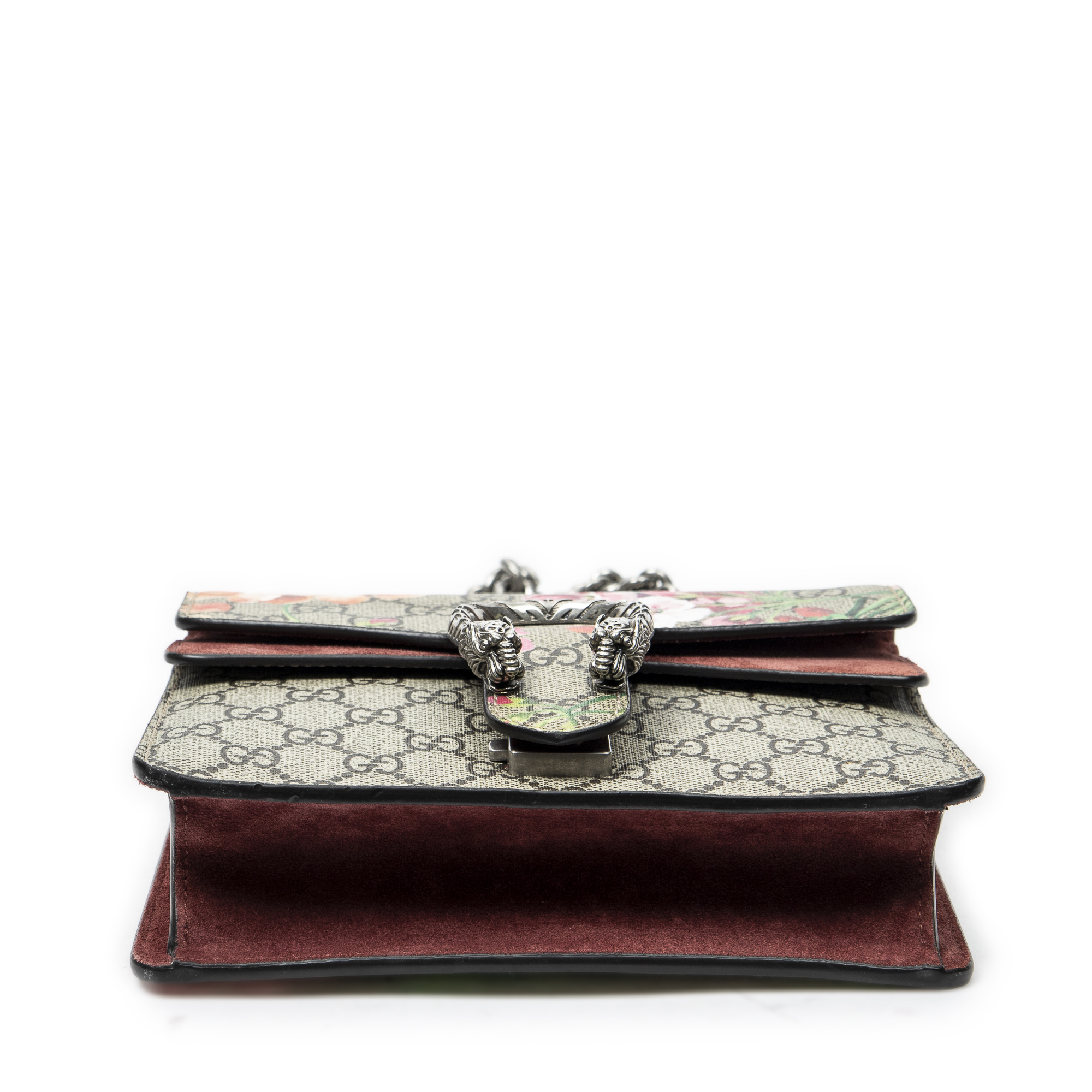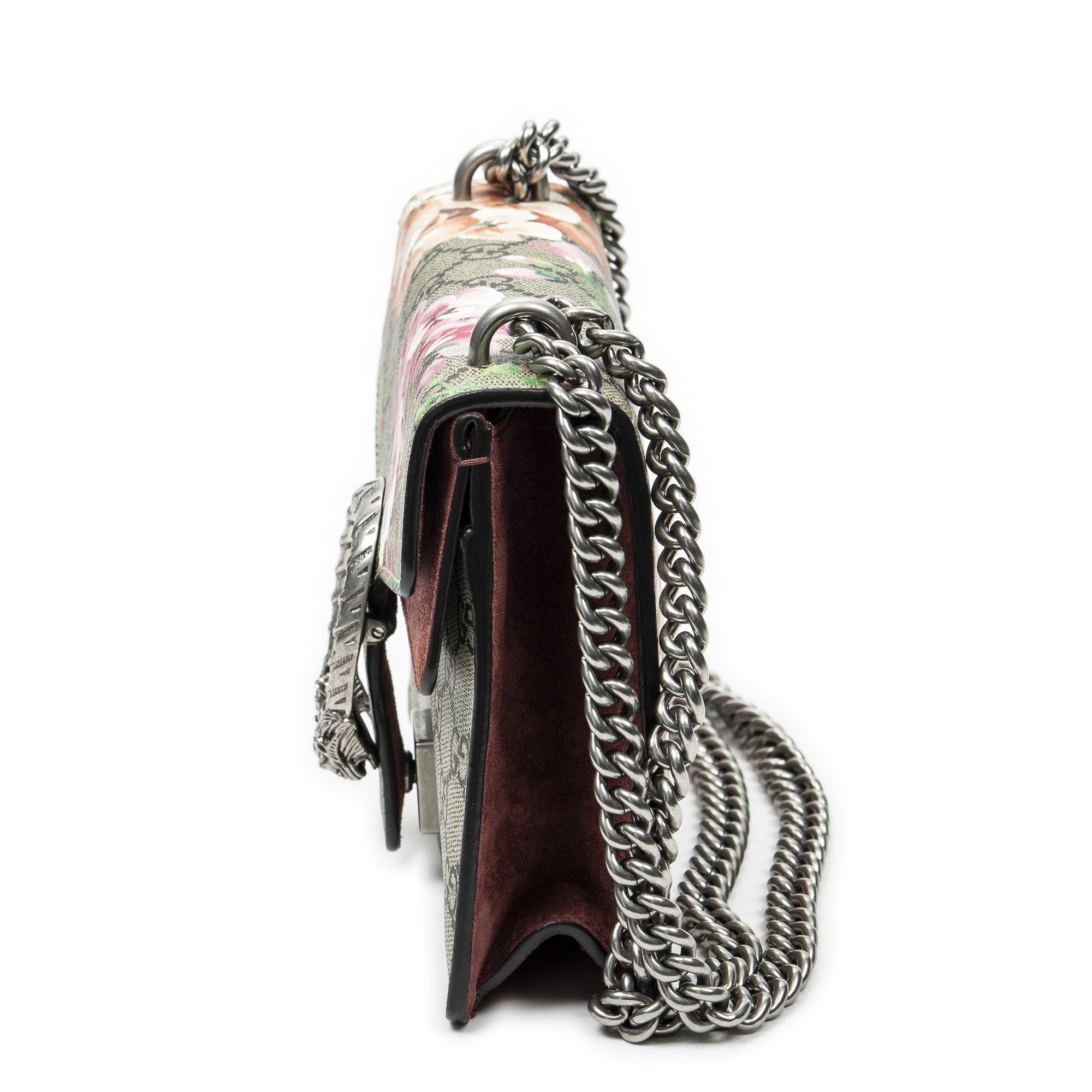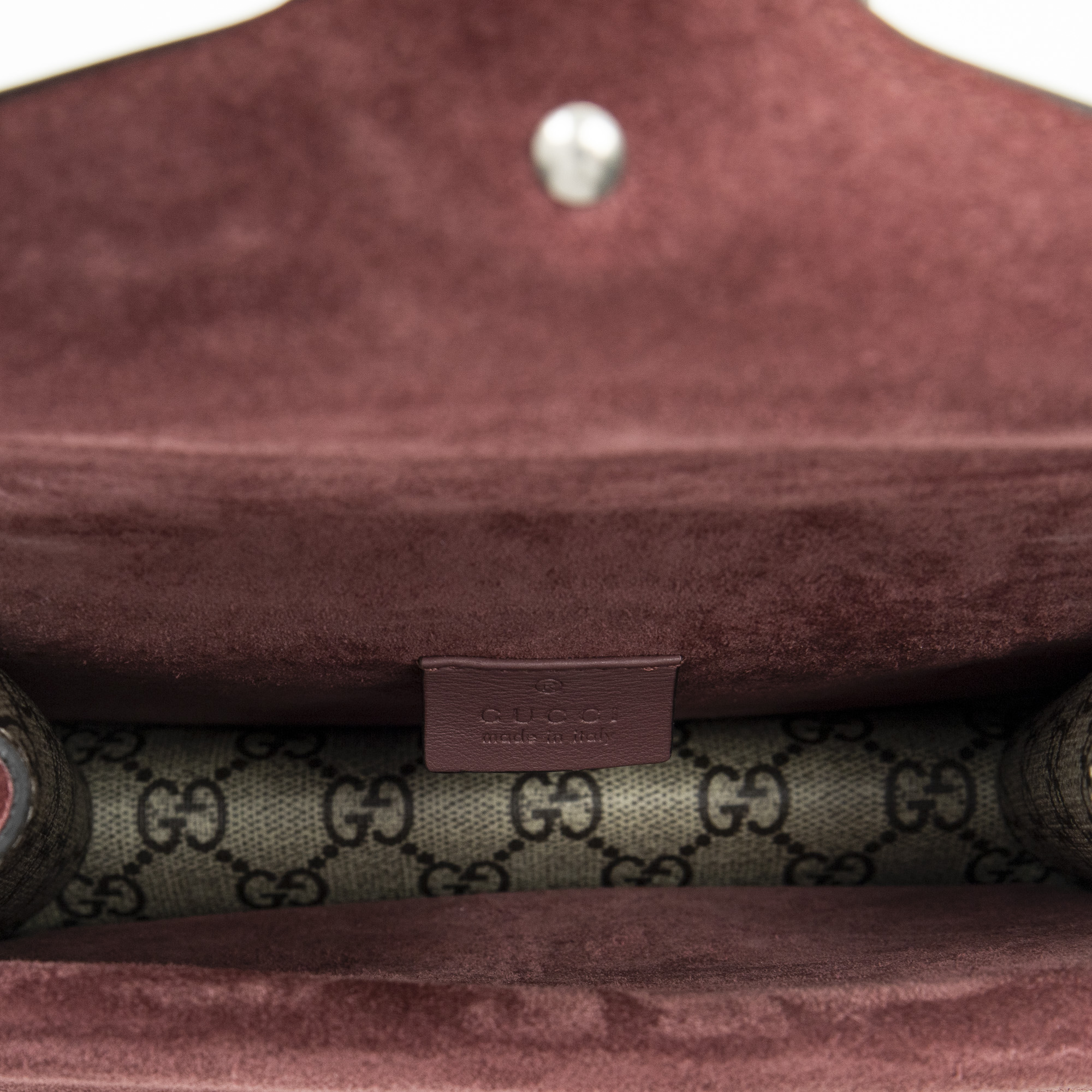 Gucci Shoulder Bag Mini Dionysus Chain Crossbody in Burgundy/Beige Blooms Supreme Coated Canvas and Silver hardware. The product is in Excellent Condition (A).