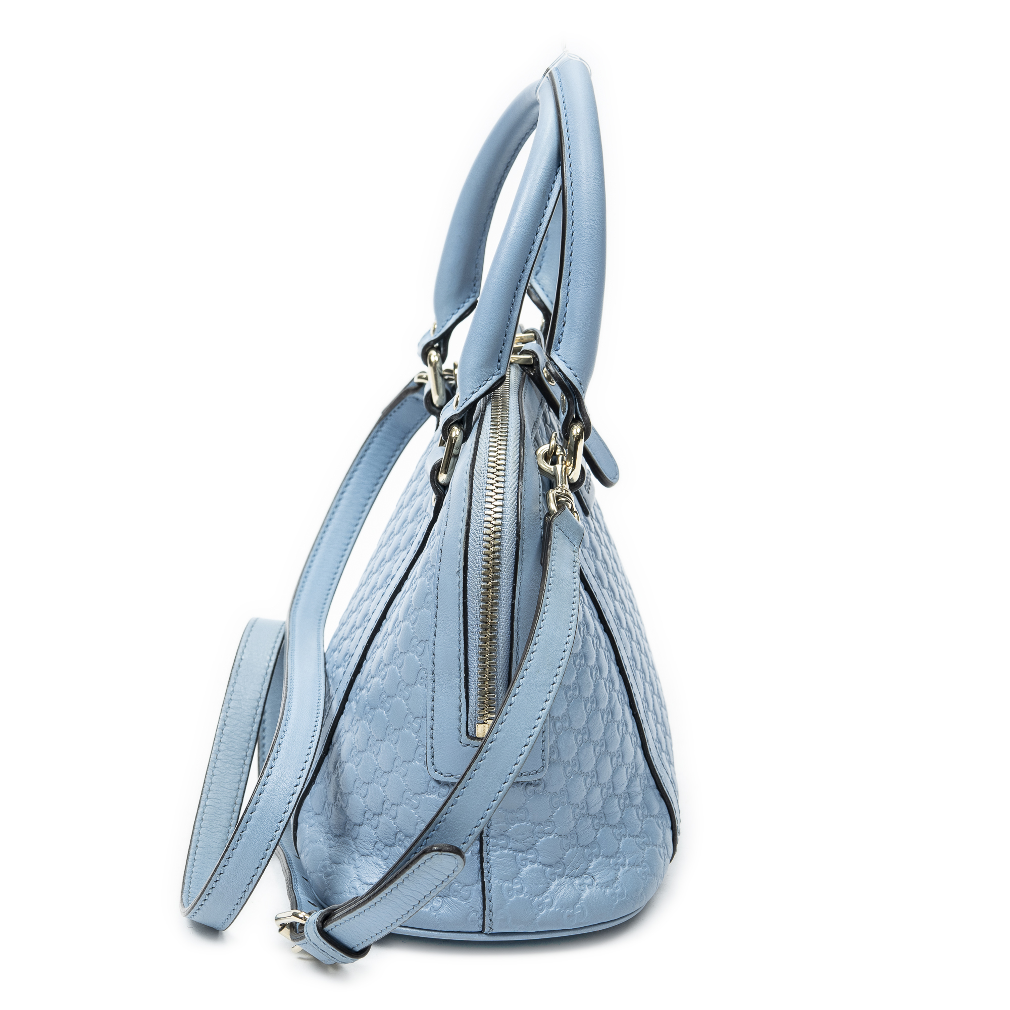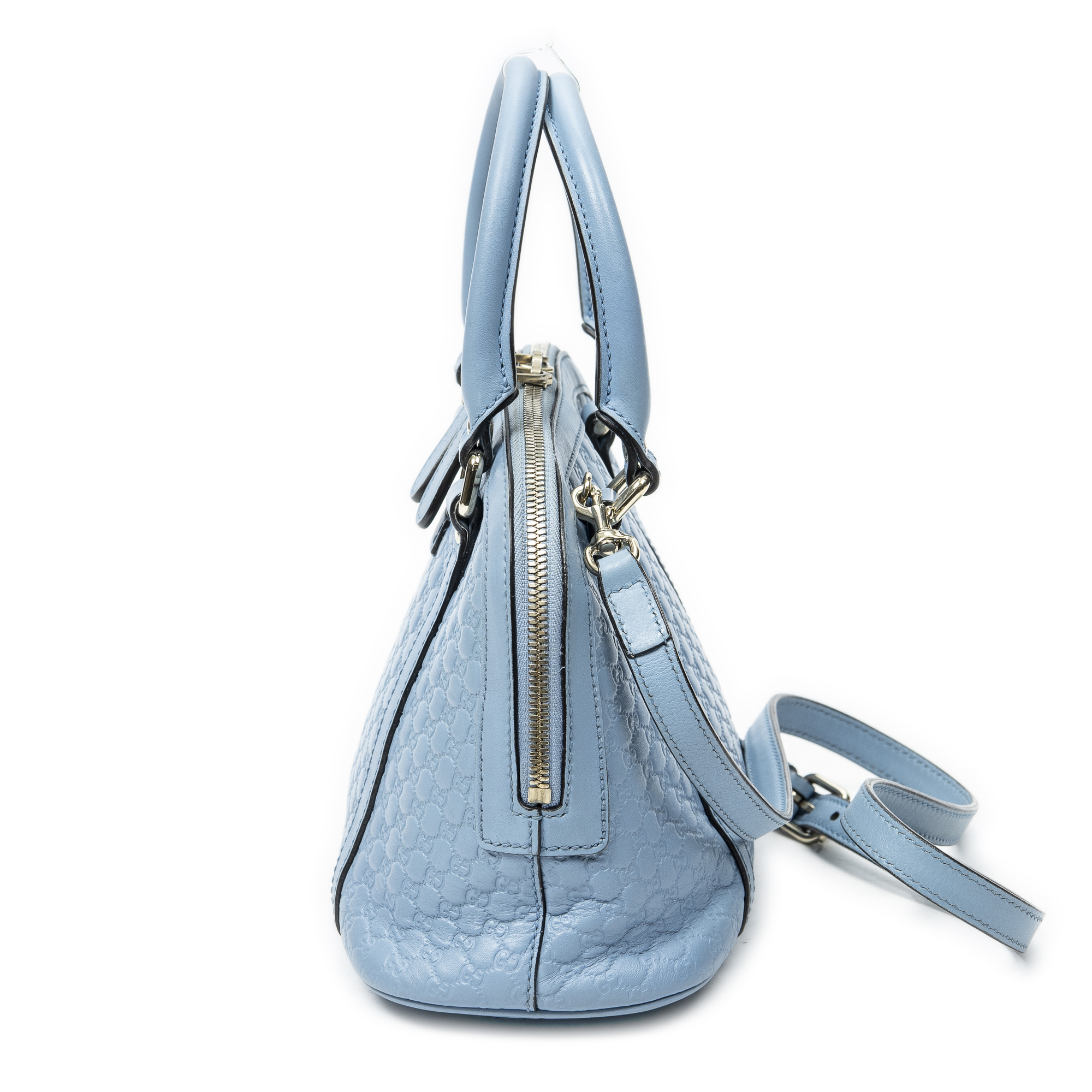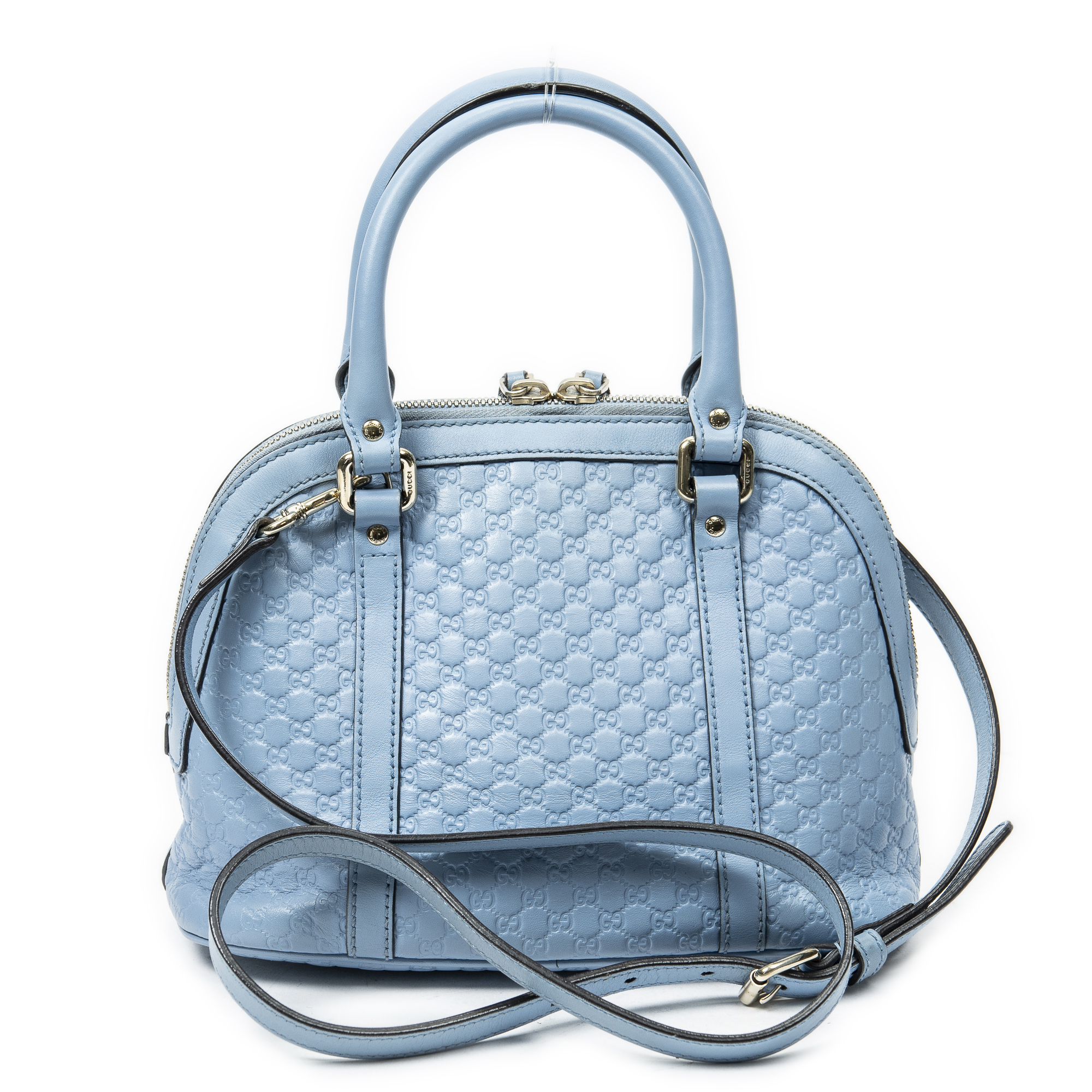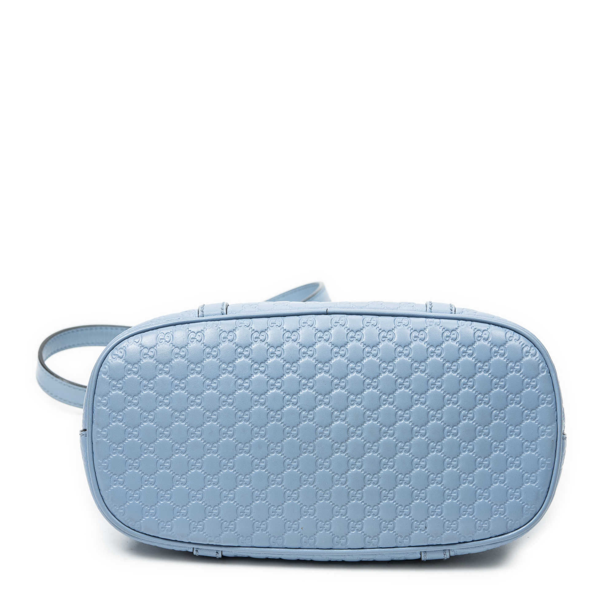 Gucci Shoulder Bag Mini Dome Tote in Light Blue Microguccissima Leather and Gold hardware. The product is in Excellent Condition (A).