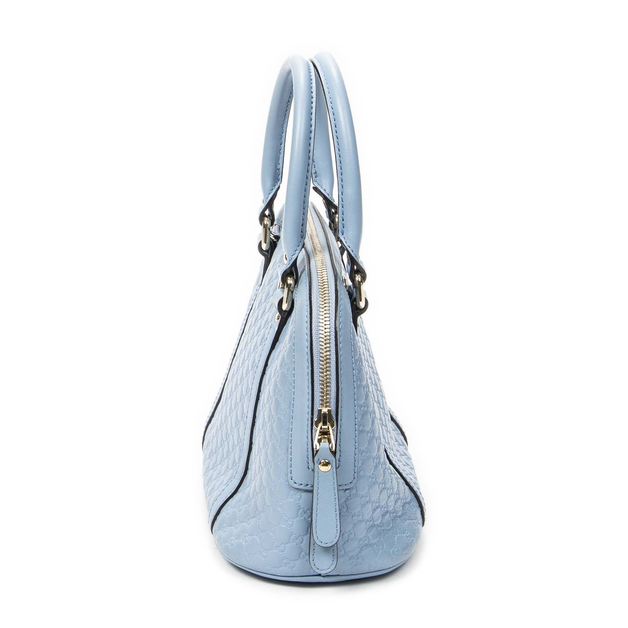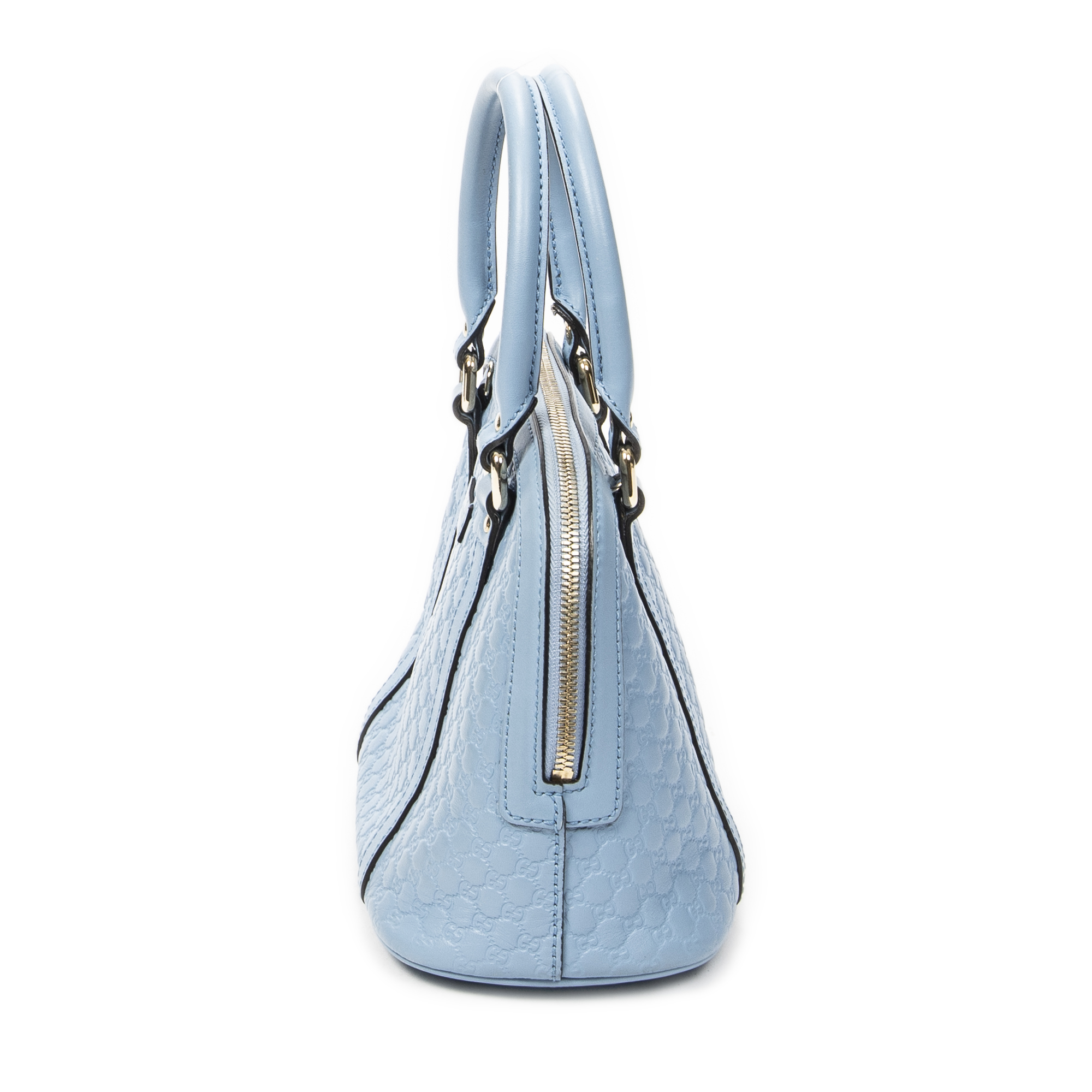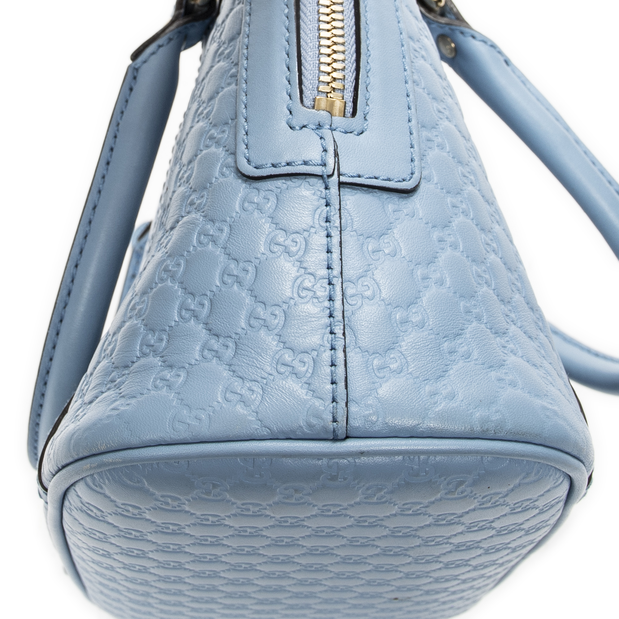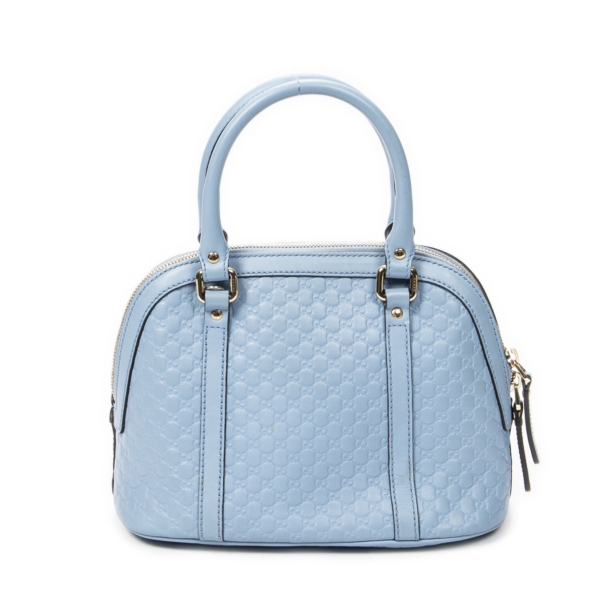Gucci Shoulder Bag Mini Dome Tote in Blue Guccissima Leather and Gold hardware. The product is in Excellent Condition (A).
