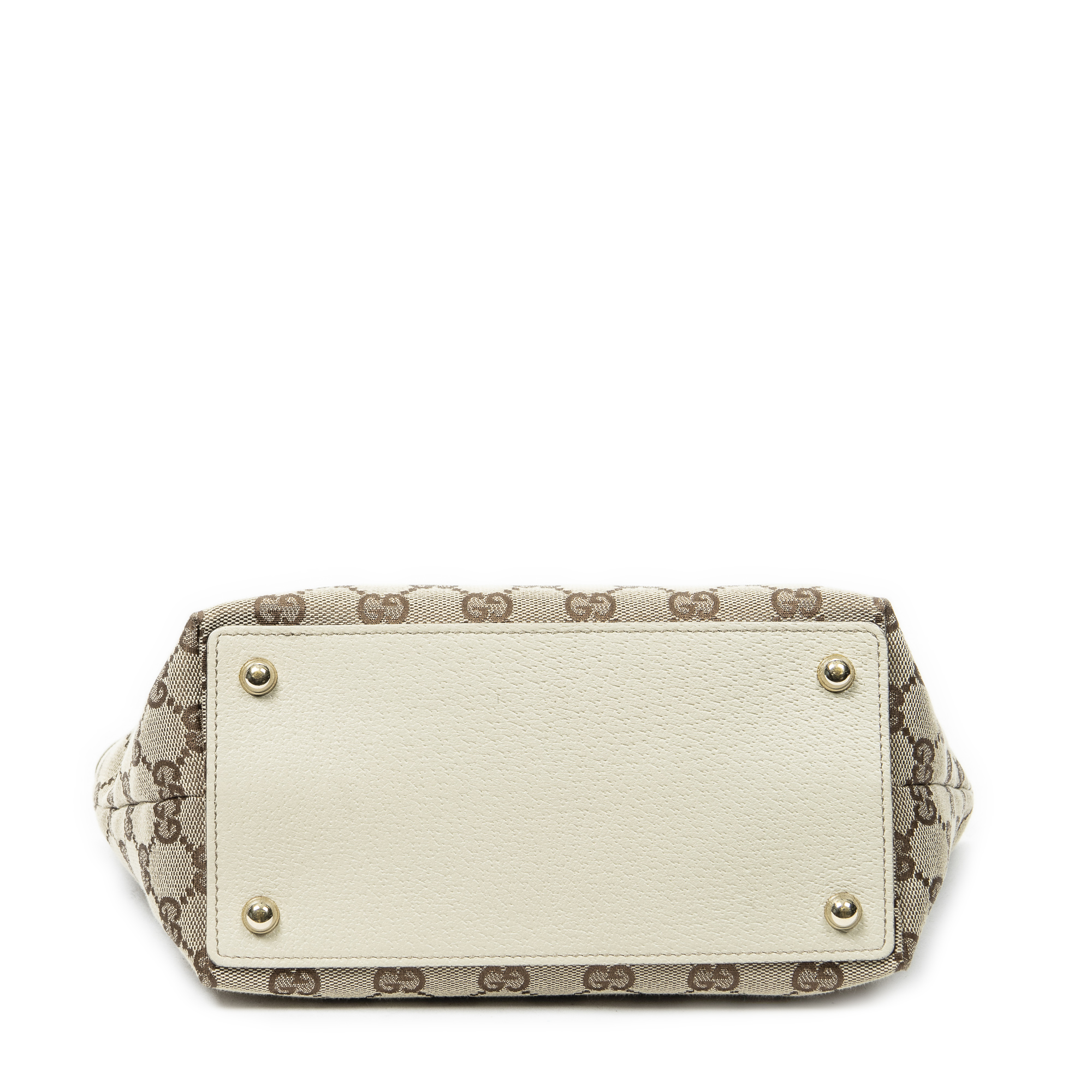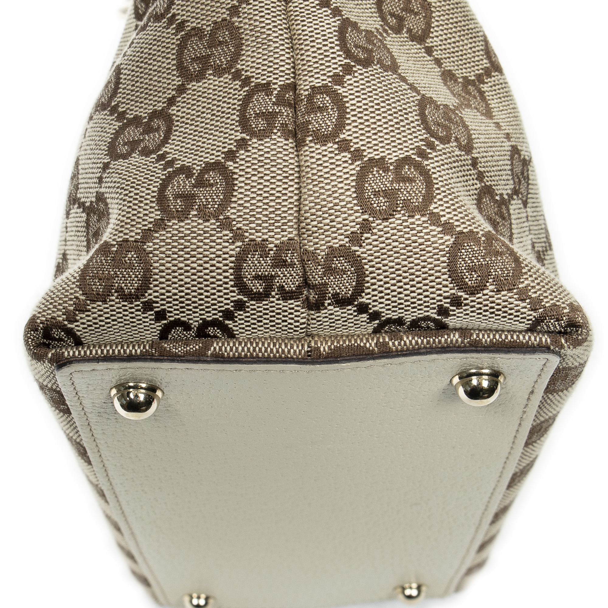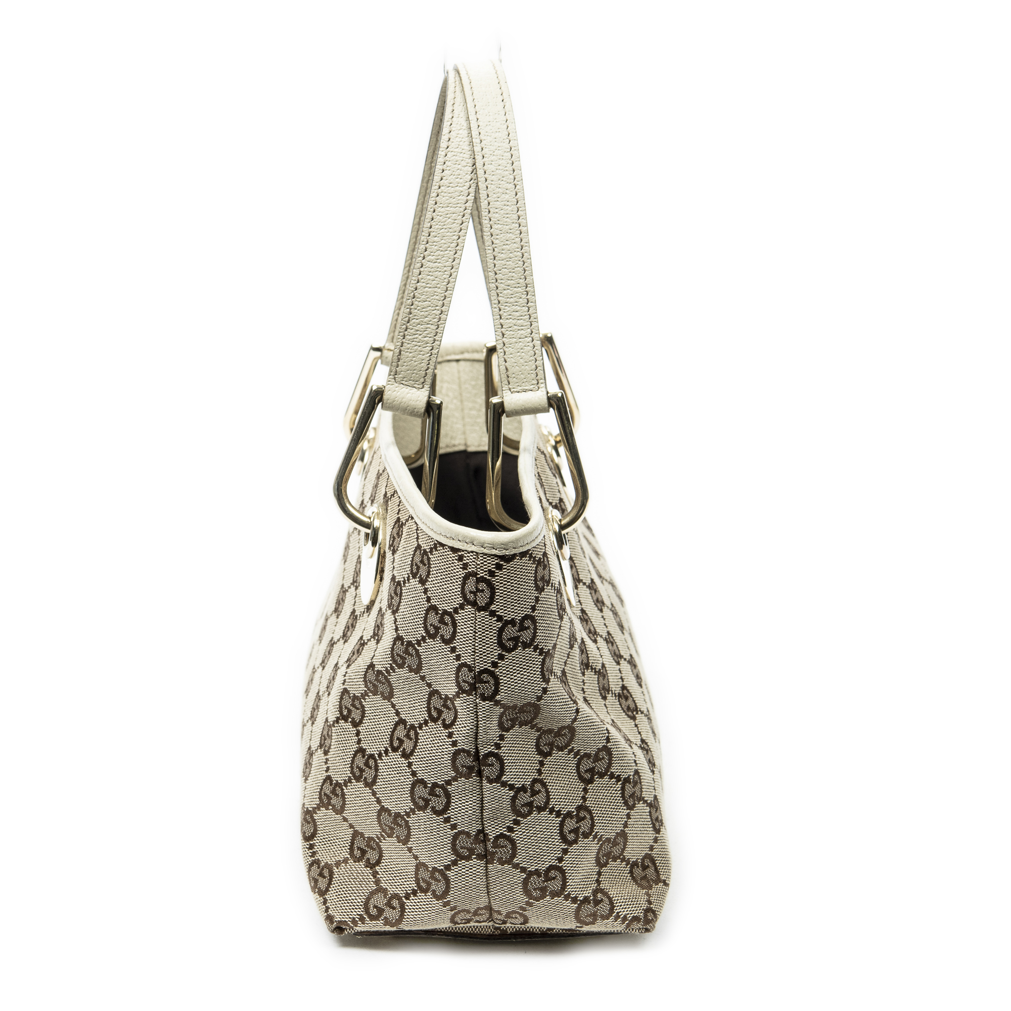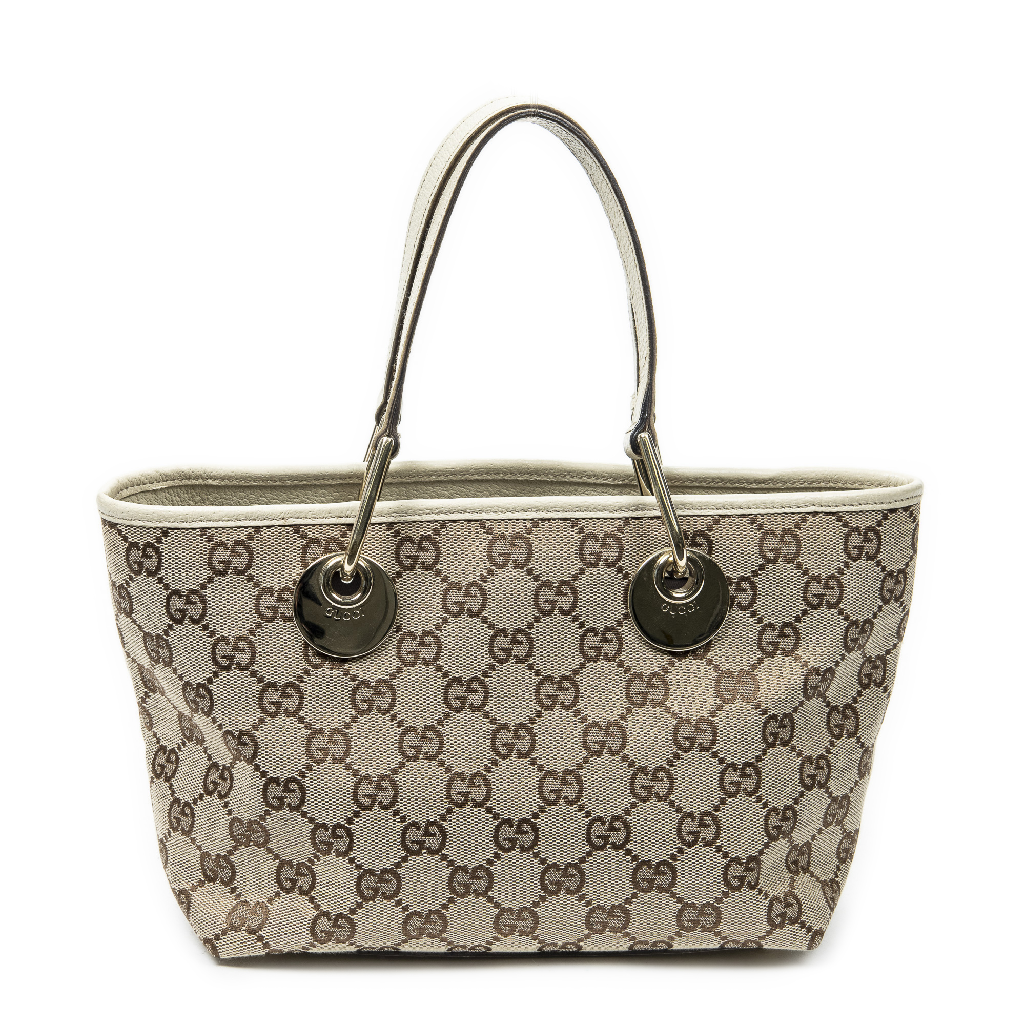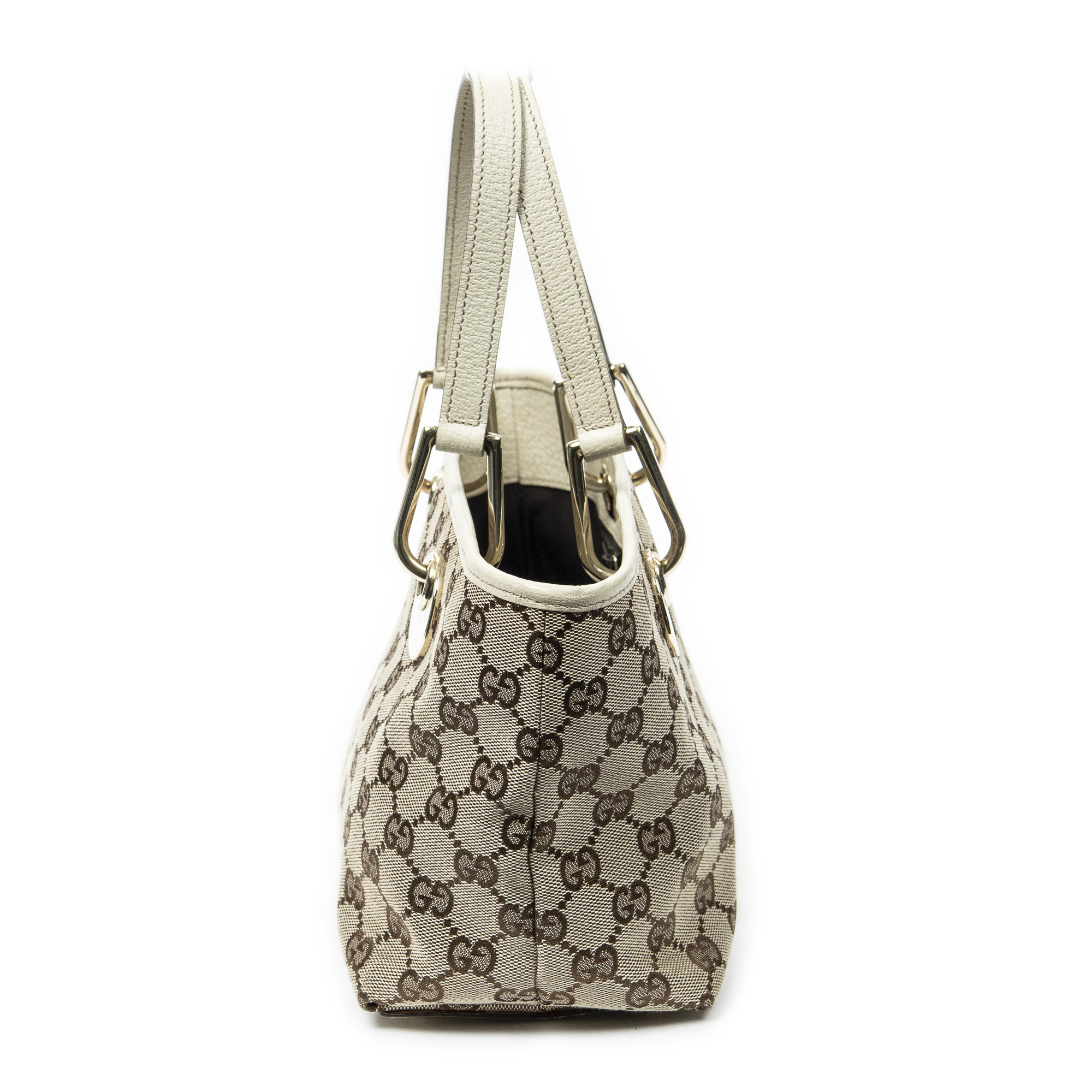 Gucci Shoulder Bag Mini Eclipse Tote in Beige/Ivory Monogrammed Canvas and Gold hardware. The product is in Perfect Condition (AA).