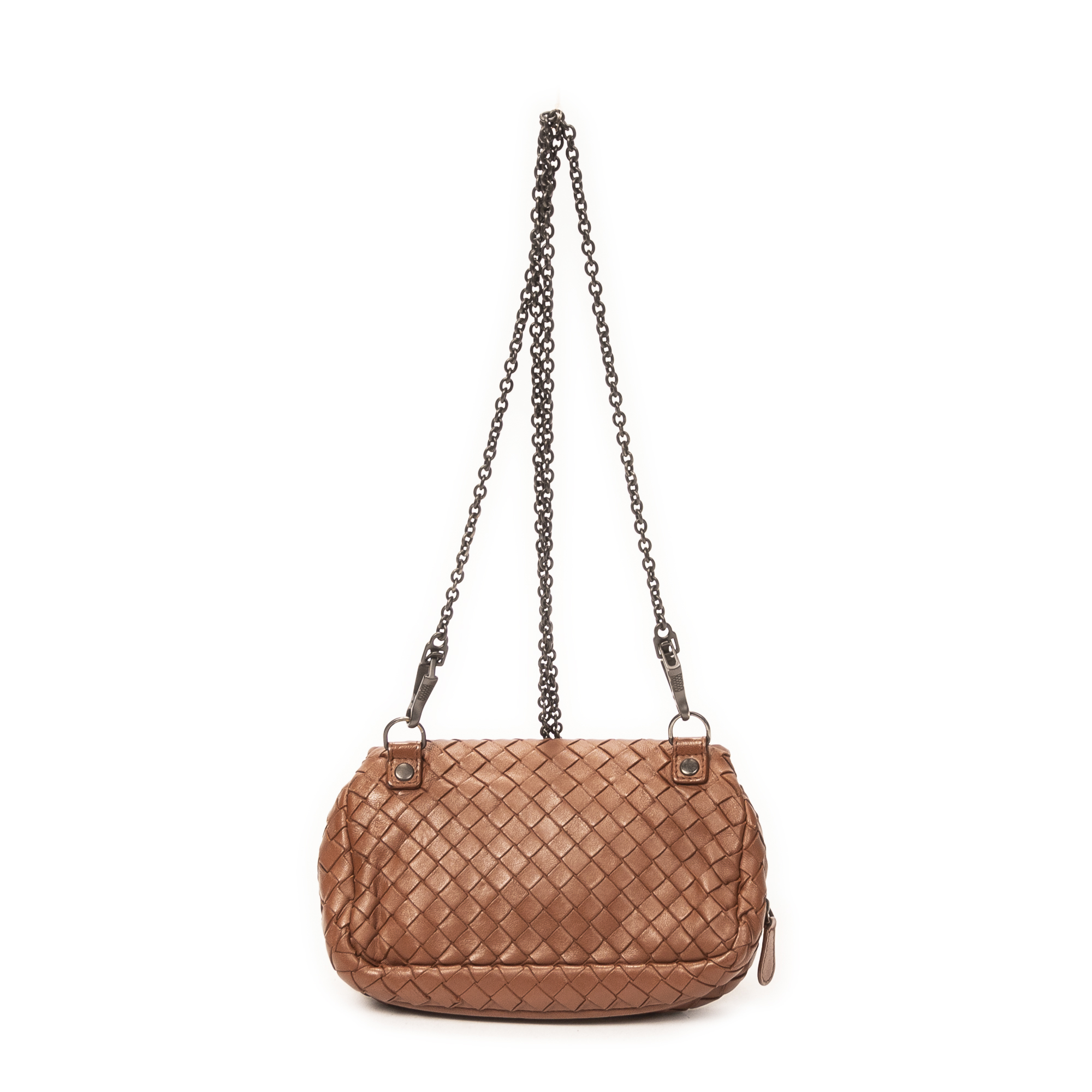 Description : Bottega Veneta Shoulder Bag Mini Expandable Chain Flap Crossbody in Brown Intrecciato Leather and Aged Brass hardware. The product is in Very Good Condition (AB). Dimensions: 18x14x4.5 cm SKU: ABC6886 Serial number: BO5153843I Accessories Included: Strap Delivery: We have a 5 to 7 business days delivery policy, hassle-free and duties/tariffs included! BrandCo Paris finds rare and top condition items at great deals, they are worth your patience! Shop with confidence - All BrandCo Paris items are carefully selected and authenticated by our team of experts. All the items come with an authenticity certificate and packaging delivered by BrandCo Paris. Item Condition Grading Table N (Like New) AA (Perfect Condition) A (Excellent Condition) AB (Very Good Condition) B (Good/Fair)