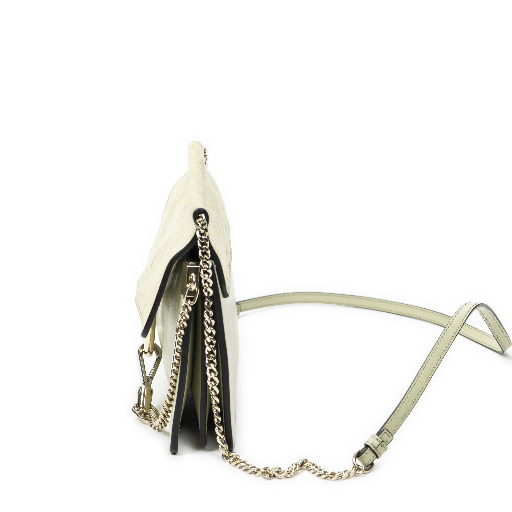 Chloé Shoulder Bag Mini Faye Chain Bag in Beige Calfskin Leather and Gold hardware. The product is in Excellent Condition (A).