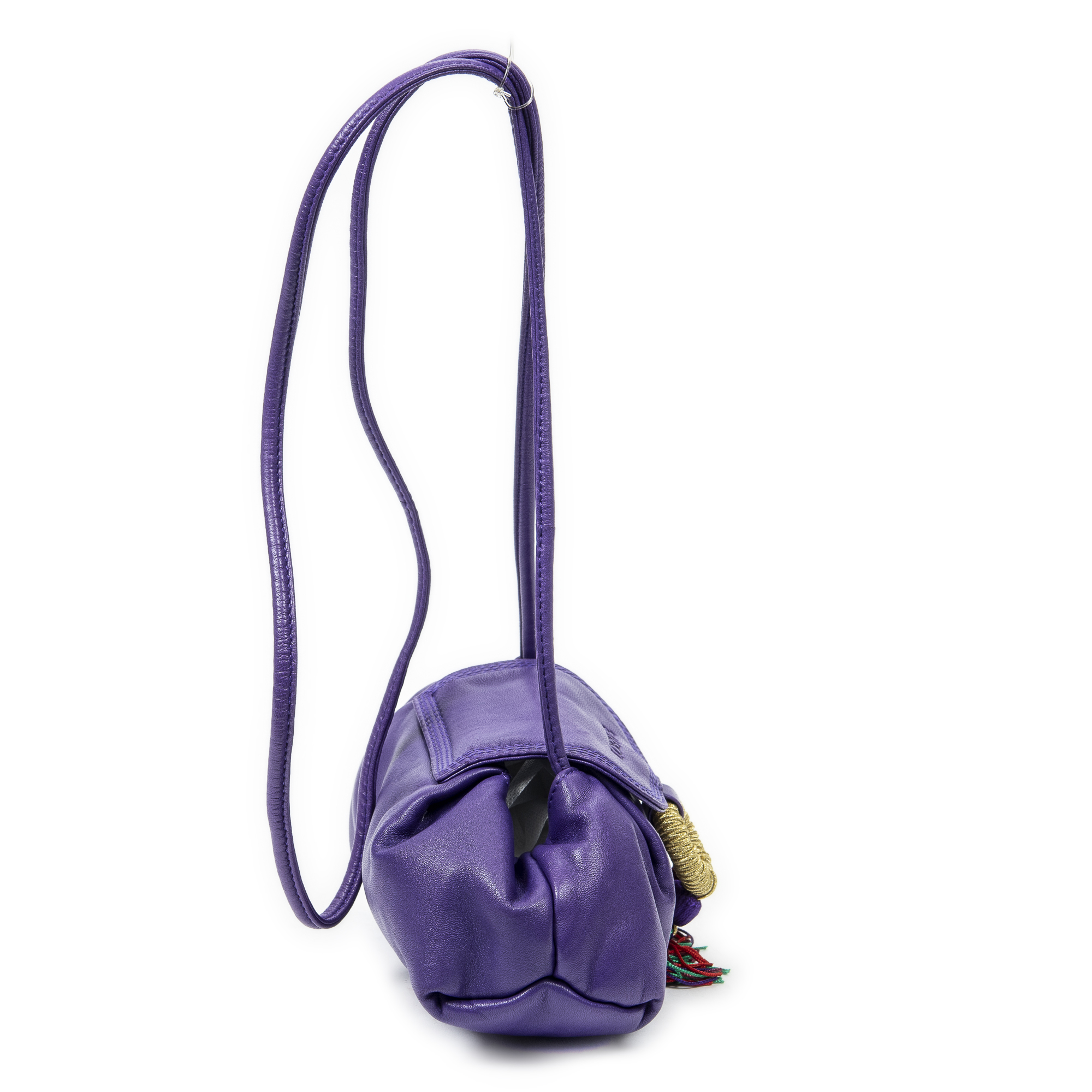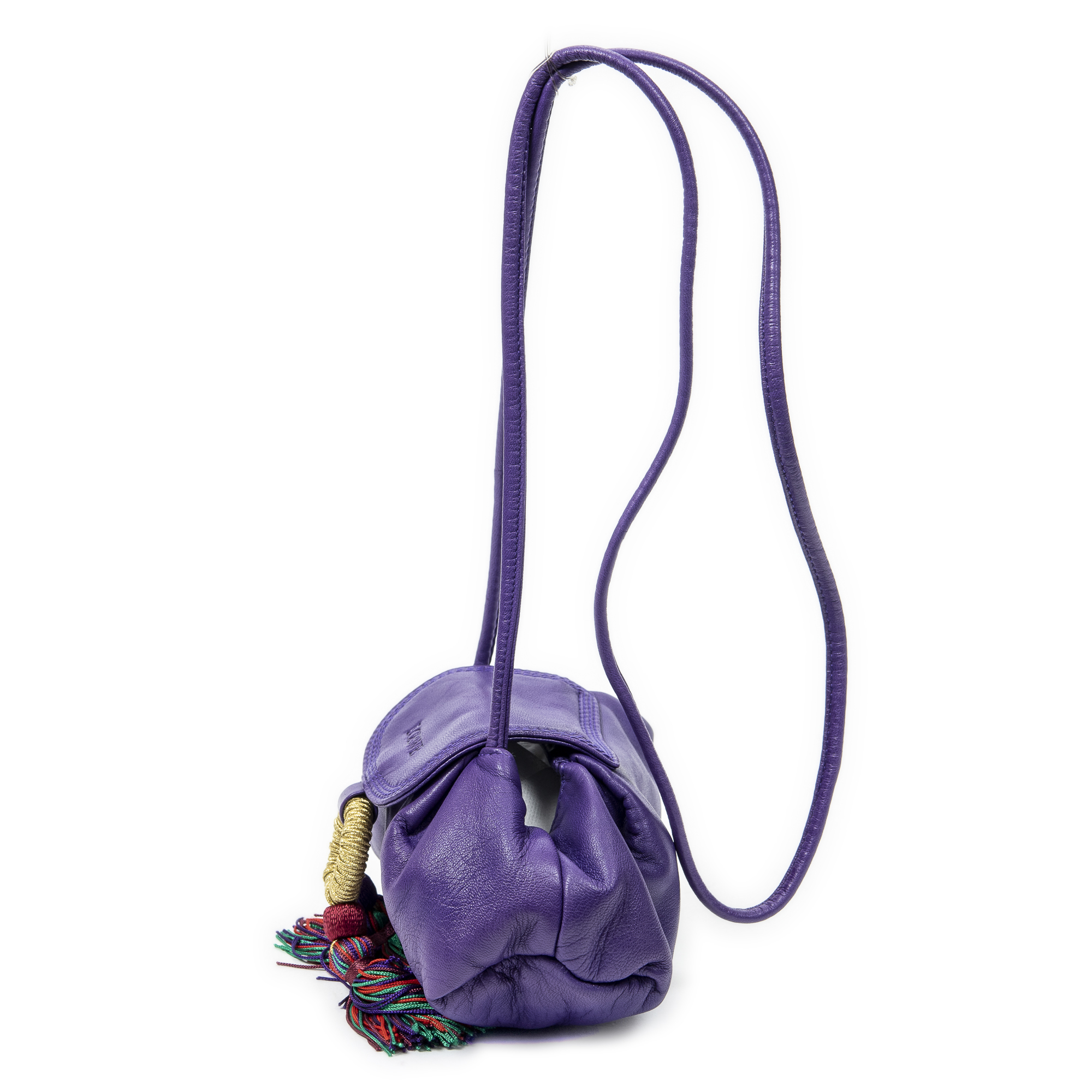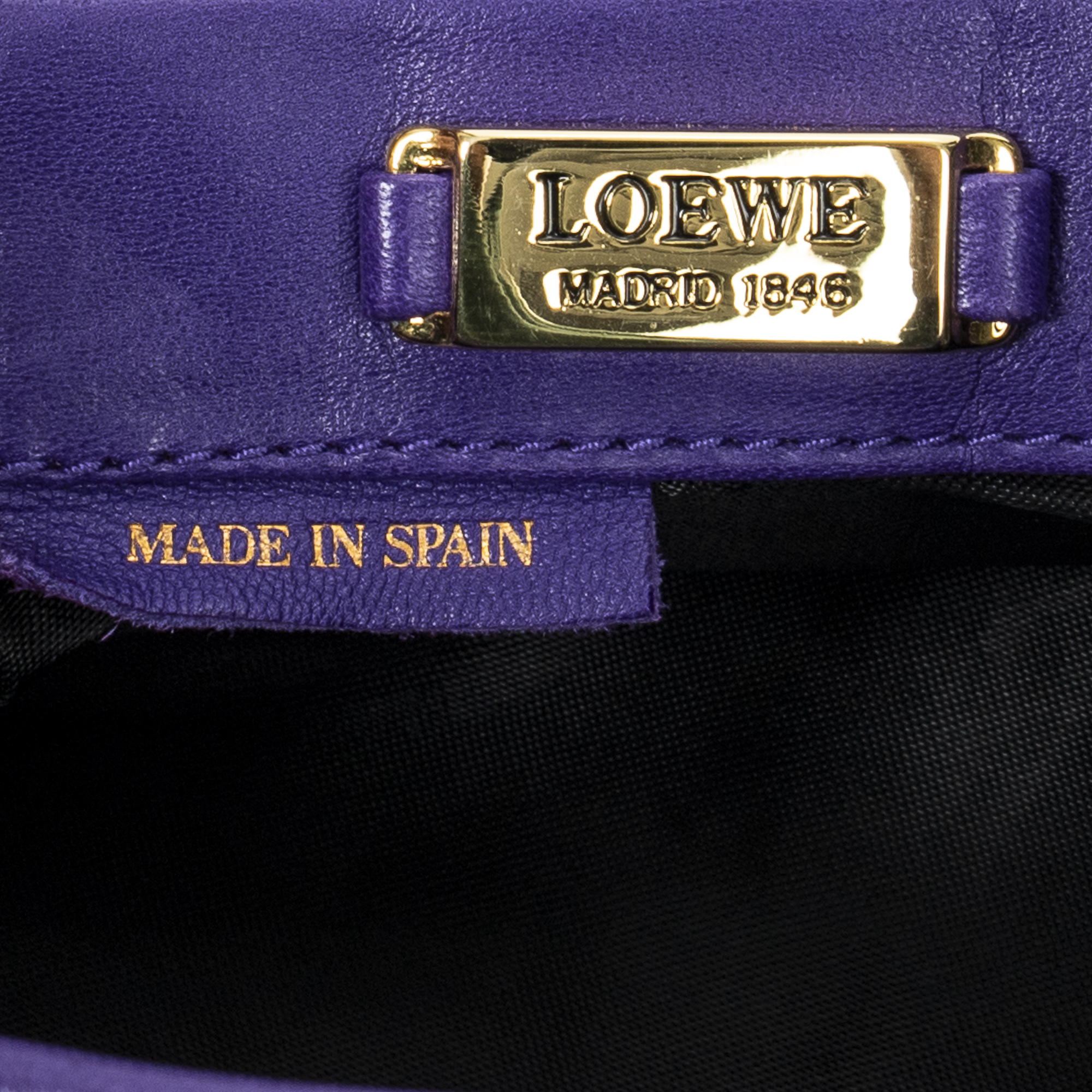 Loewe Shoulder Bag Mini Flap Fringe Crossbody in Purple Calfskin Leather and Gold hardware. The product is in Excellent Condition (A).