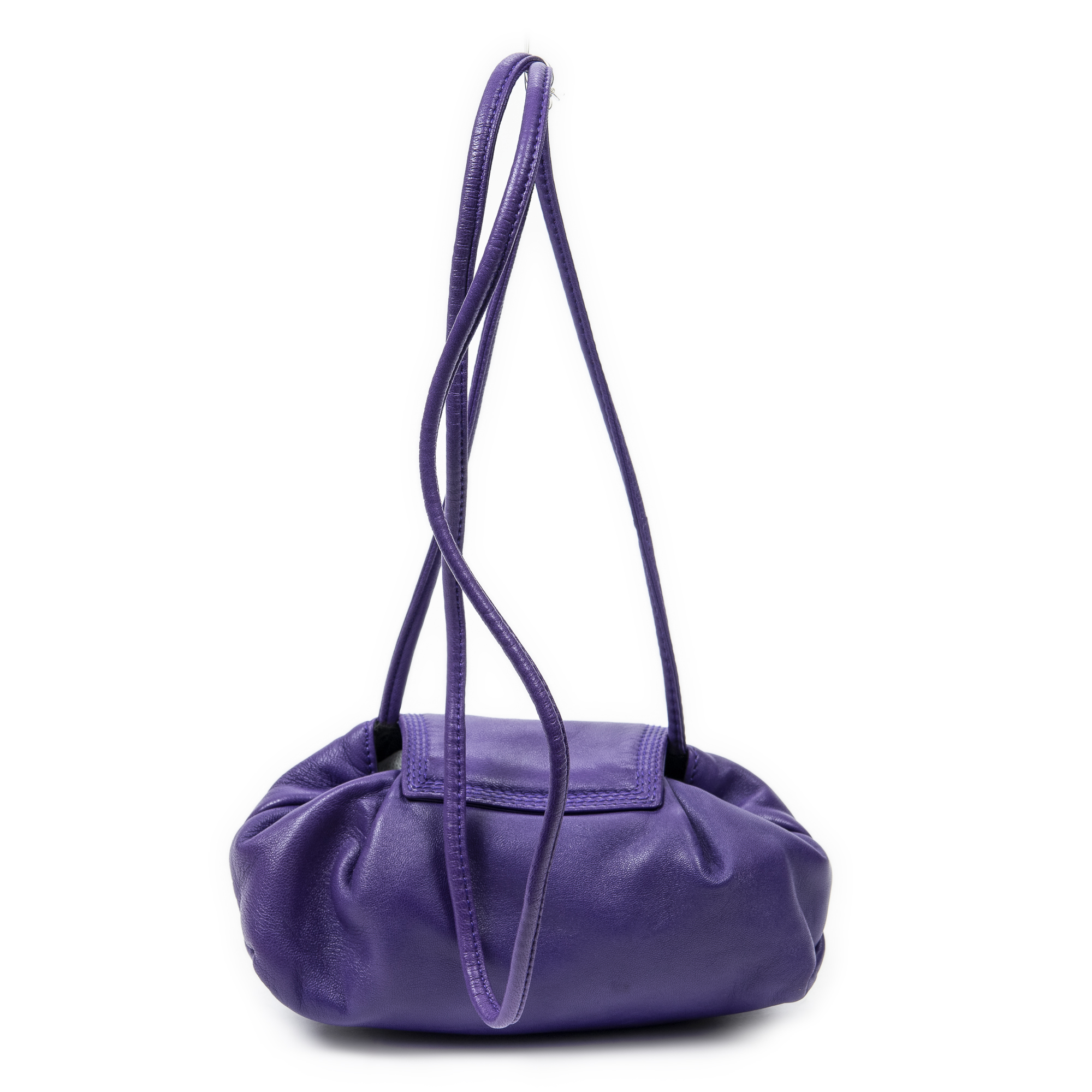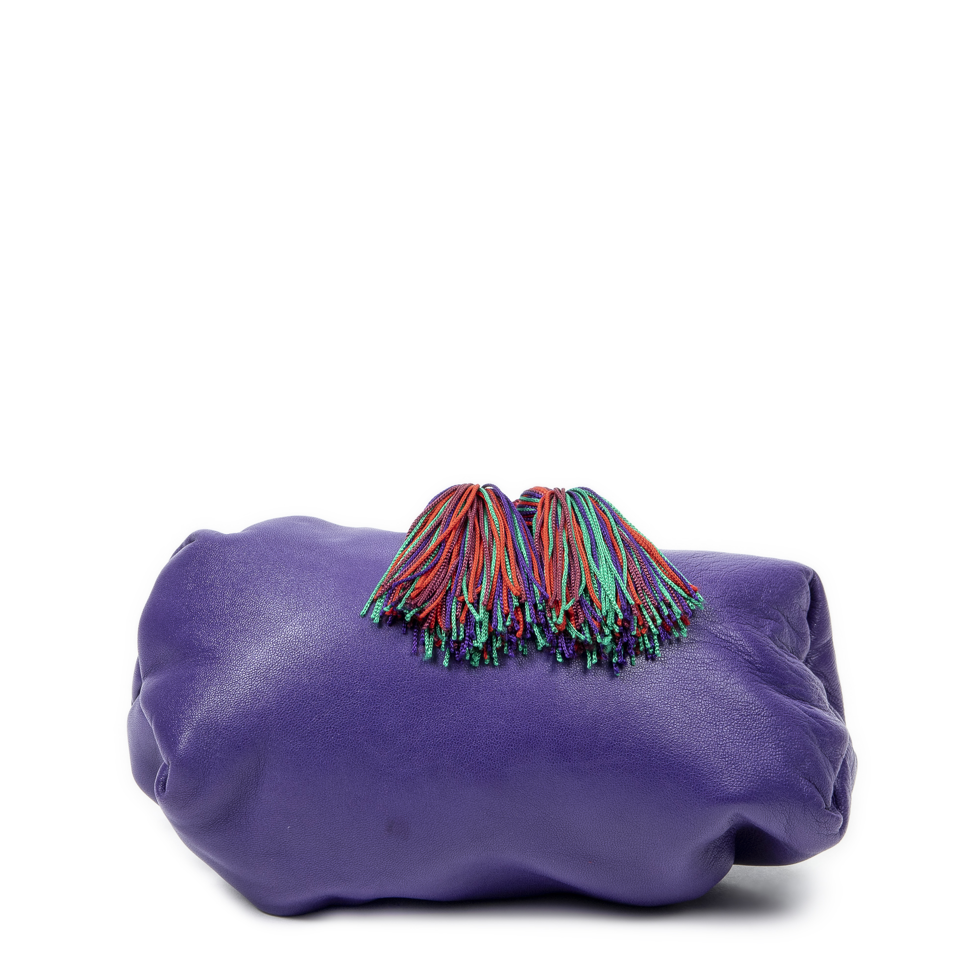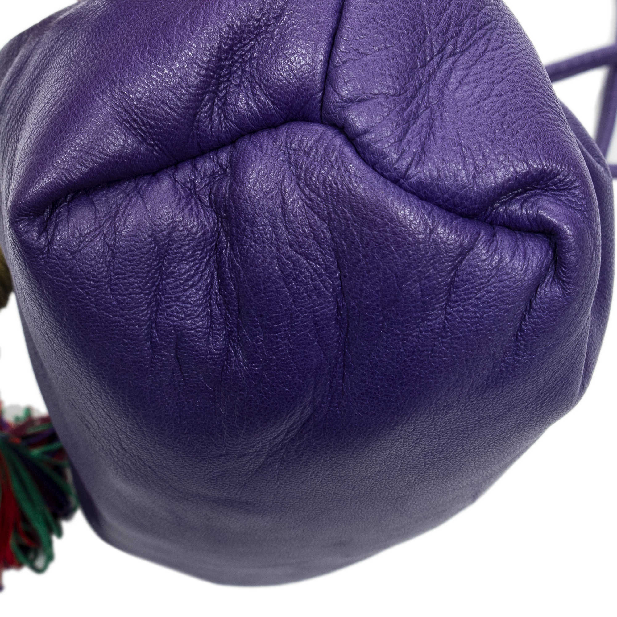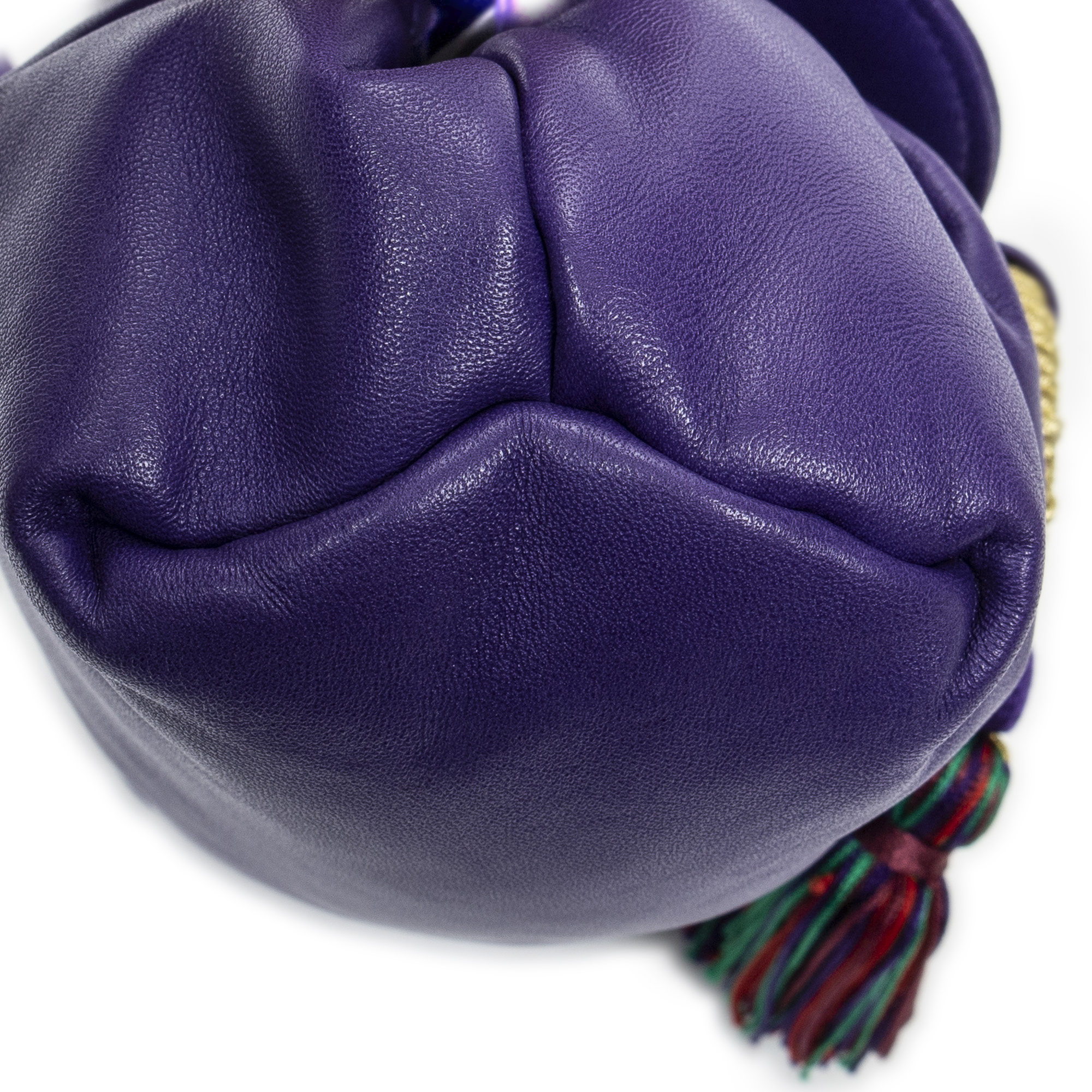 Loewe Shoulder Bag Mini Flap Fringe Crossbody in Purple Calfskin Leather and Gold hardware. The product is in Excellent Condition (A).
