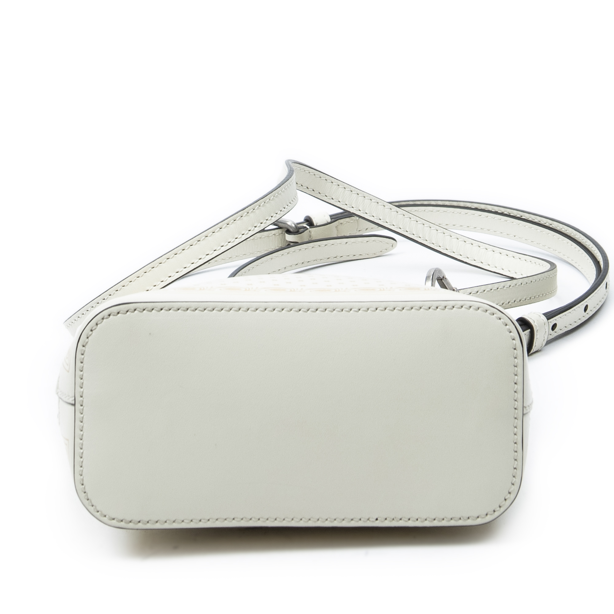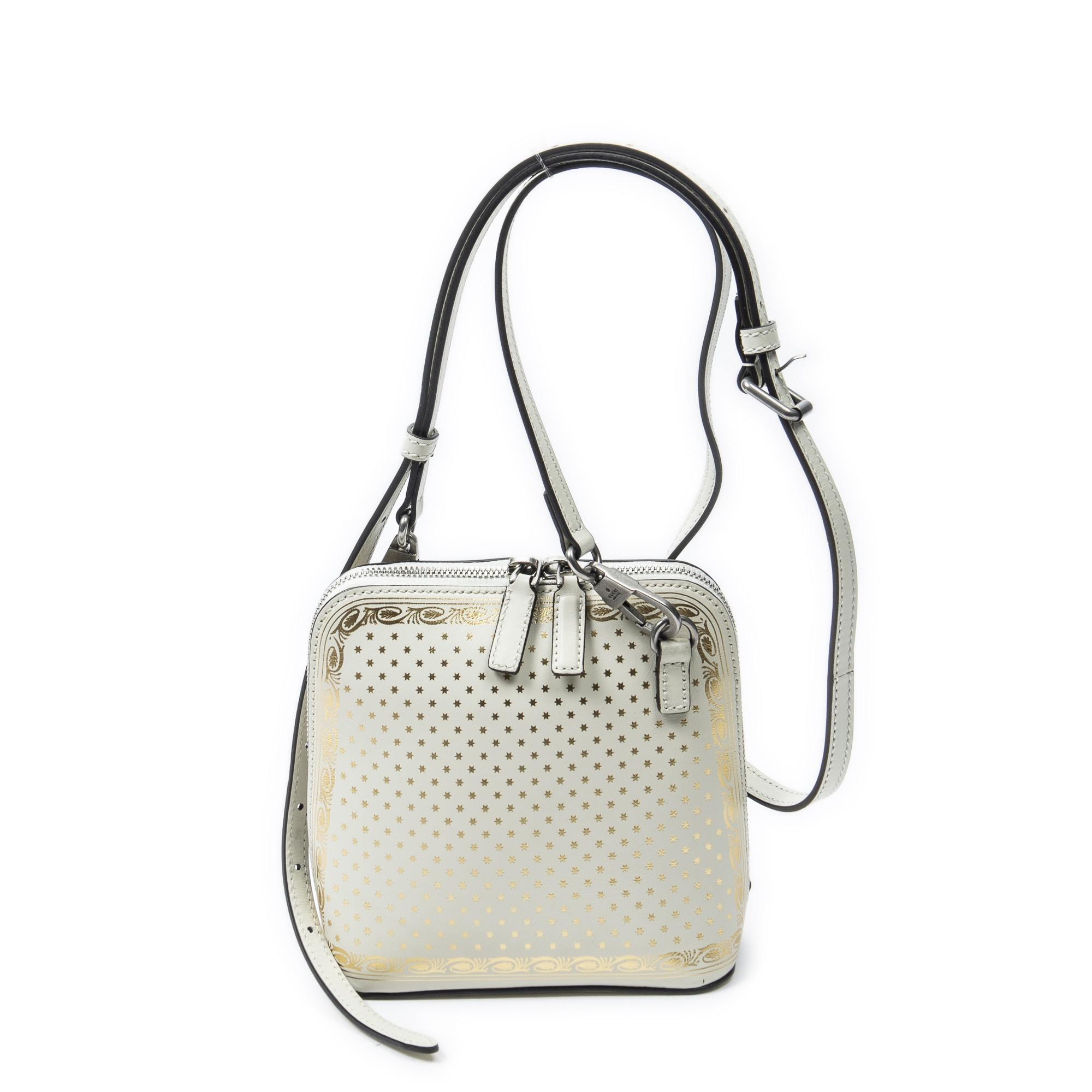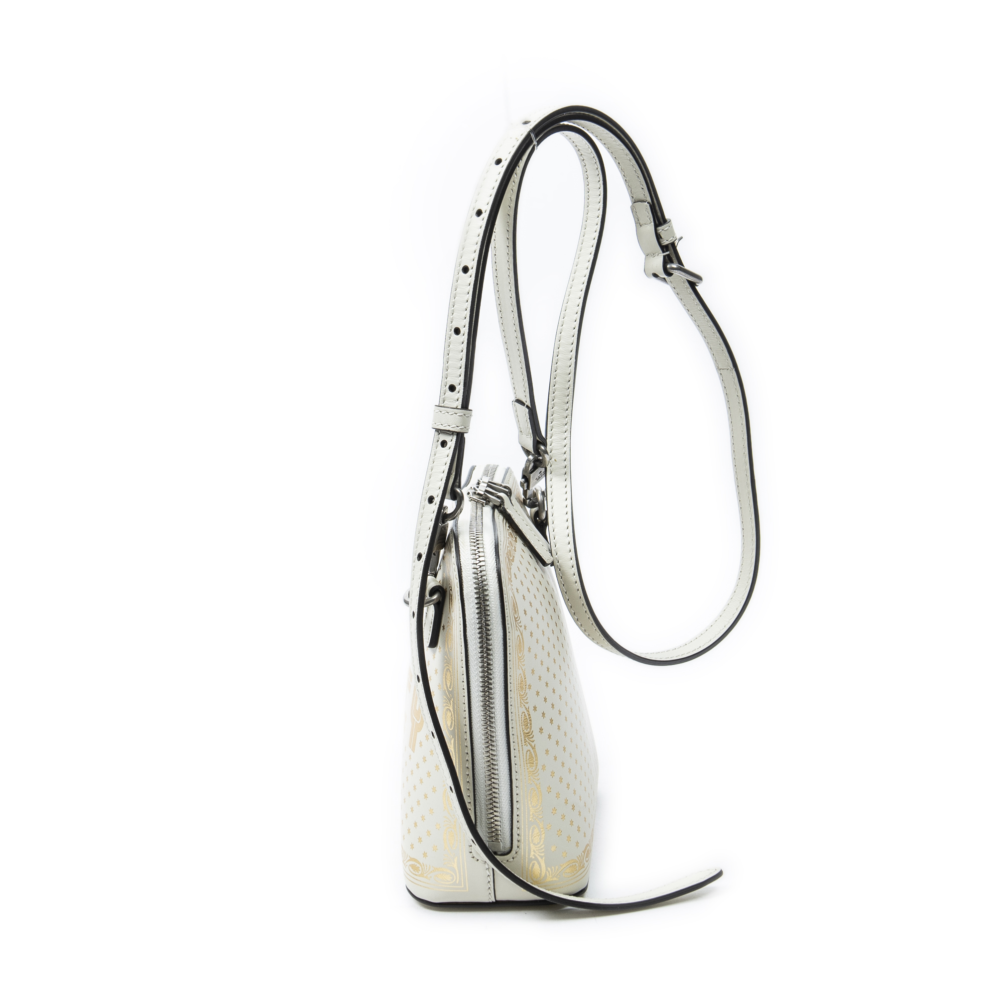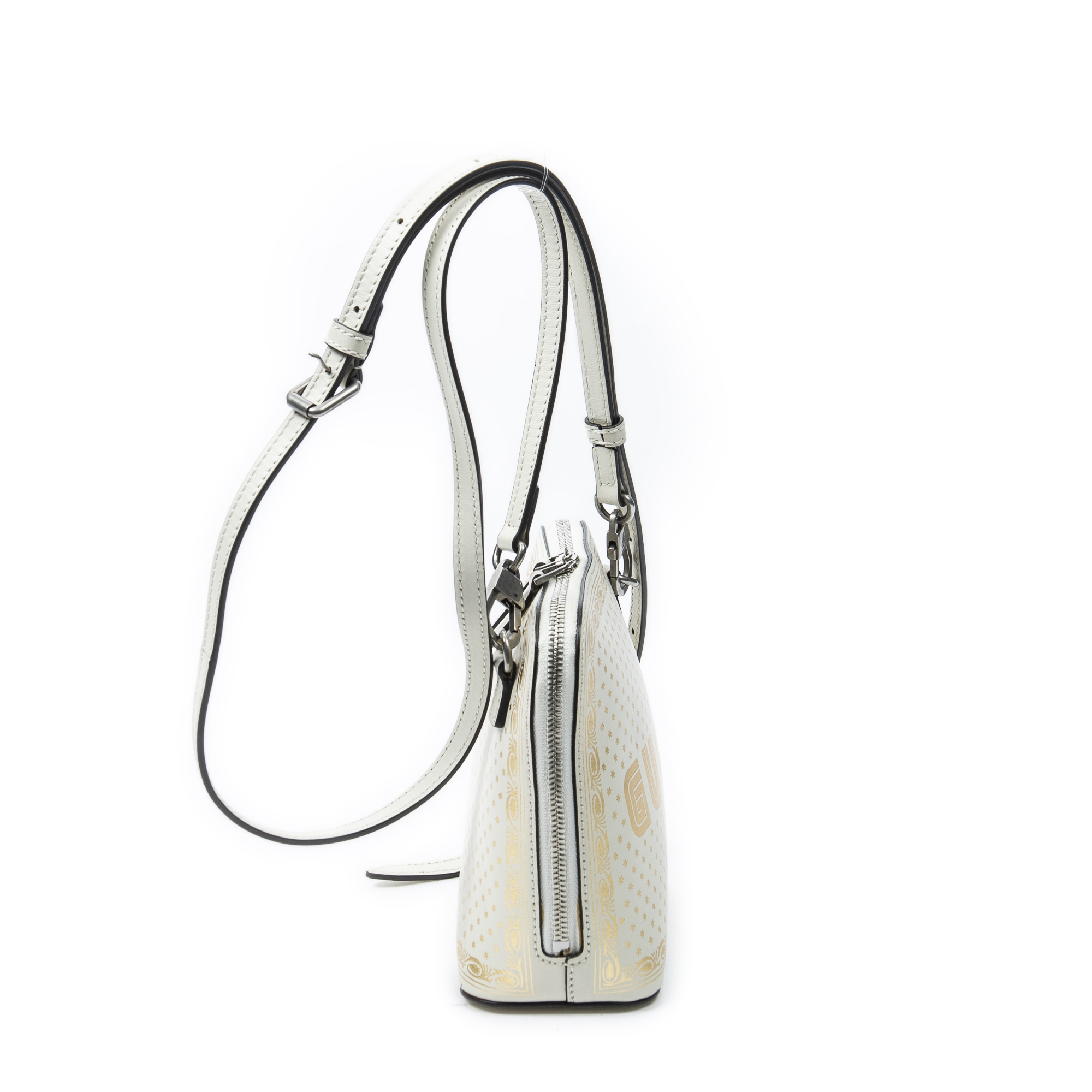 Gucci Shoulder Bag Mini Guccy Dome Crossbody in Ivory Logo Stars Printed Leather and Silver hardware. The product is in Excellent Condition (A).