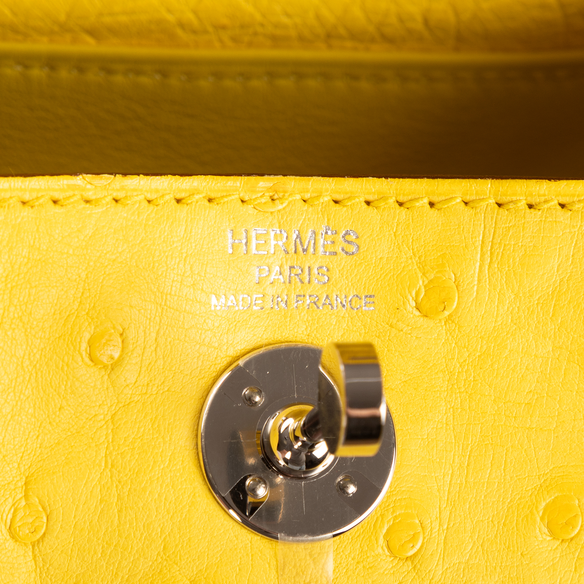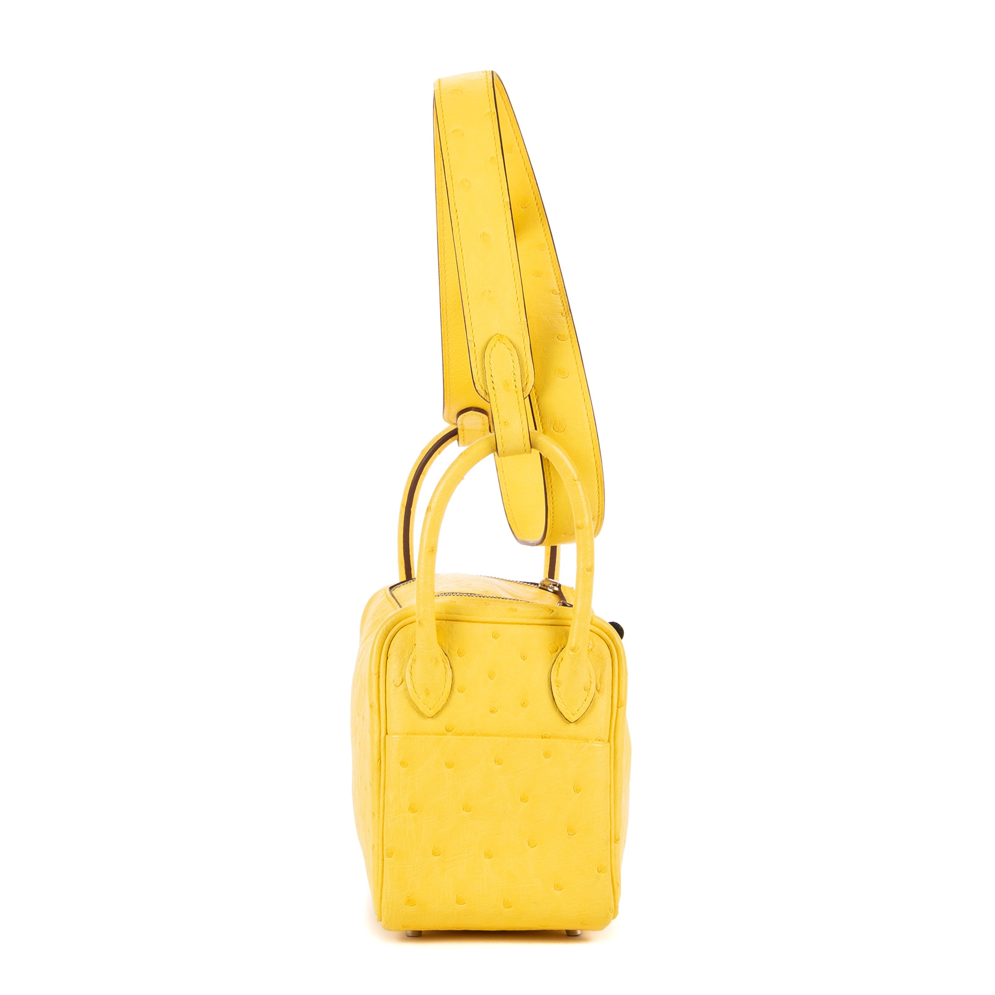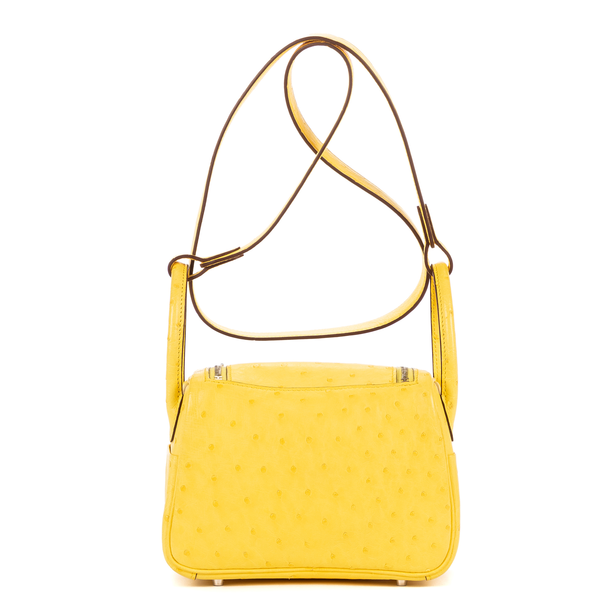 Hermès Shoulder Bag Mini Lindy Mini in Bright Lemon Yellow Ostrich and Palladium hardware. The product is in Perfect Condition (AA).