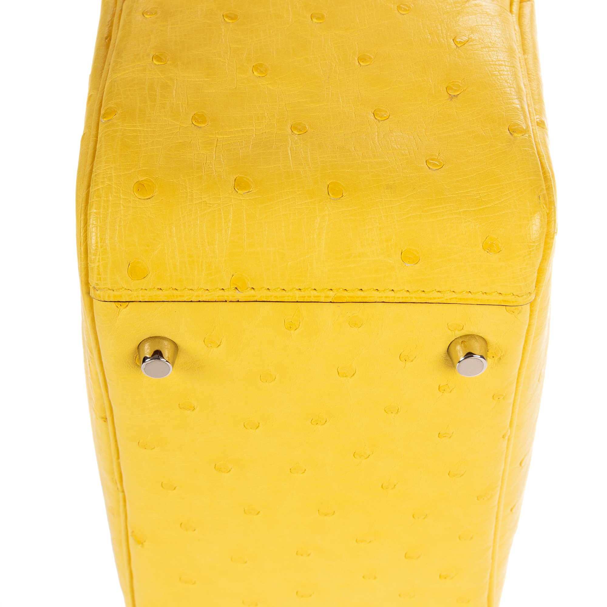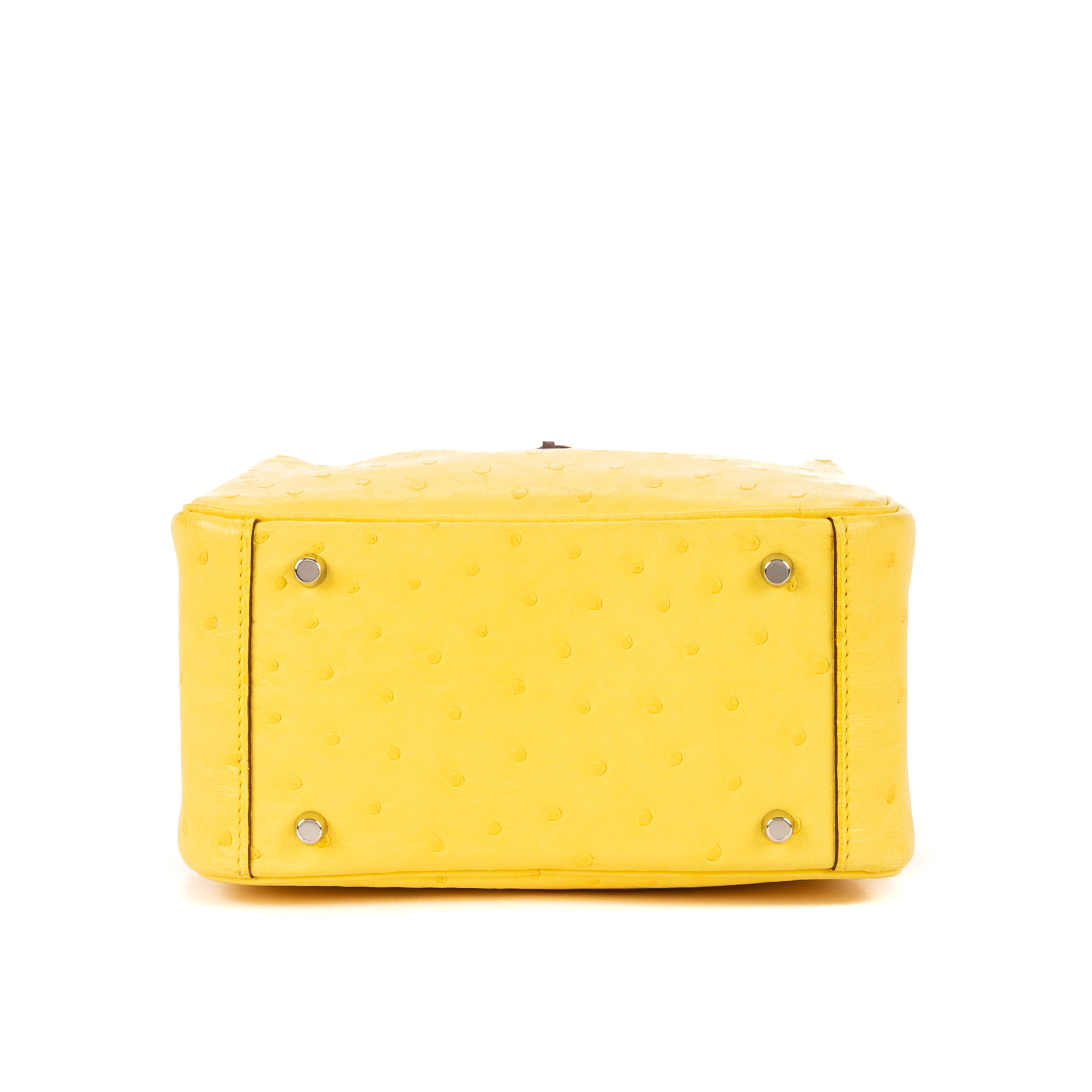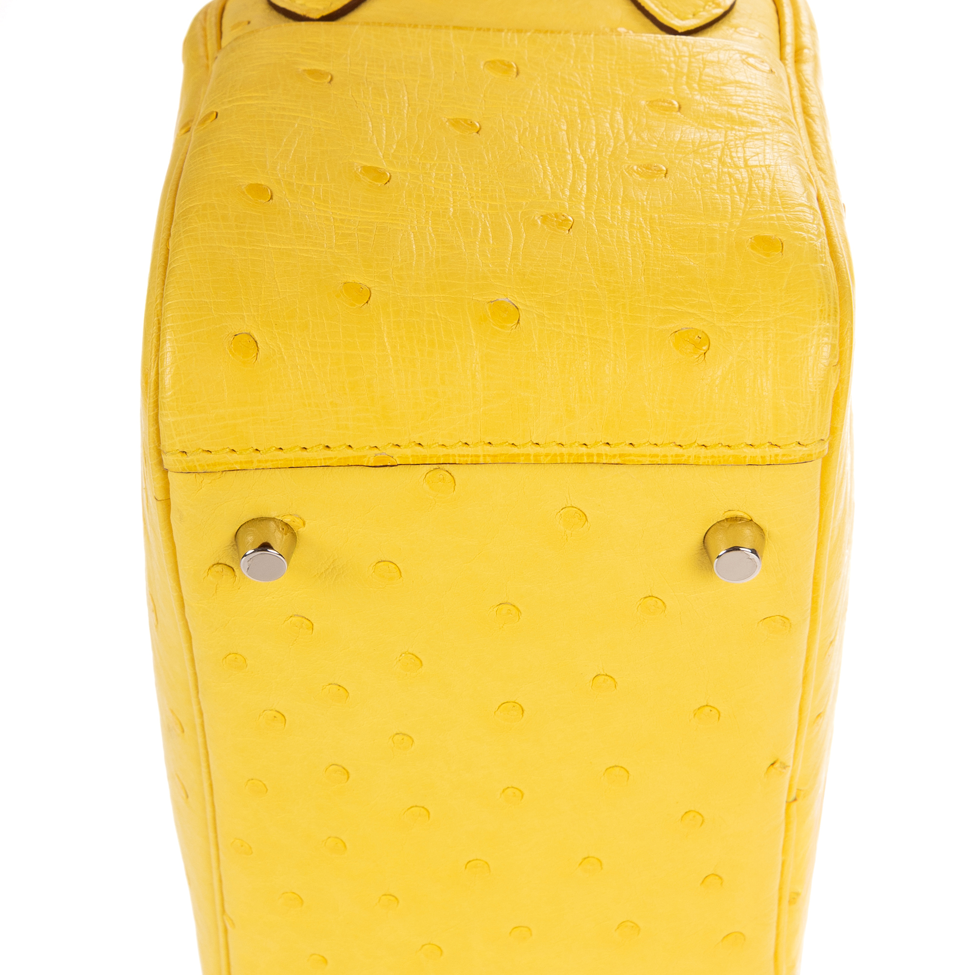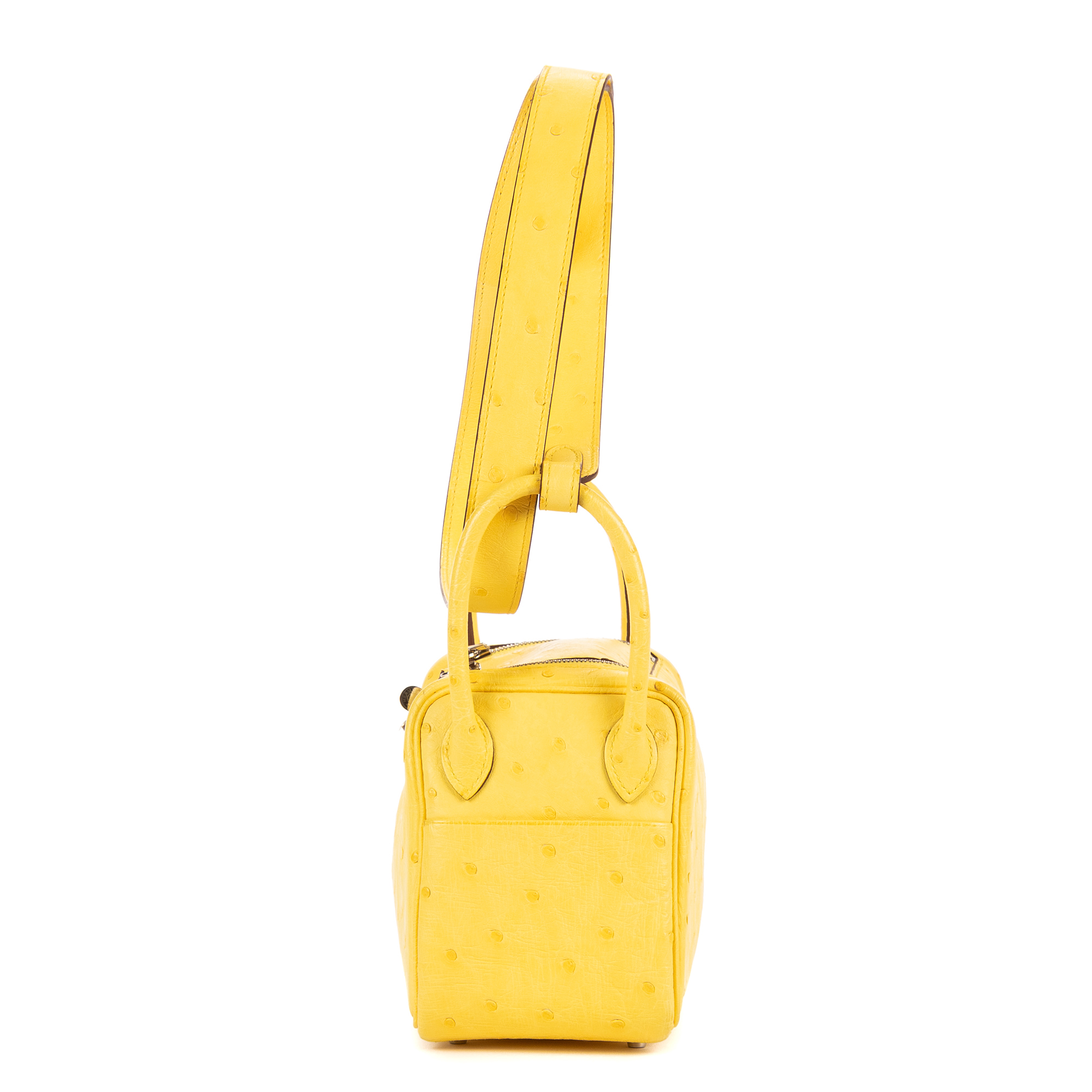 Hermès Shoulder Bag Mini Lindy Mini in Bright Lemon Yellow Ostrich and Palladium hardware. The product is in Perfect Condition (AA).