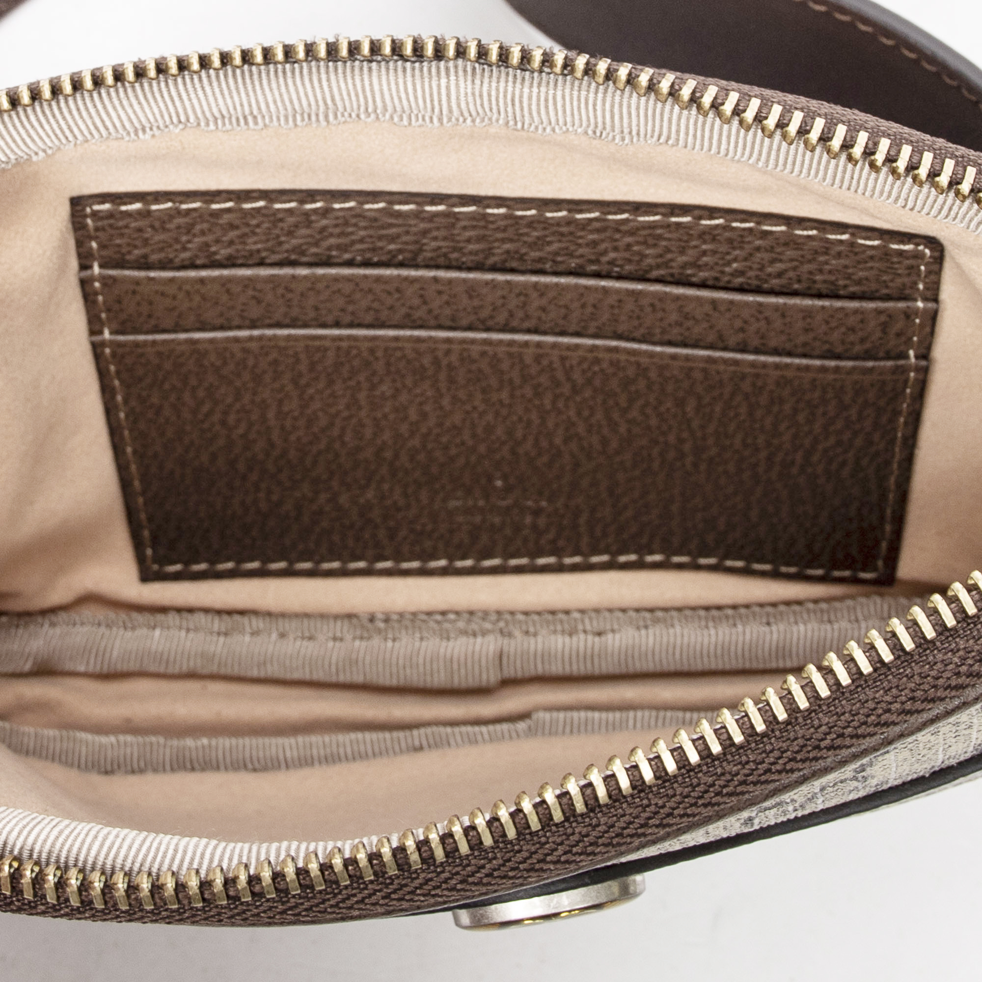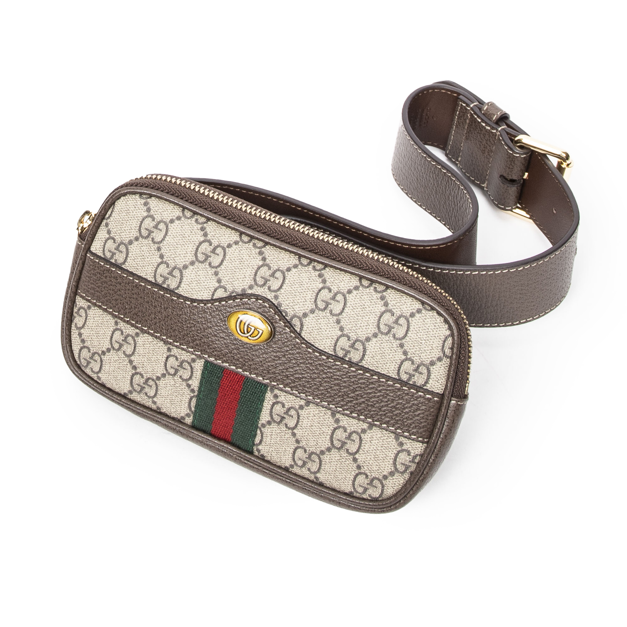 Gucci Shoulder Bag Mini Ophidia Waist Bag in Beige/Brown Supreme Coated Canvas and Gold hardware. The product is in Perfect Condition (AA).