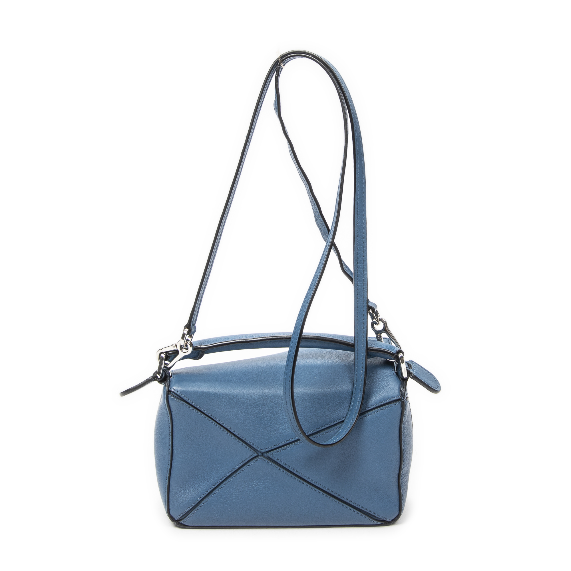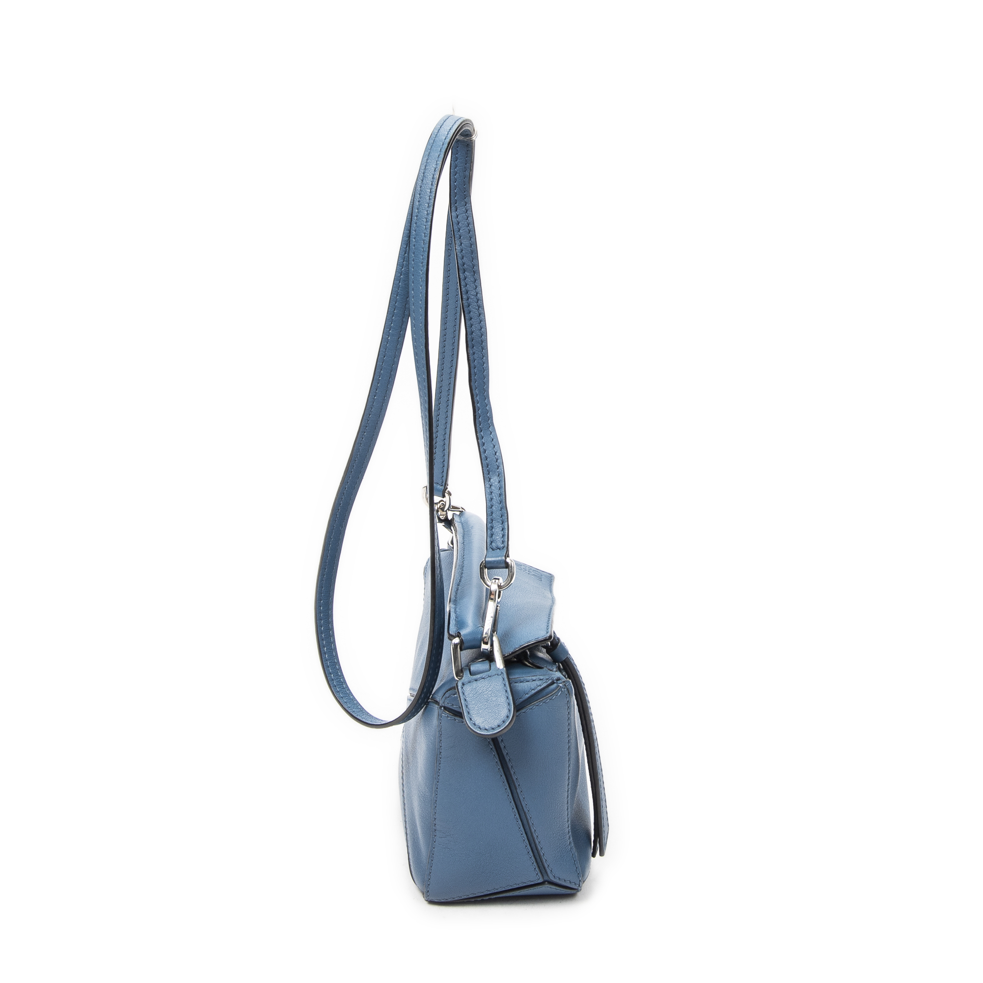 Loewe Shoulder Bag Mini Puzzle Bag in Blue Calfskin Leather and Silver hardware. The product is in Excellent Condition (A).