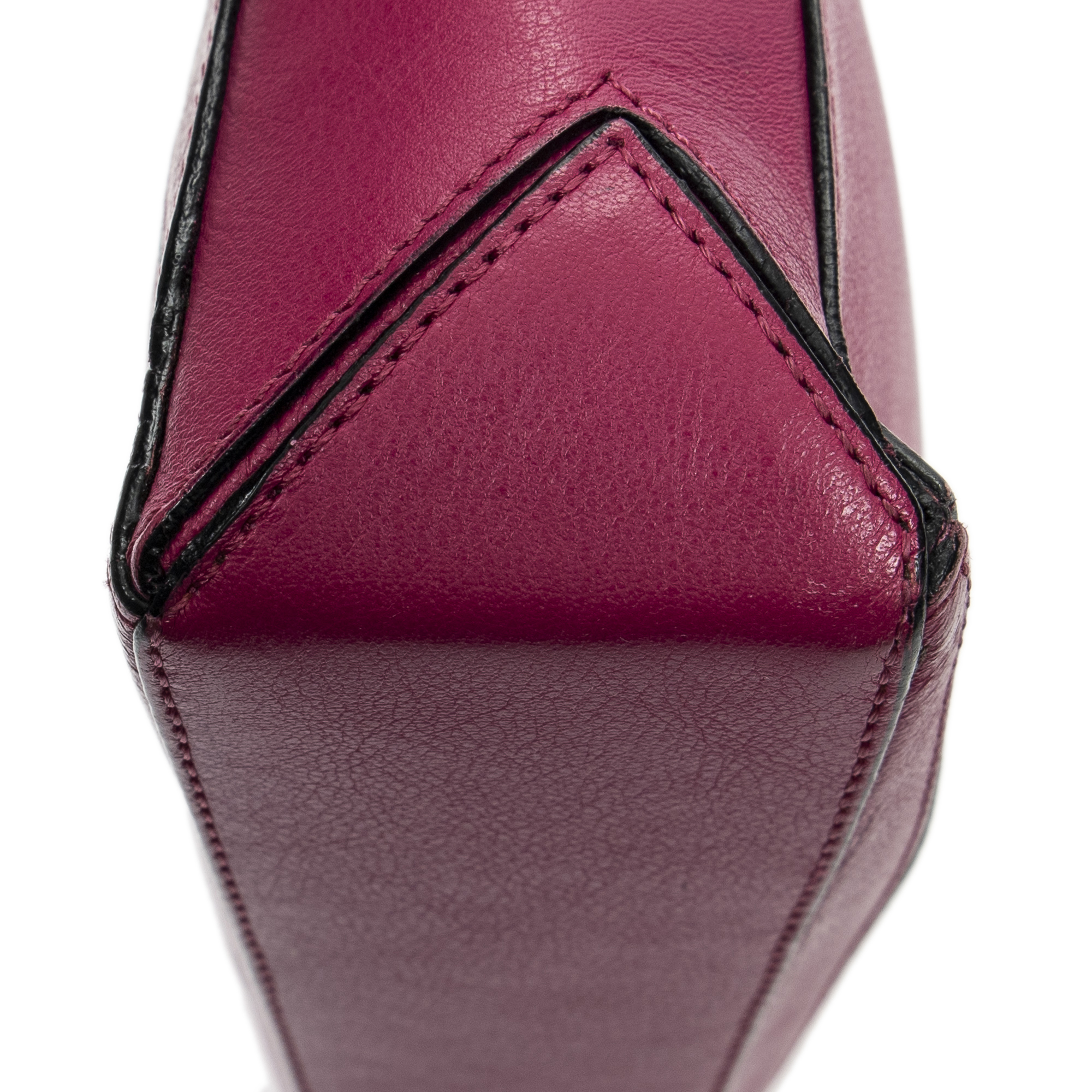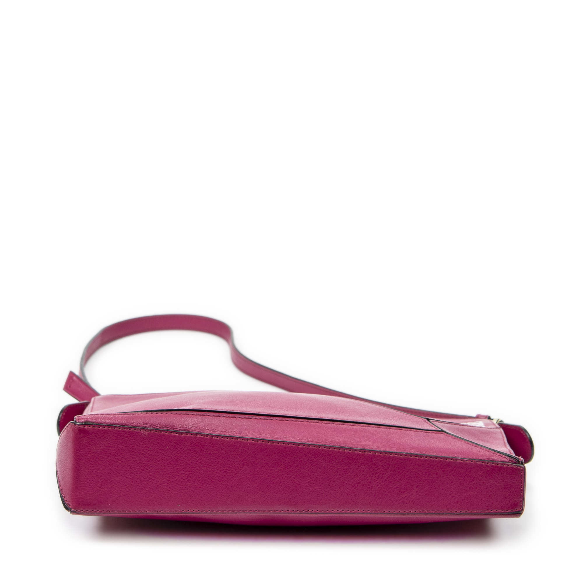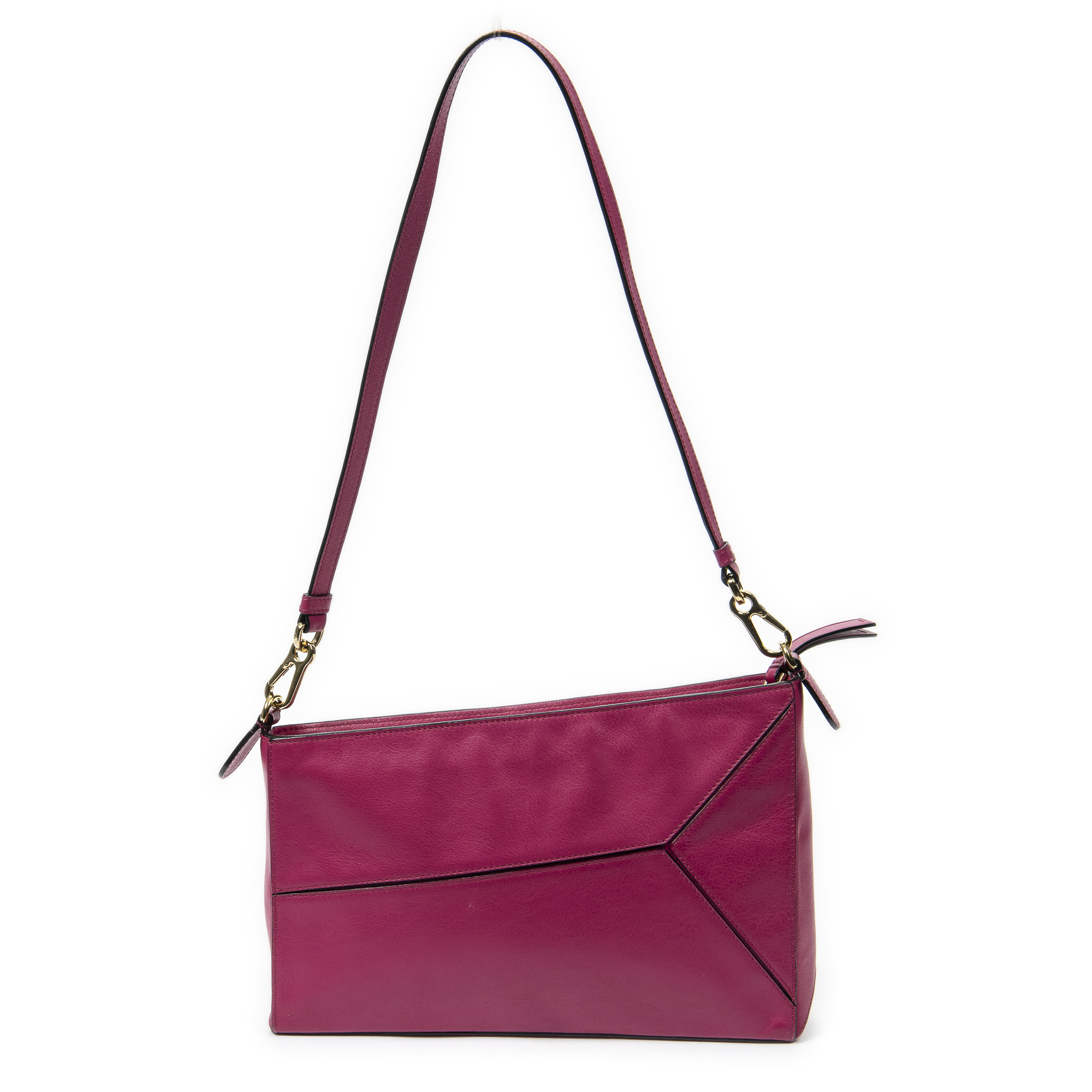 Loewe Shoulder Bag Mini Puzzle Pochette in Fuchsia Pink Calfskin Leather and Gold hardware. The product is in Excellent Condition (A).