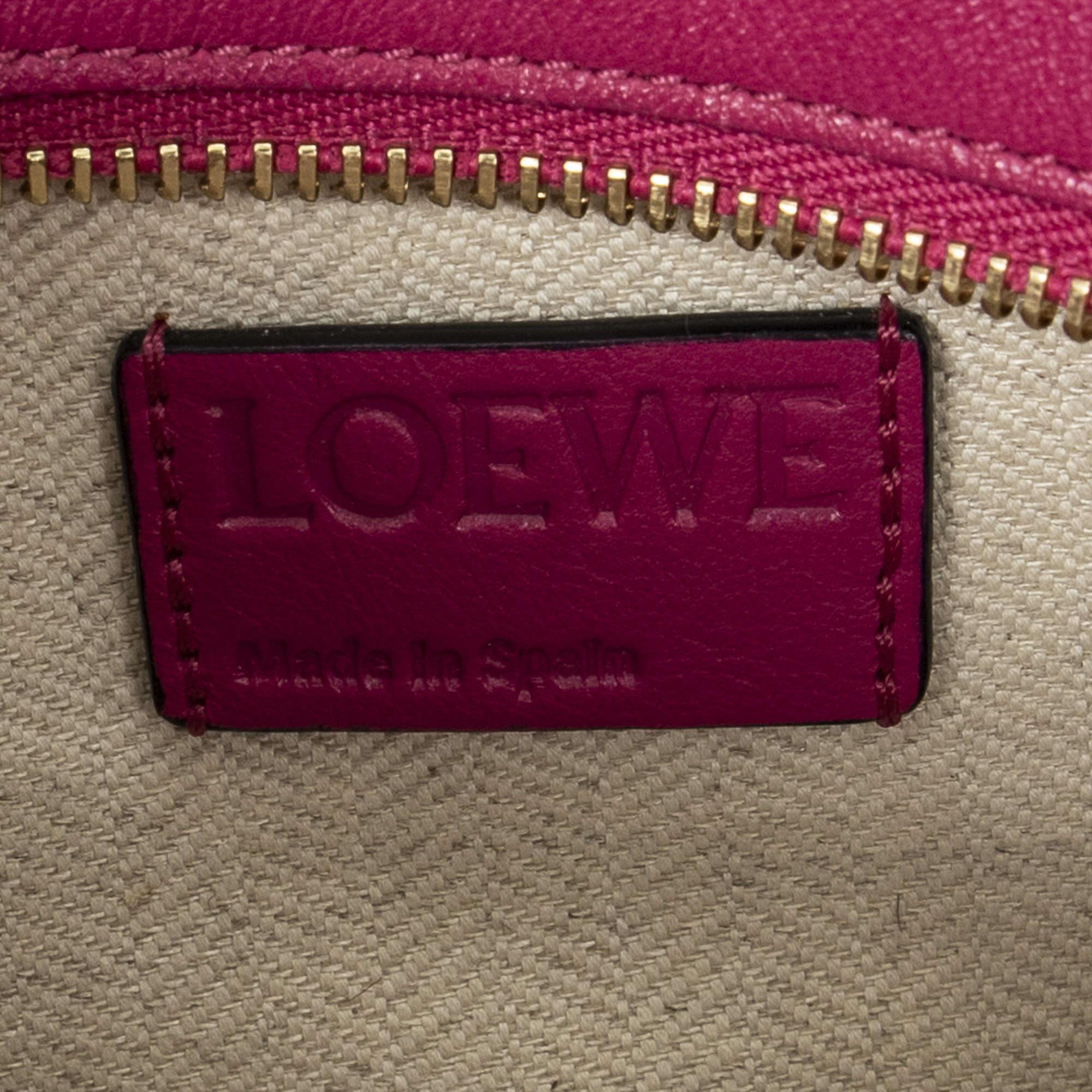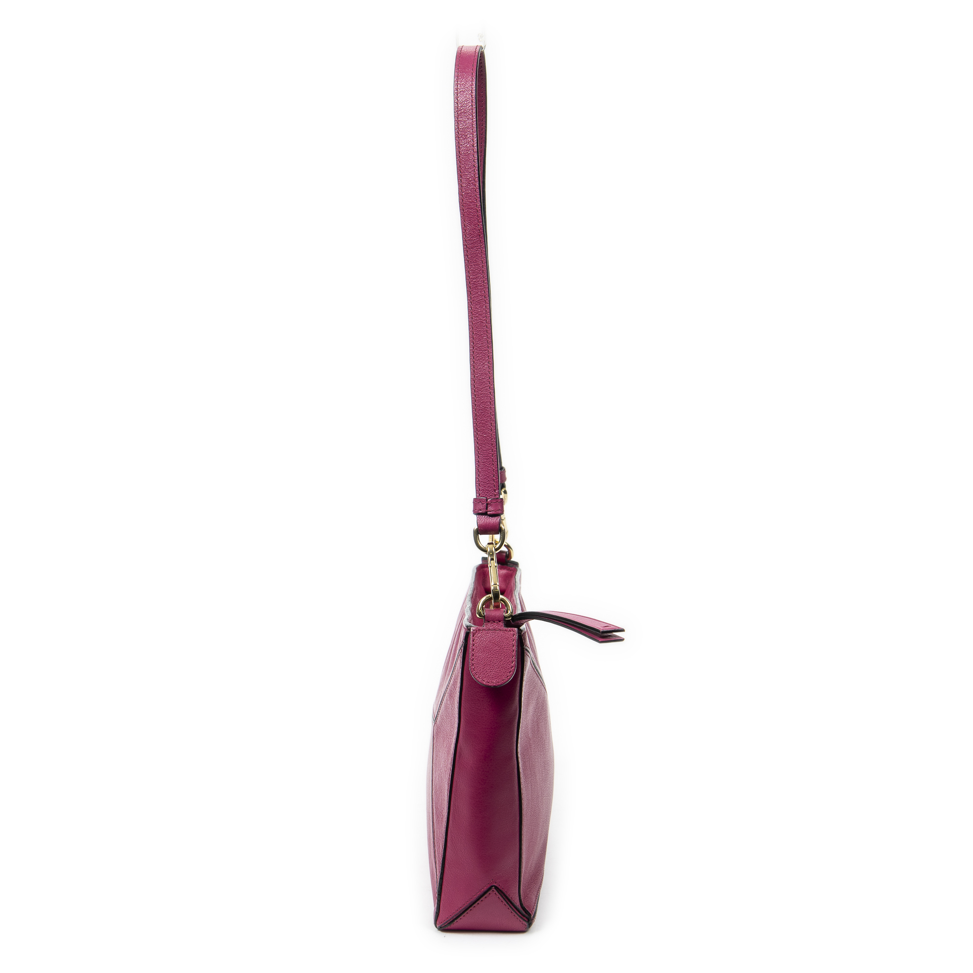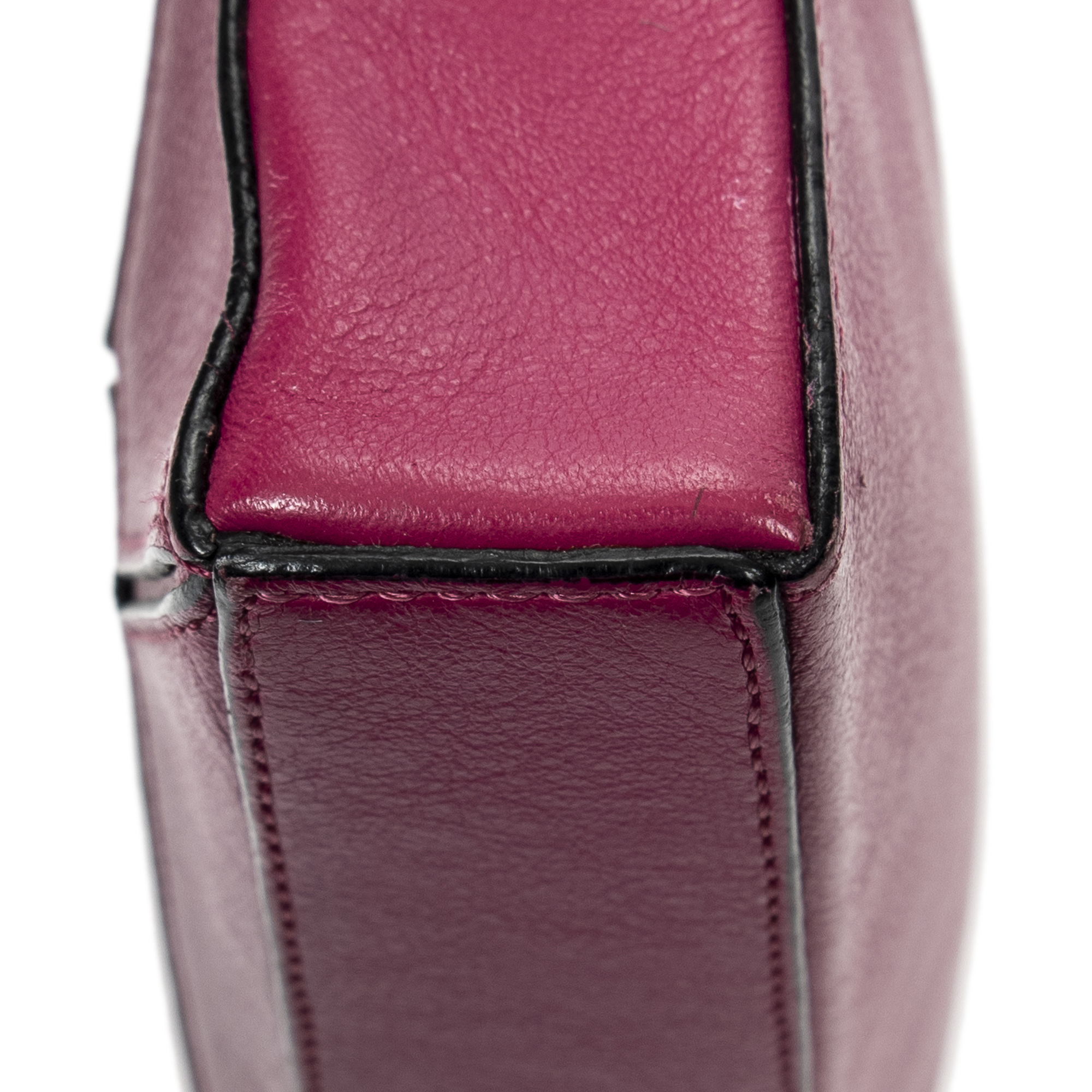 Loewe Shoulder Bag Mini Puzzle Pochette in Fuchsia Pink Calfskin Leather and Gold hardware. The product is in Excellent Condition (A).