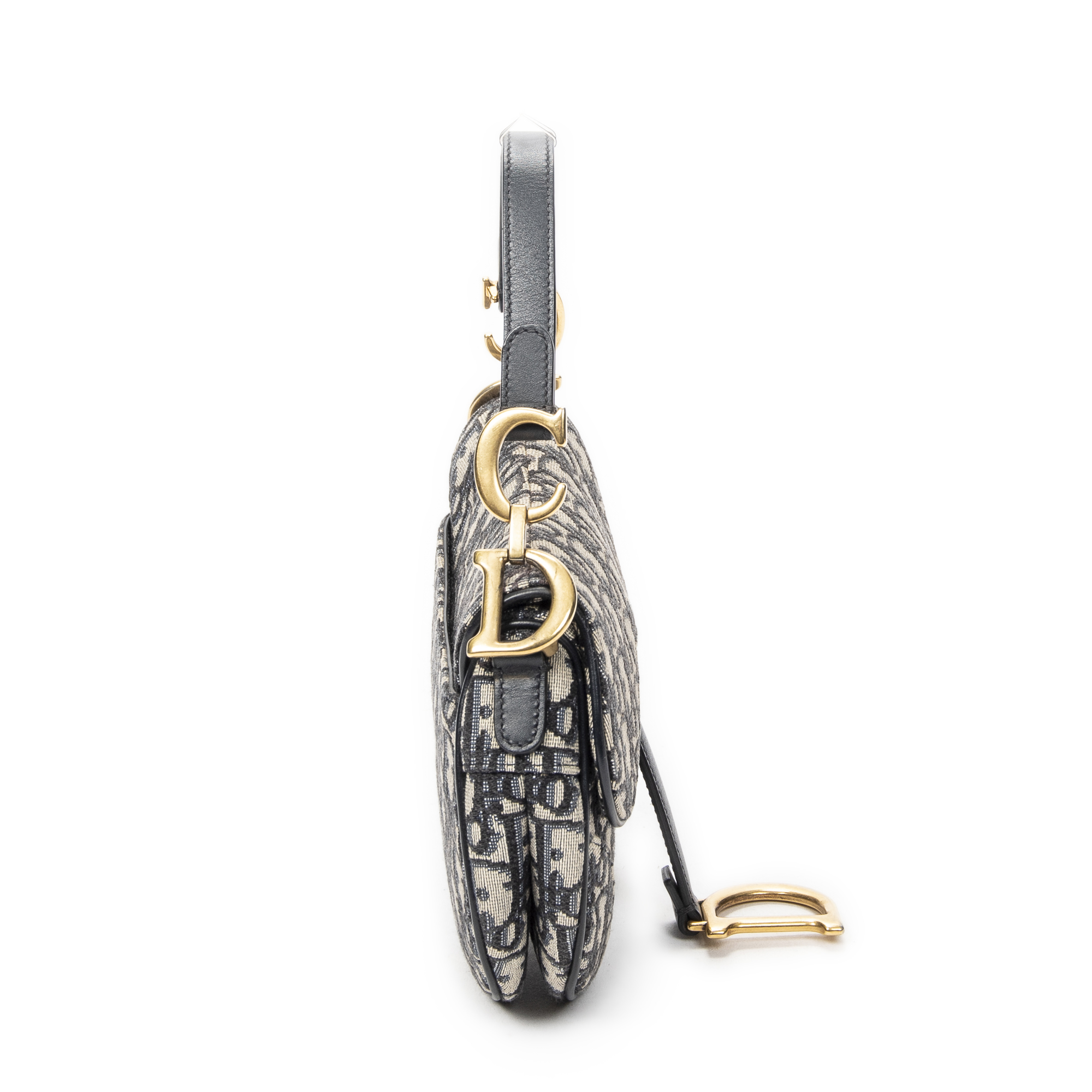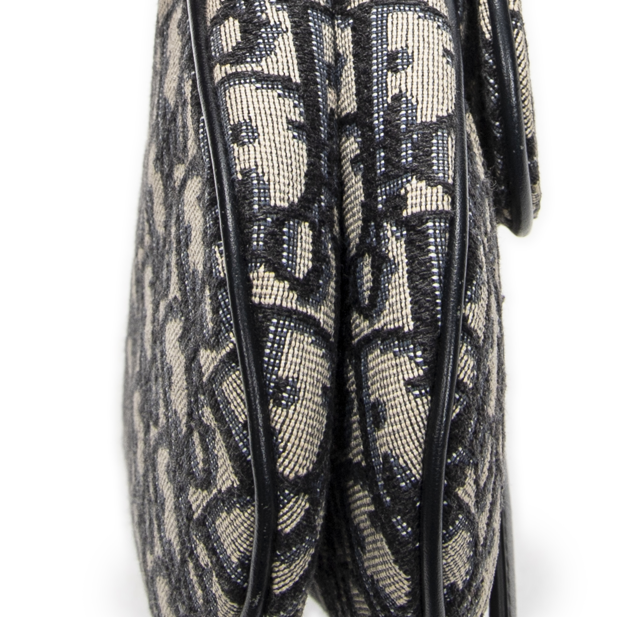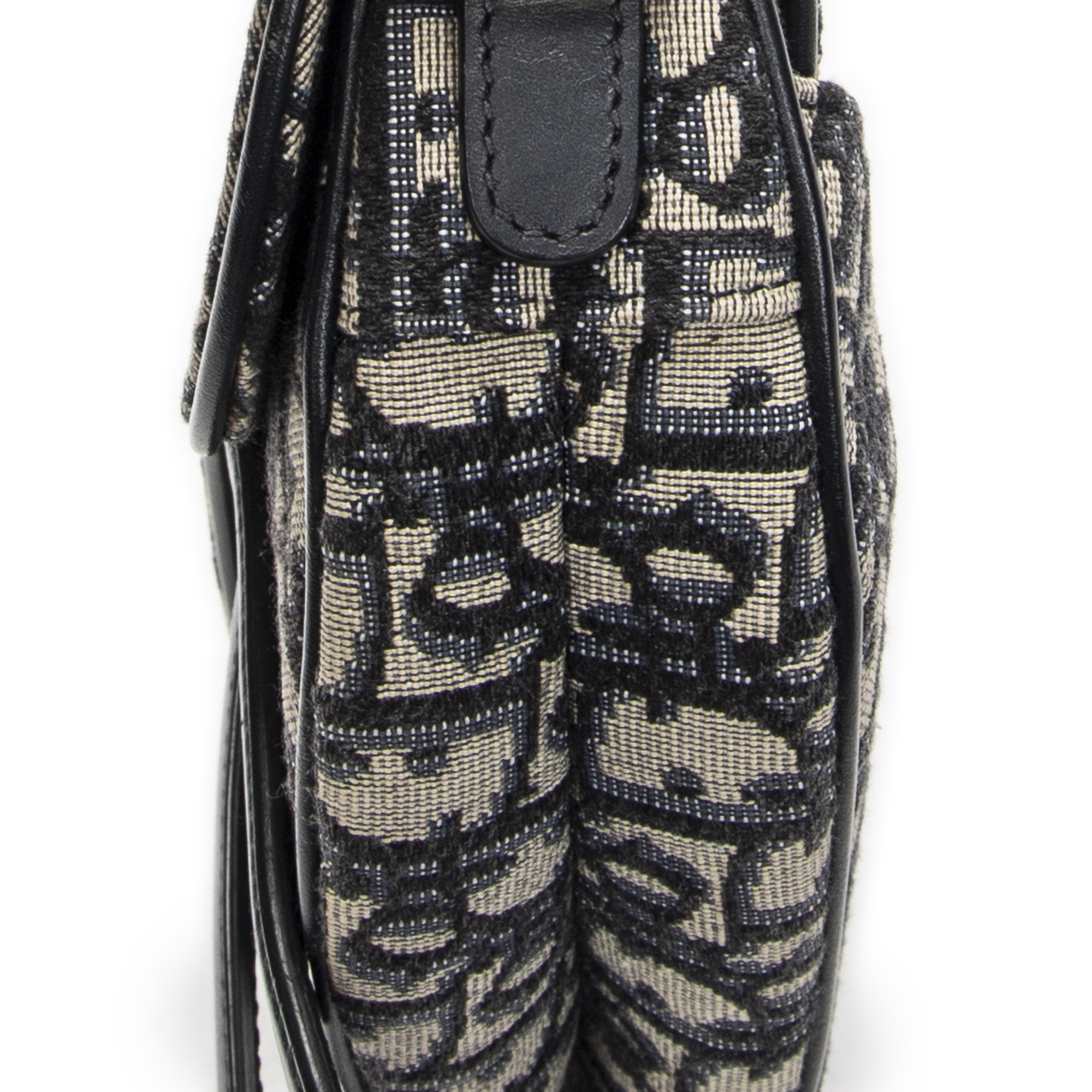 Dior Shoulder Bag Mini Saddle Bag in Navy/Beige Oblique Jacquard Canvas and Gold hardware. The product is in Excellent Condition (A).