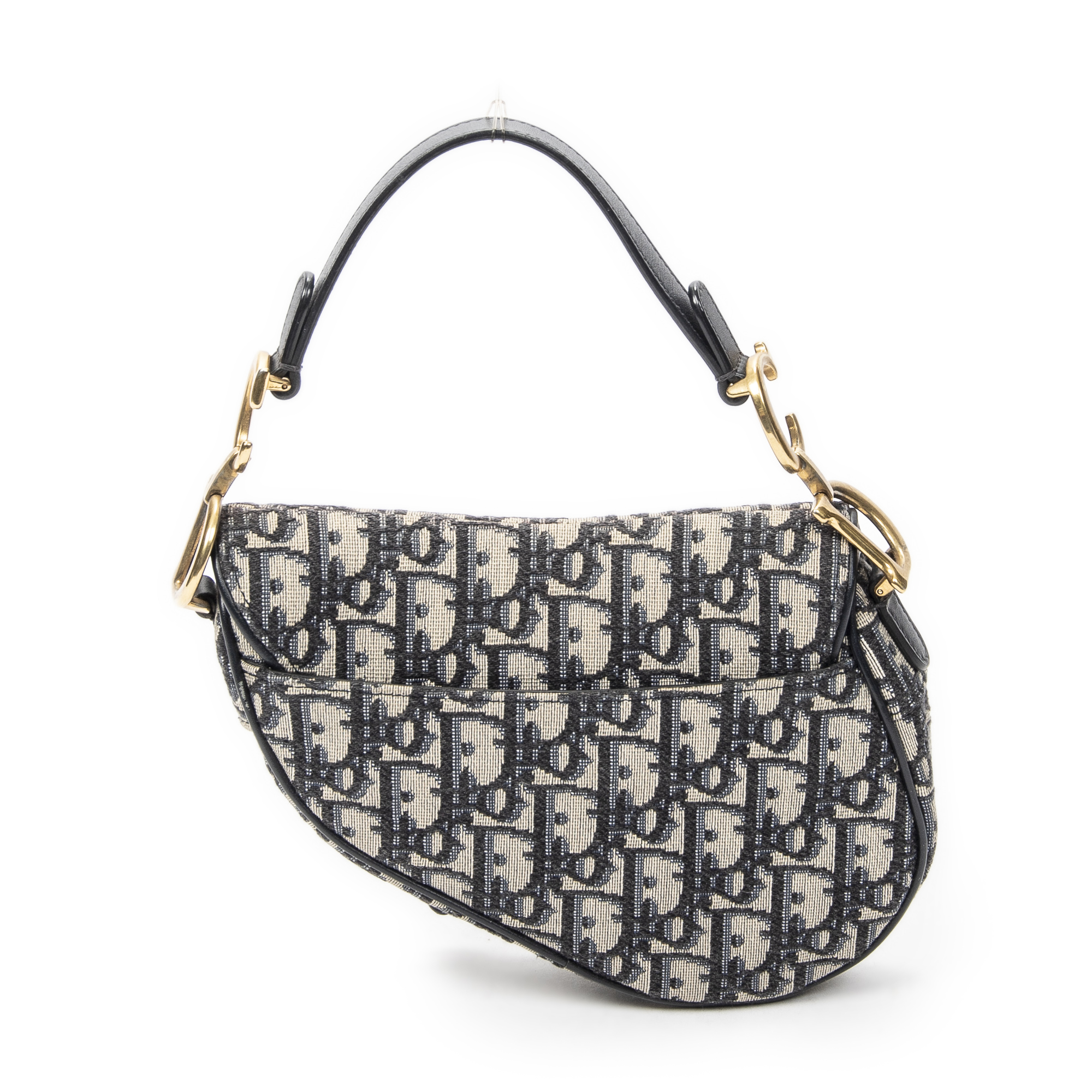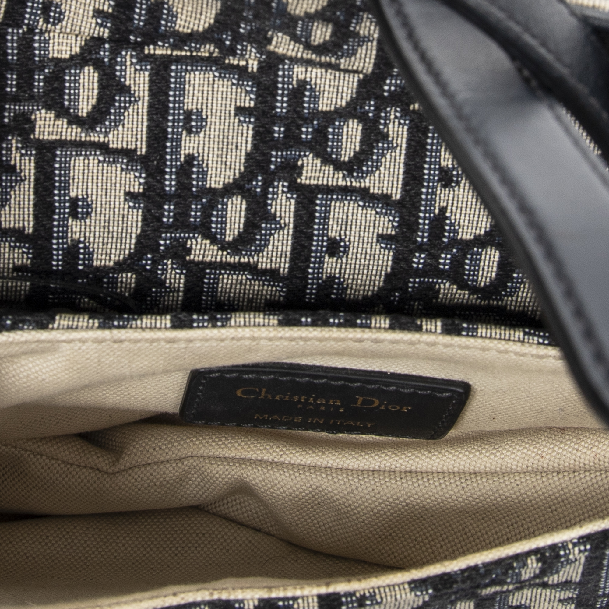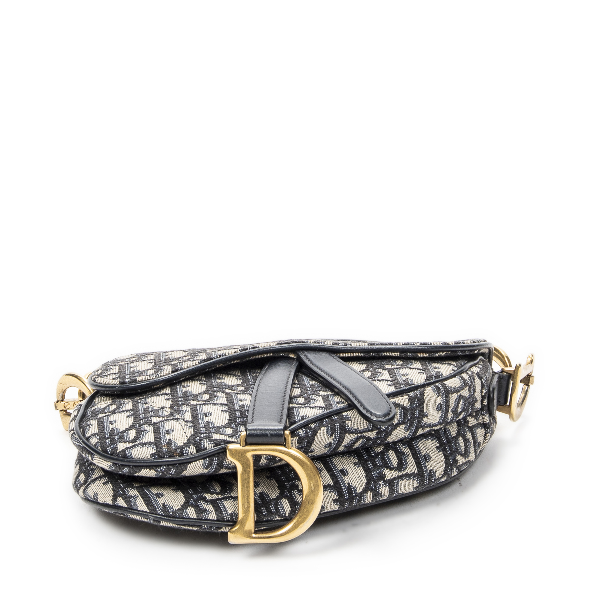 Dior Shoulder Bag Mini Saddle Bag in Navy/Beige Oblique Jacquard Canvas and Gold hardware. The product is in Excellent Condition (A).