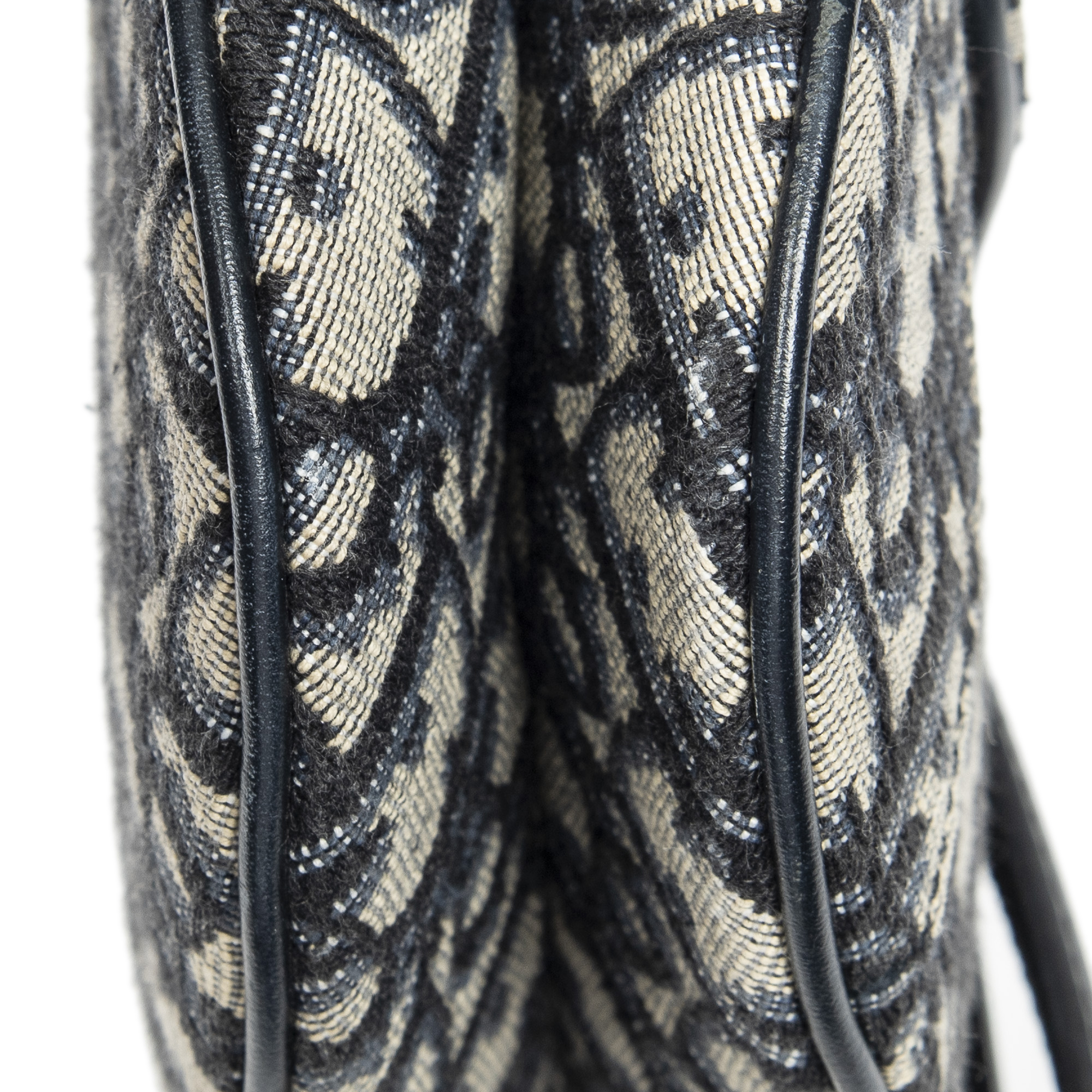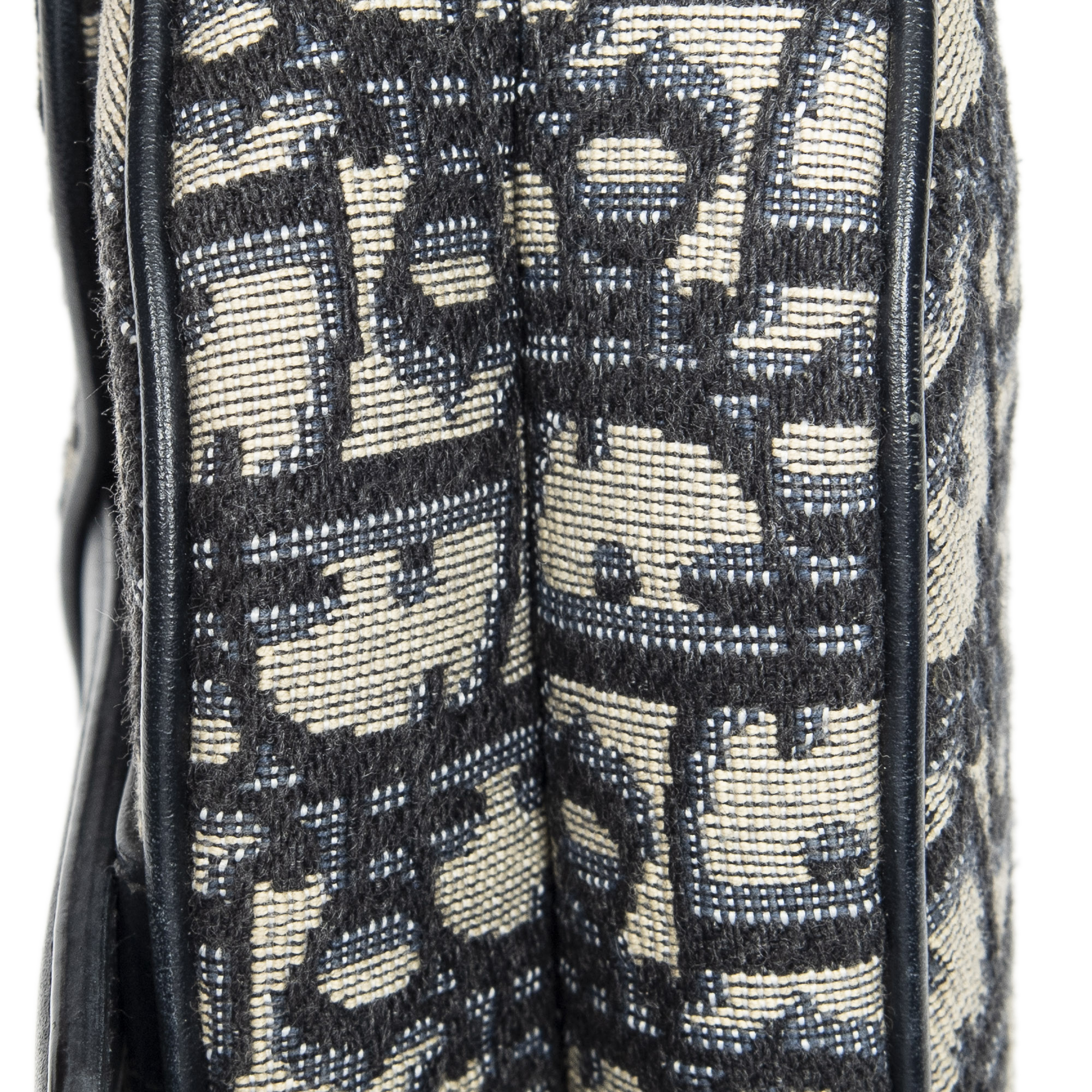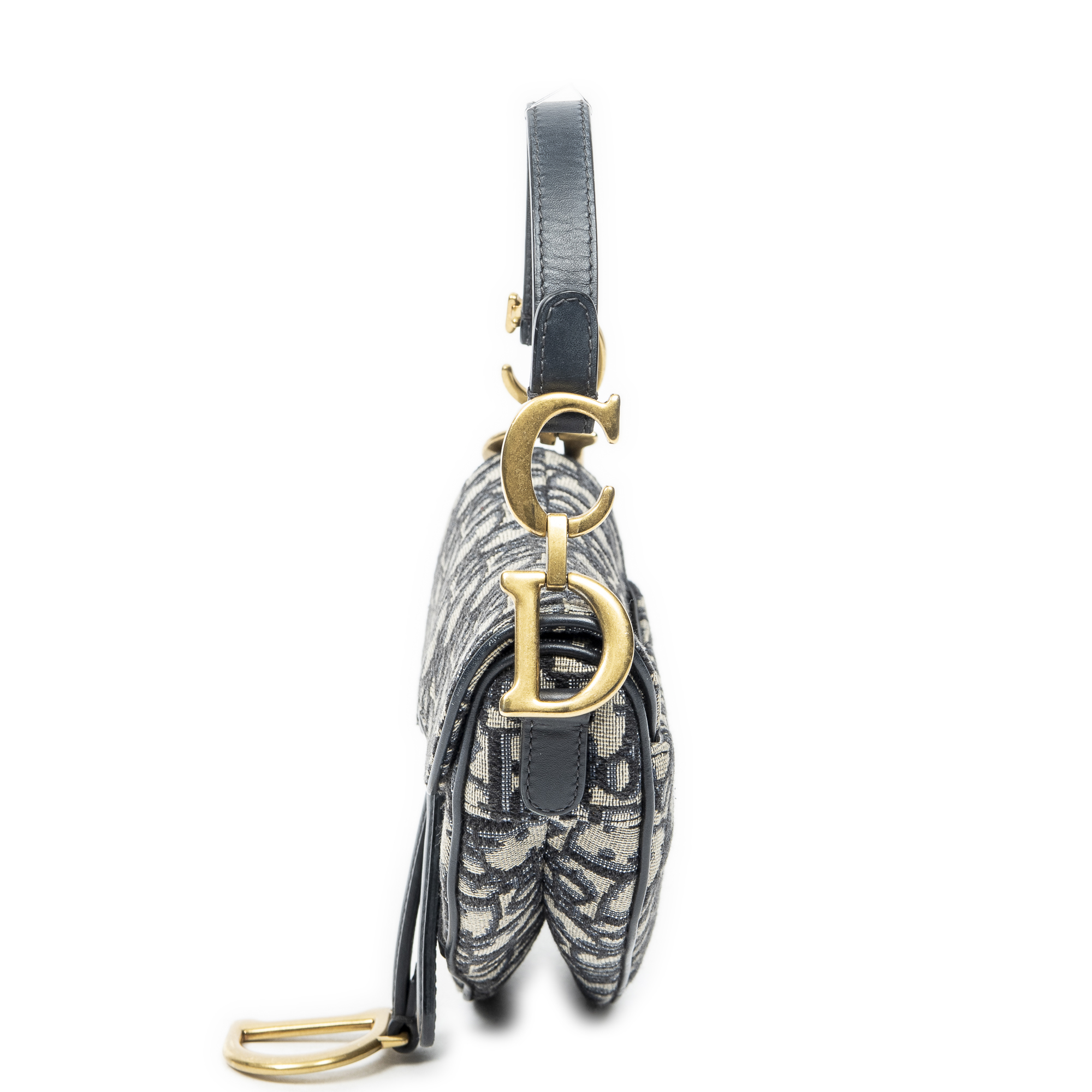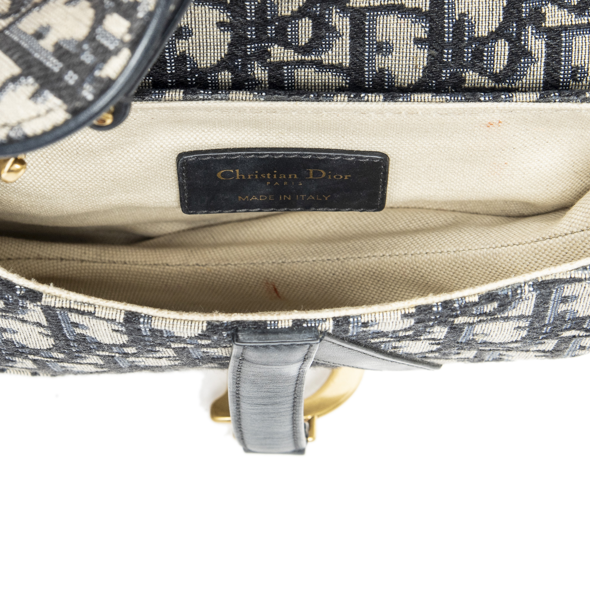 Dior Shoulder Bag Mini Saddle Bag in Navy/Beige Oblique Jacquard Canvas and Gold hardware. The product is in Very Good Condition (AB).