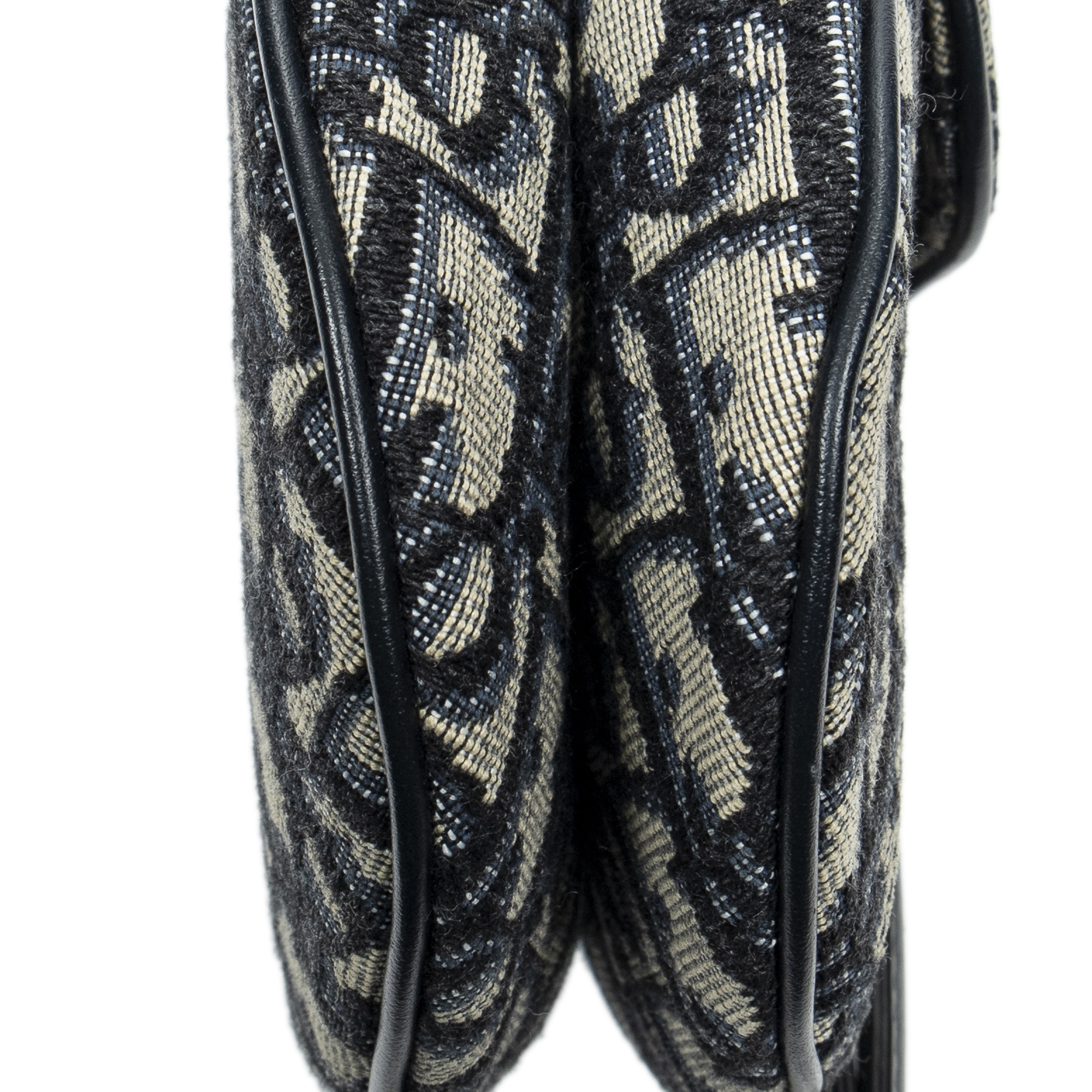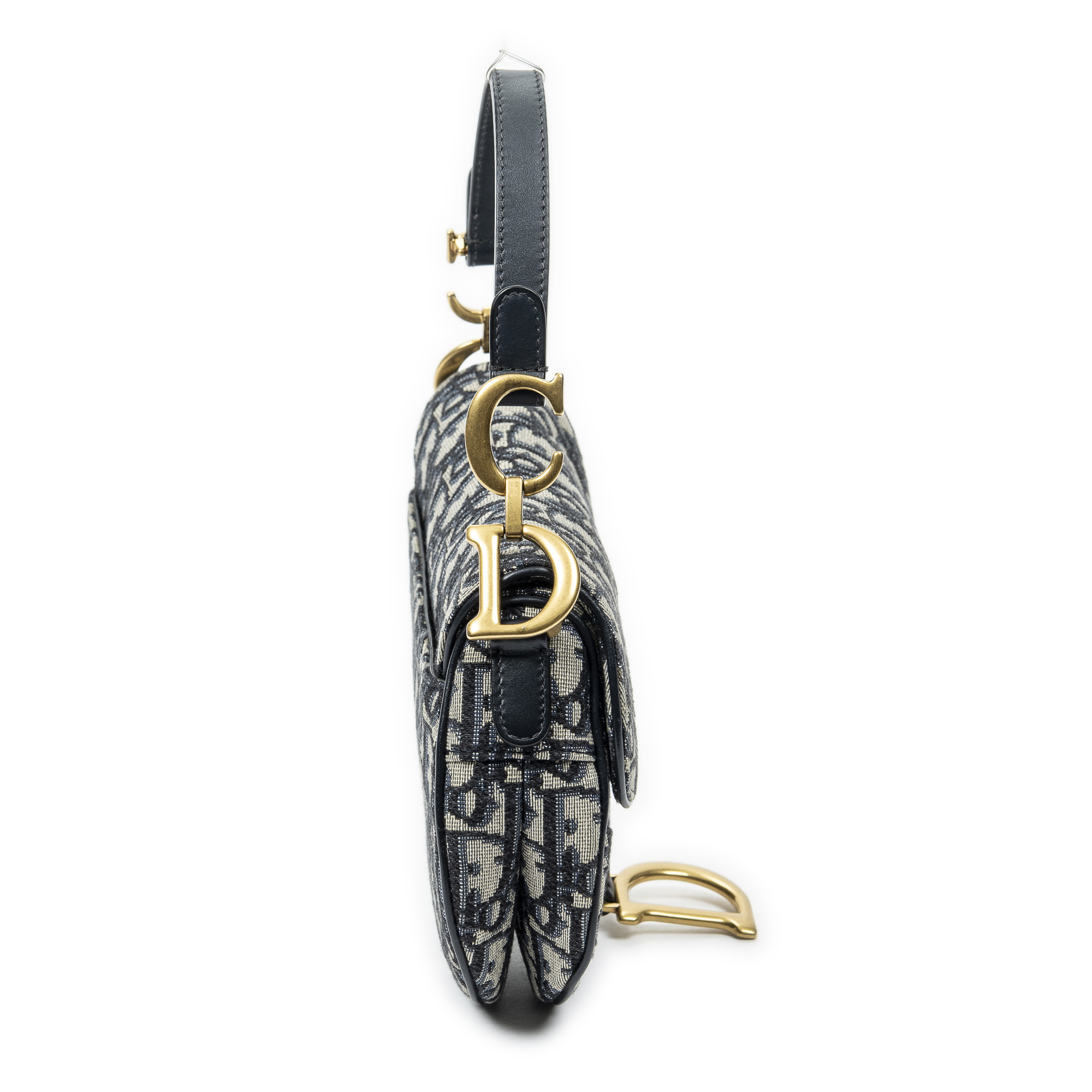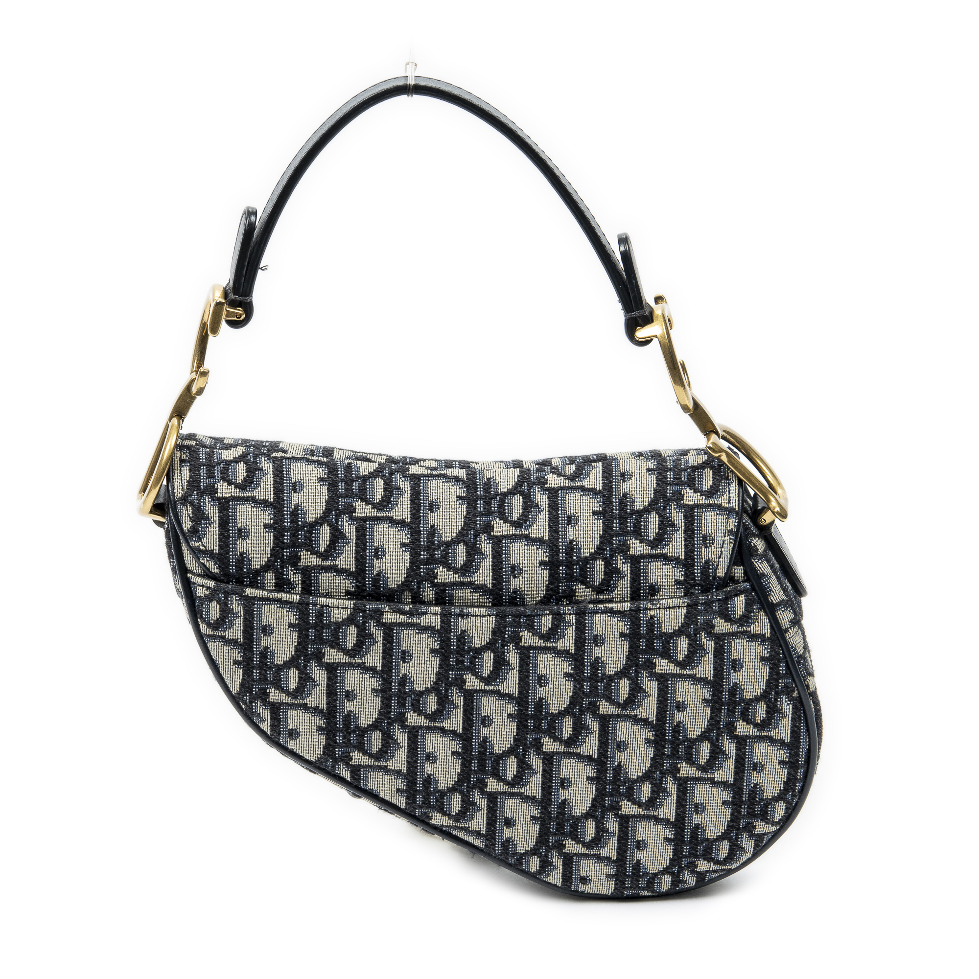 Dior Shoulder Bag Mini Saddle Bag in Navy/Beige Oblique Jacquard Canvas and Gold hardware. The product is in Excellent Condition (A).