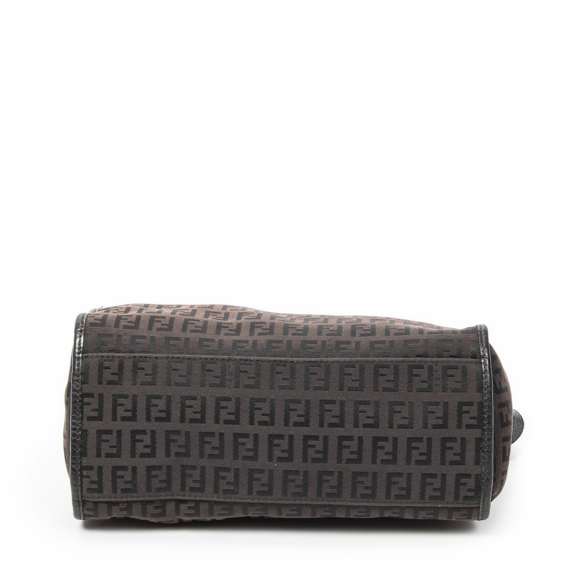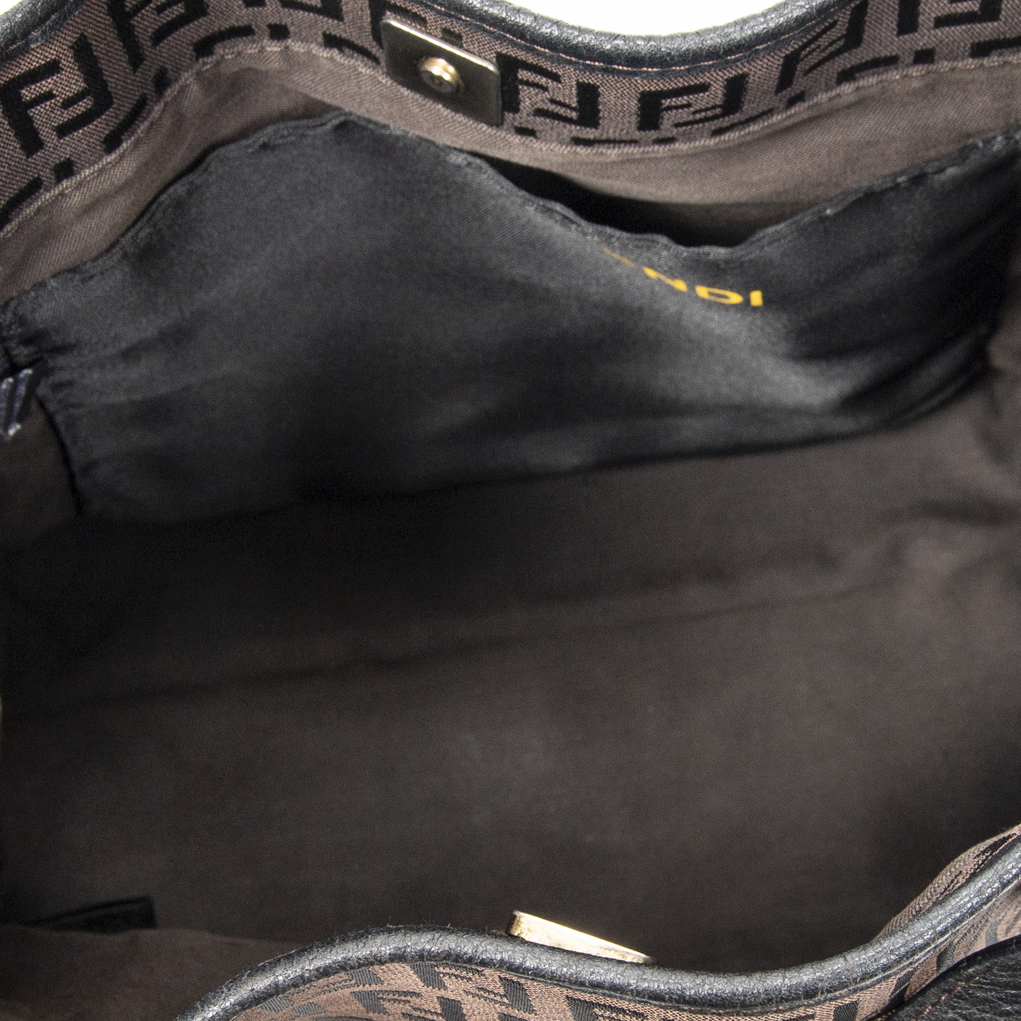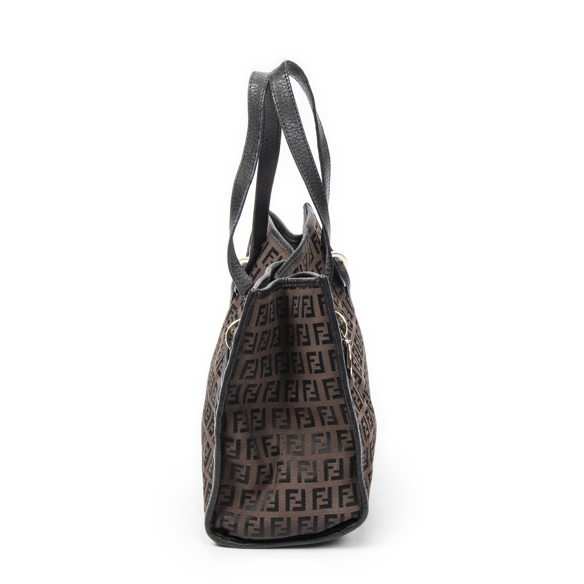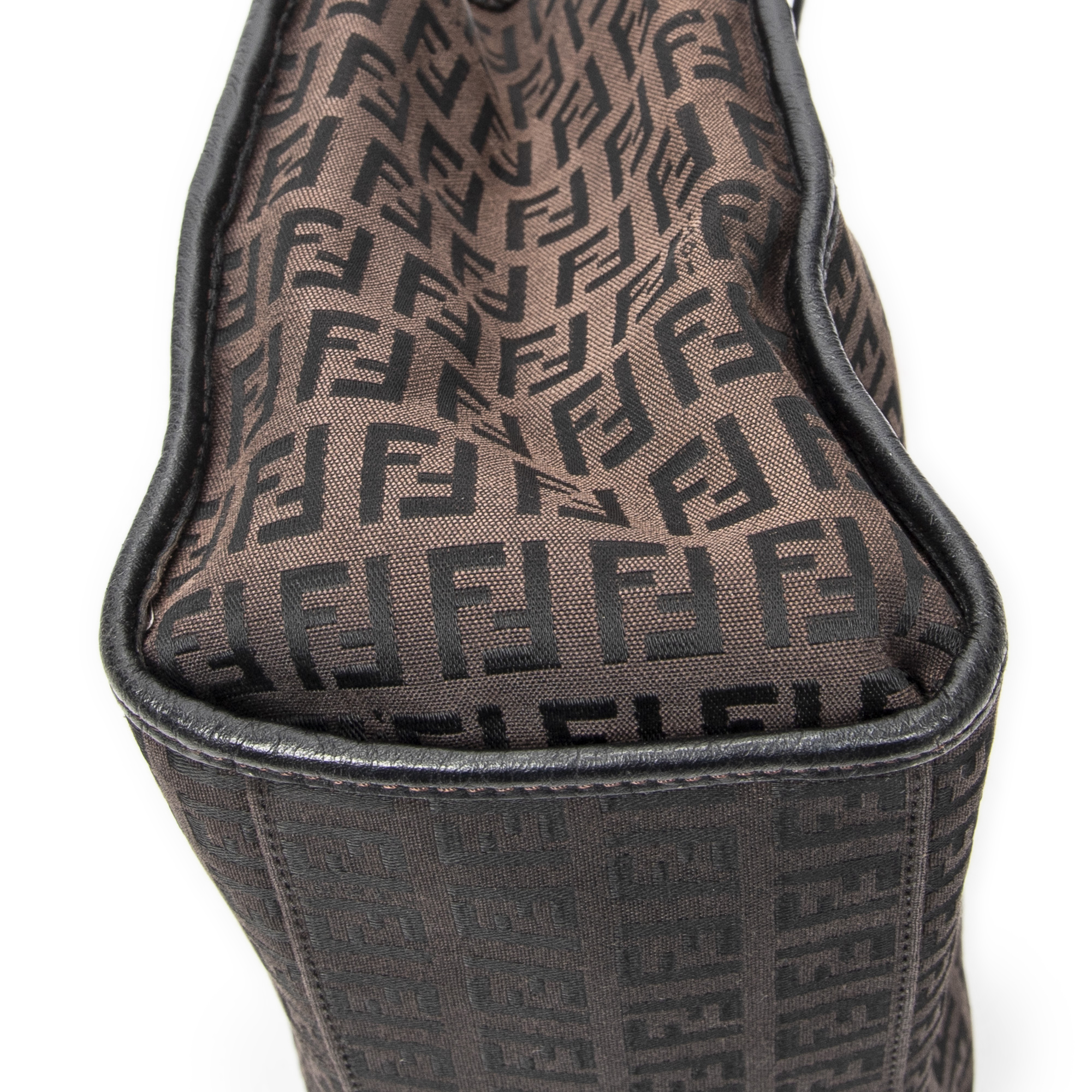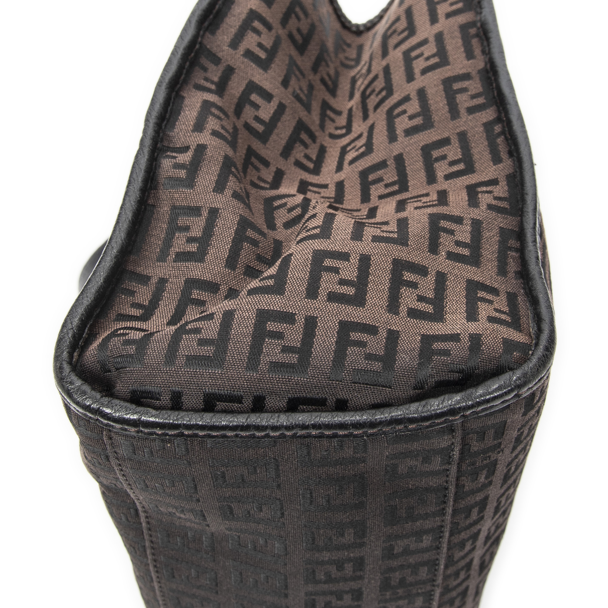 Fendi Shoulder Bag Mini Shopping Tote in Brown/Black Zucchino Canvas and Gold hardware. The product is in Excellent Condition (A).