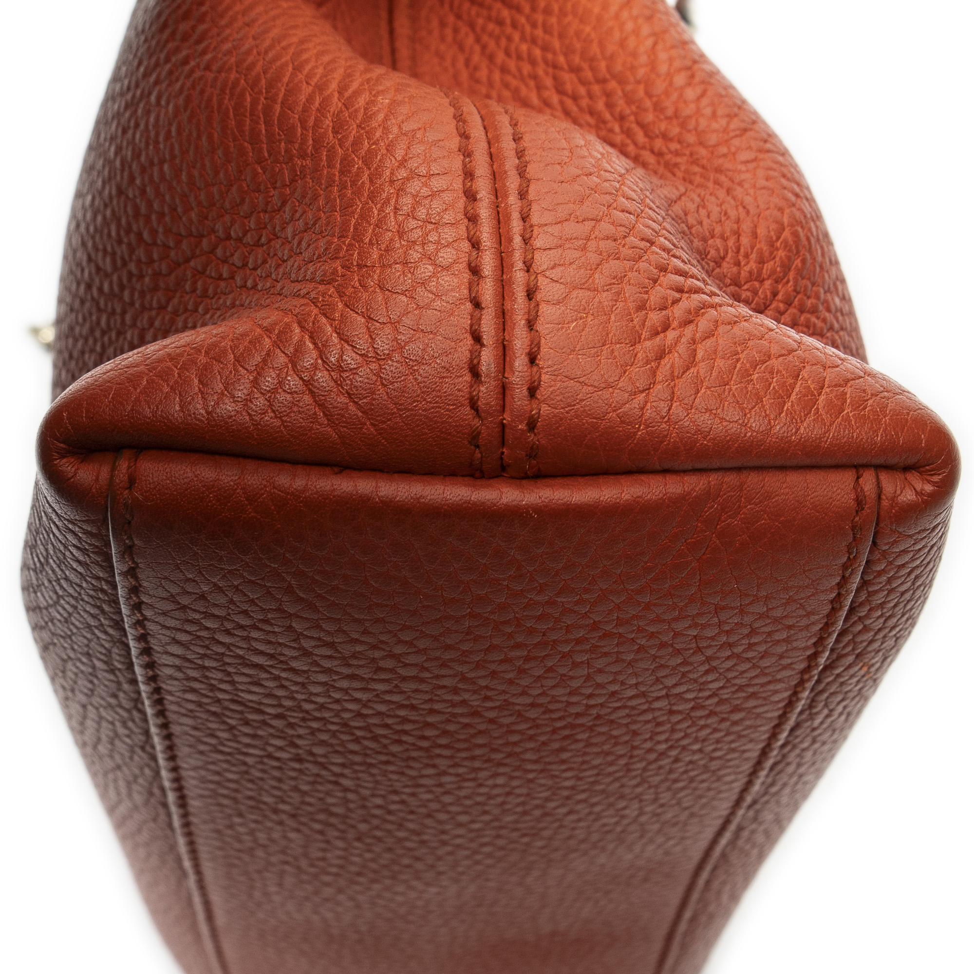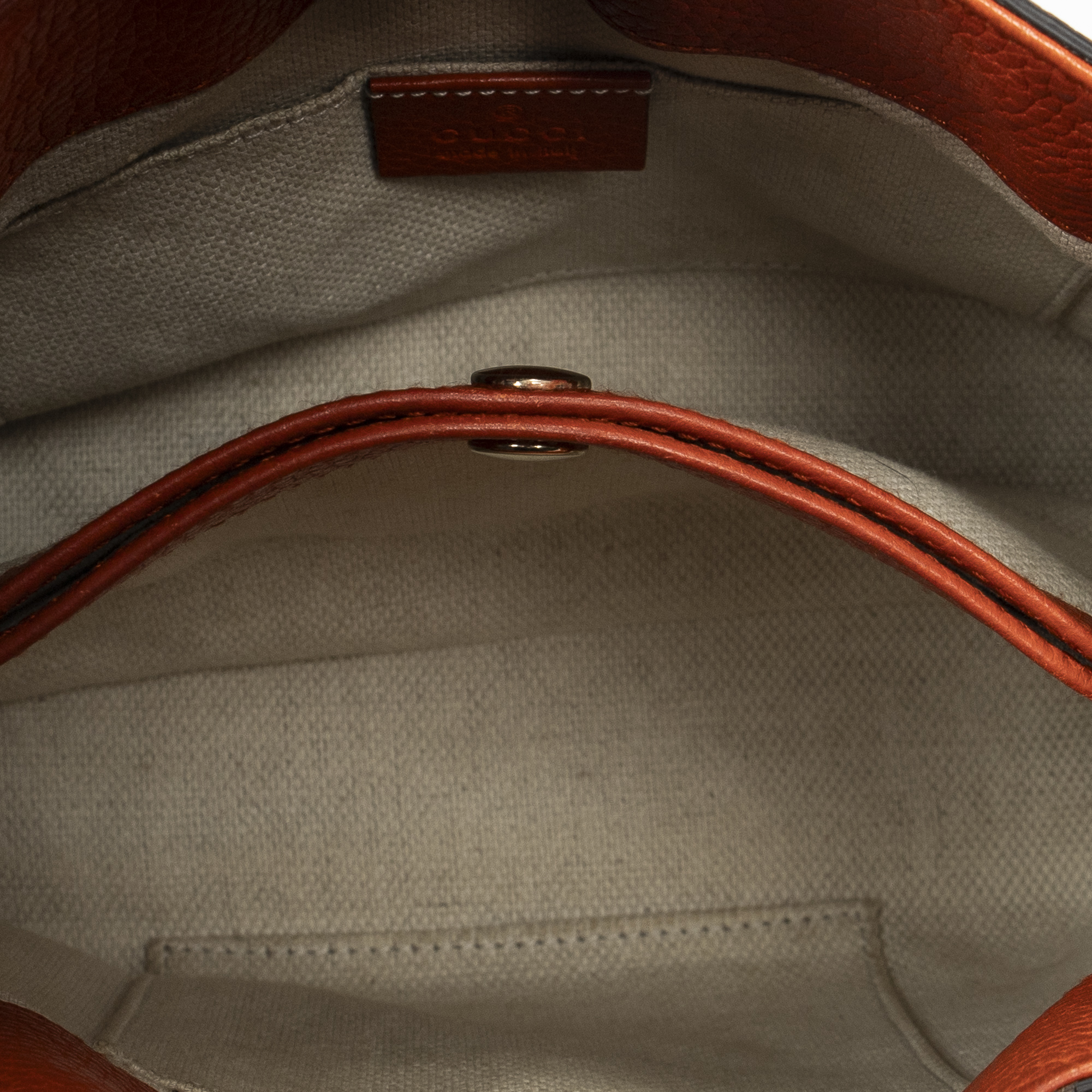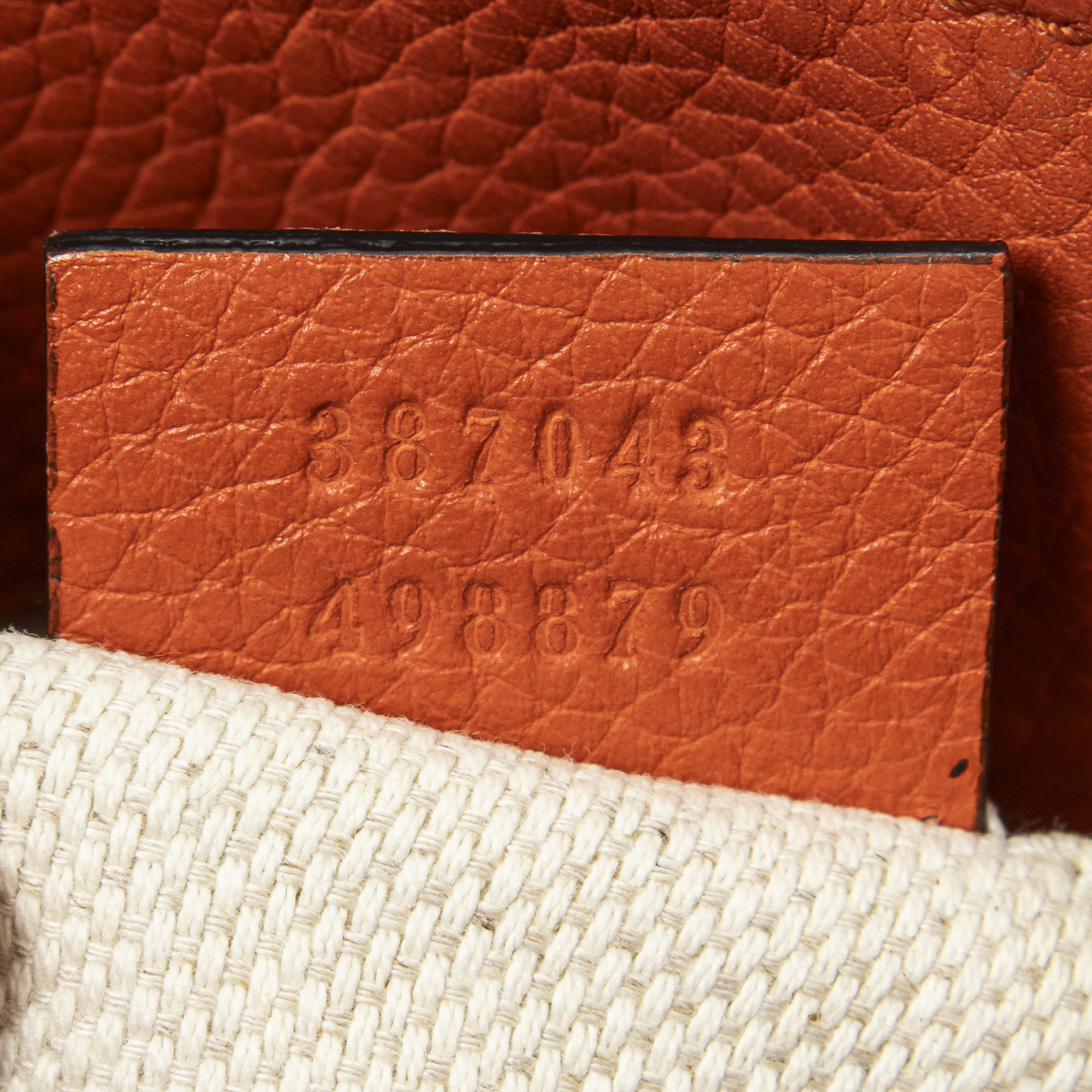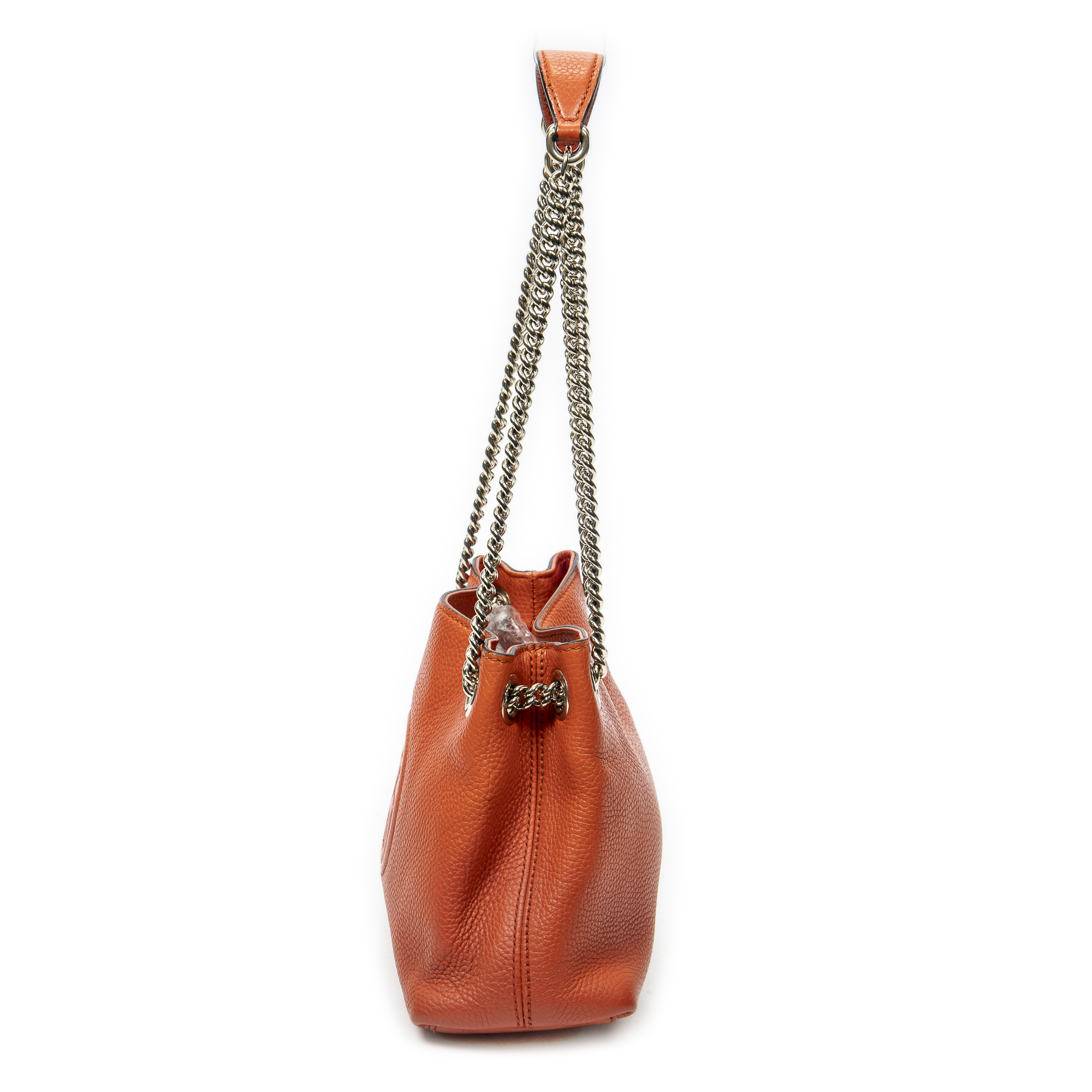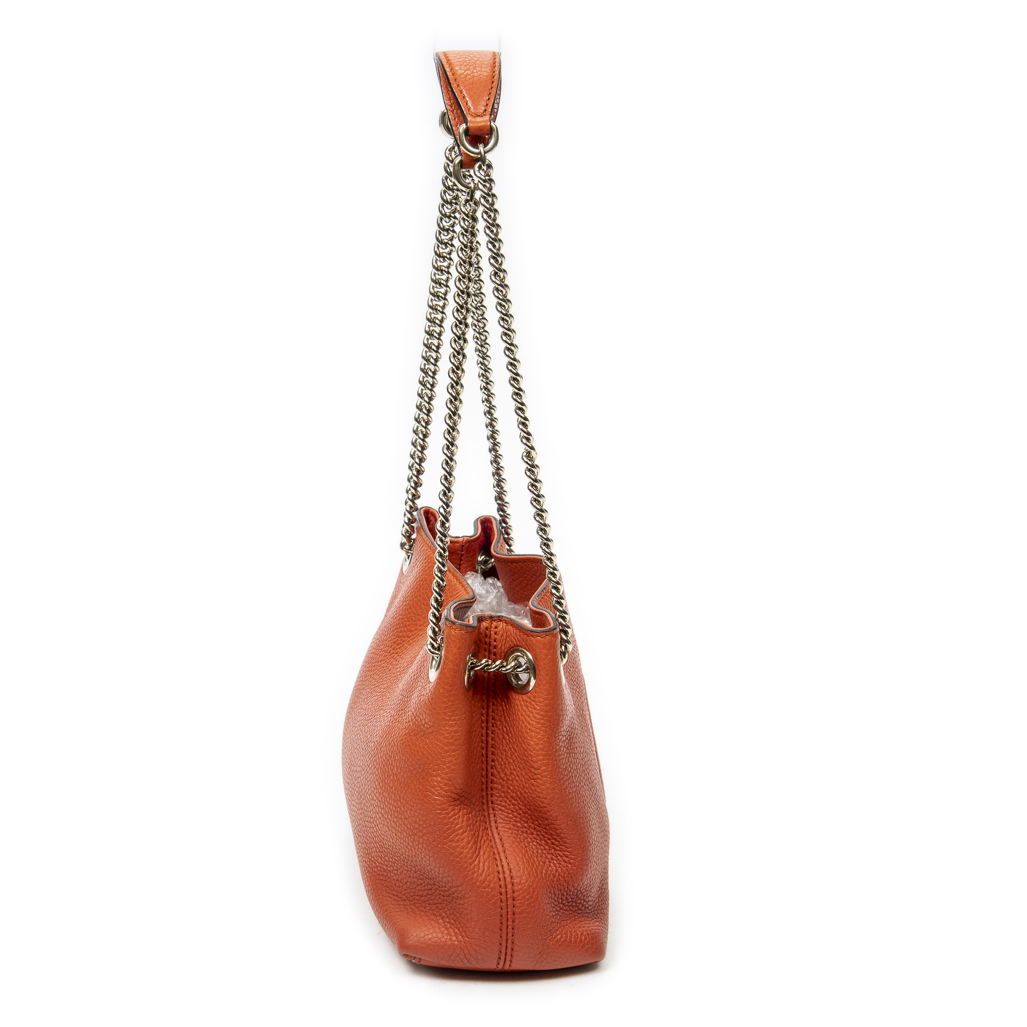 Gucci Shoulder Bag Mini Soho Chain Tote in Orange Grained Calfskin Leather and Gold hardware. The product is in Perfect Condition (AA).