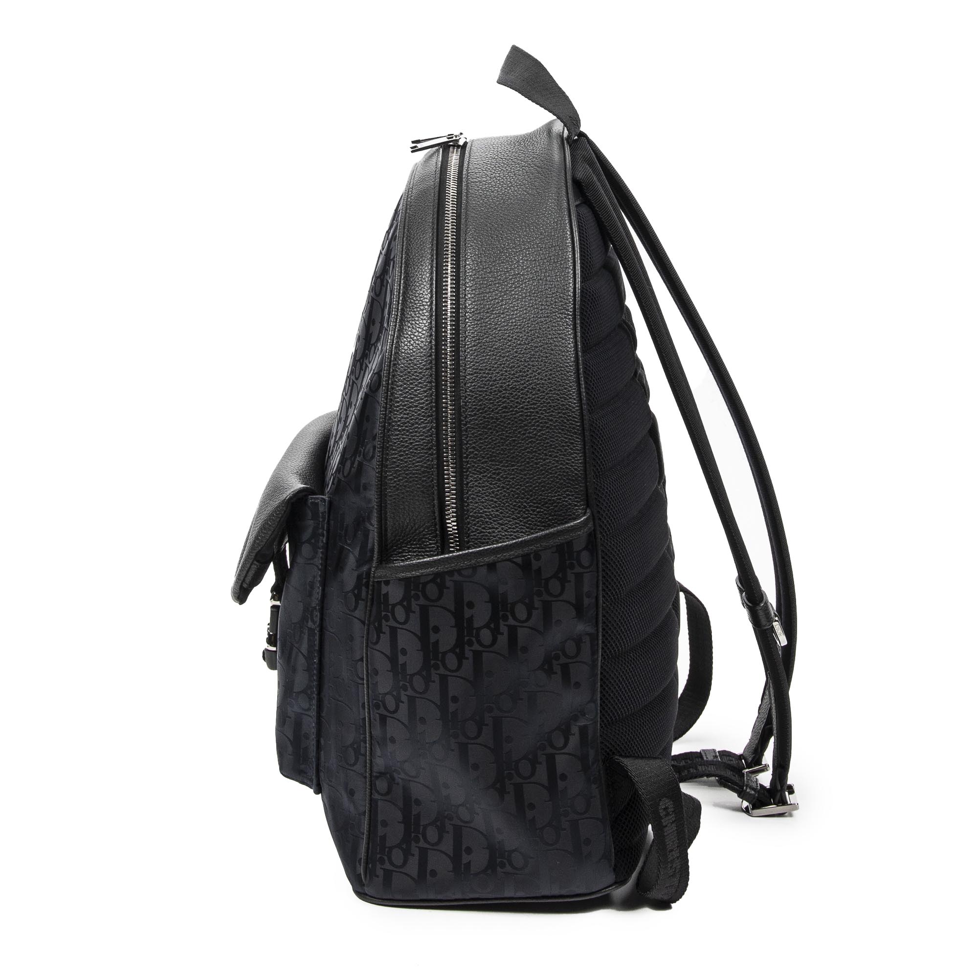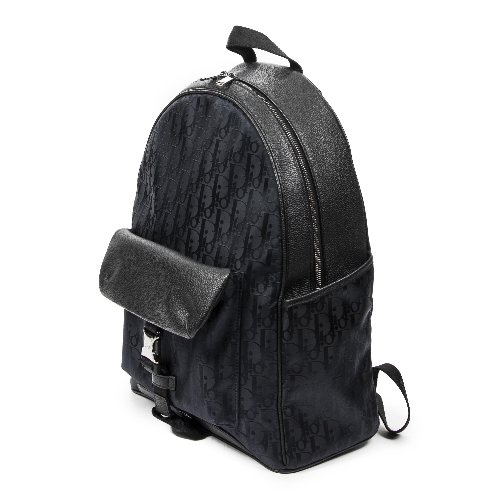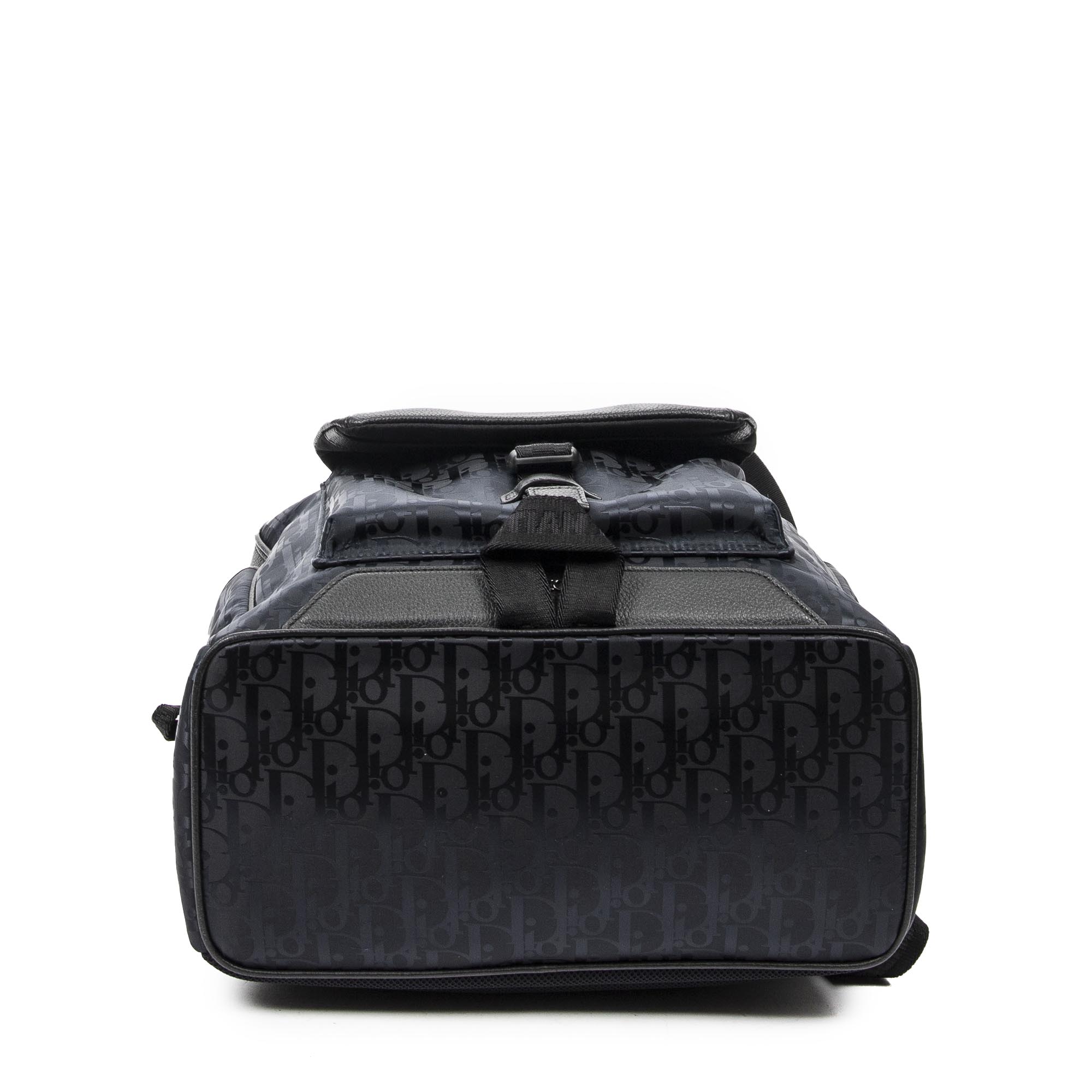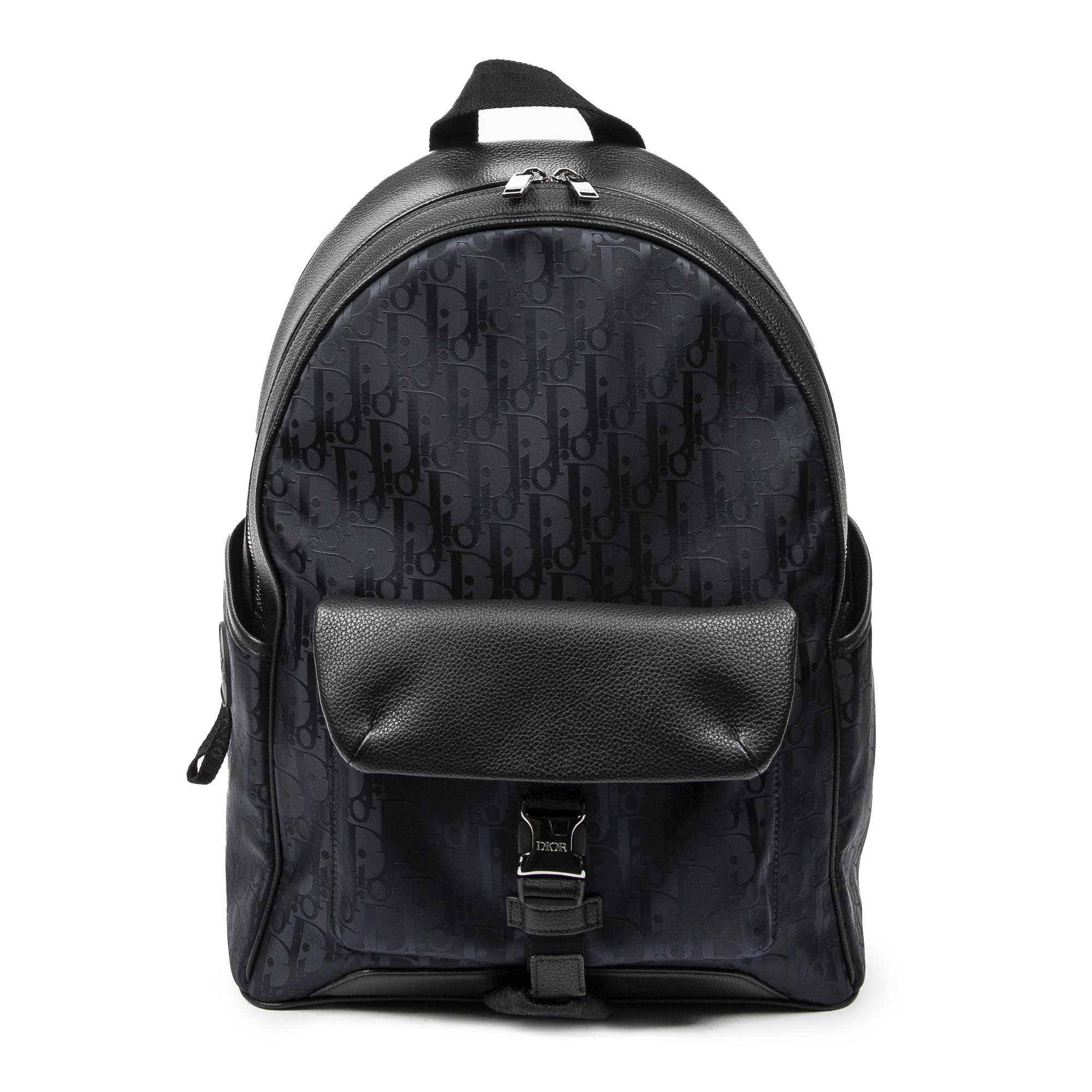 Dior Shoulder Bag Mirage Explorer Backpack in Black/Dark Blue Oblique Pattern/Grained Leather and Silver hardware. The product is Like New (N).