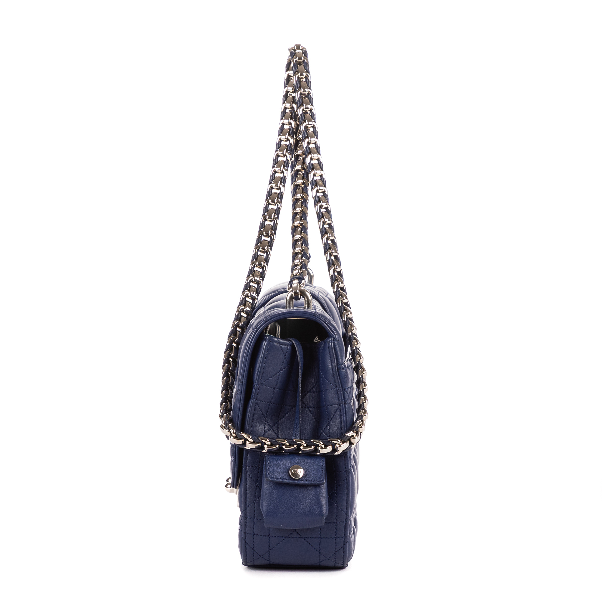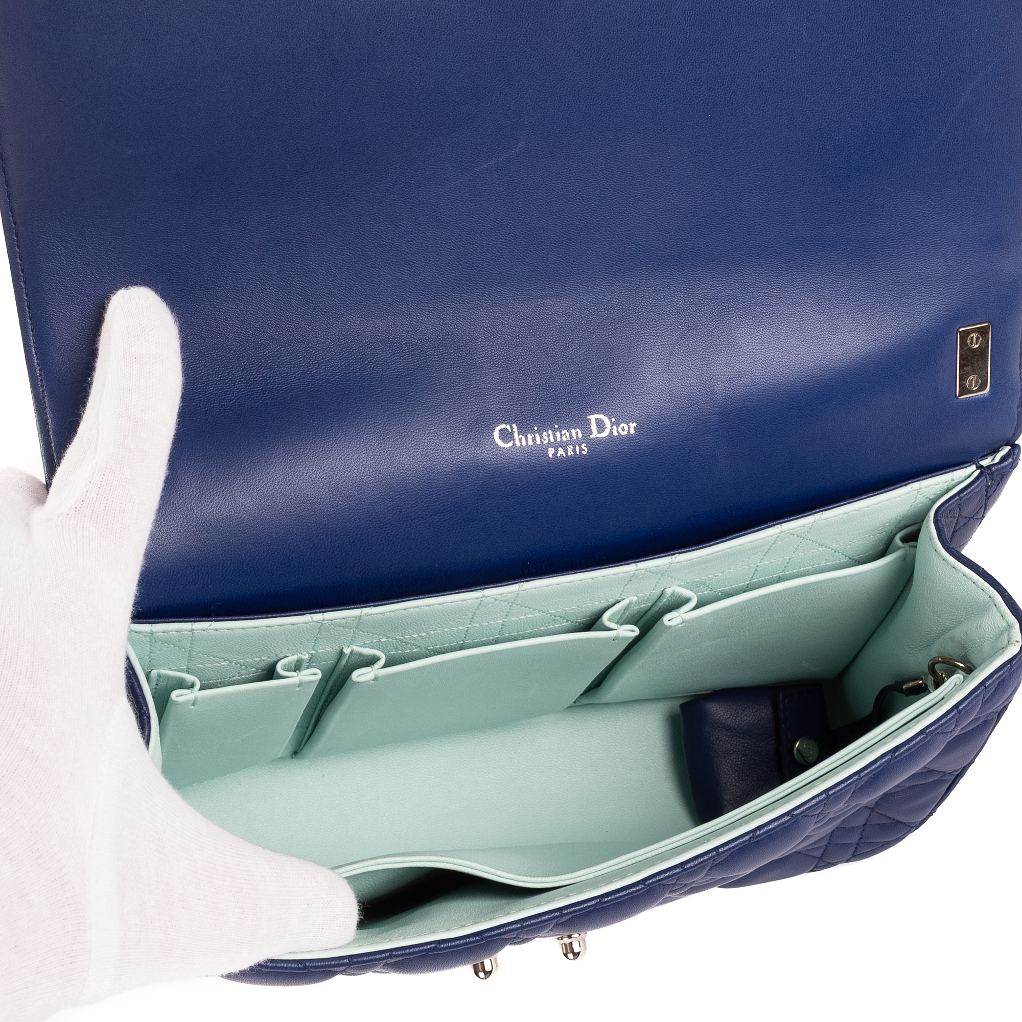 Christian Dior Shoulder Bag Miss Dior Medium in Light Blue/Navy Cannage Leather and Sliver hardware. The product is in Perfect Condition (AA).