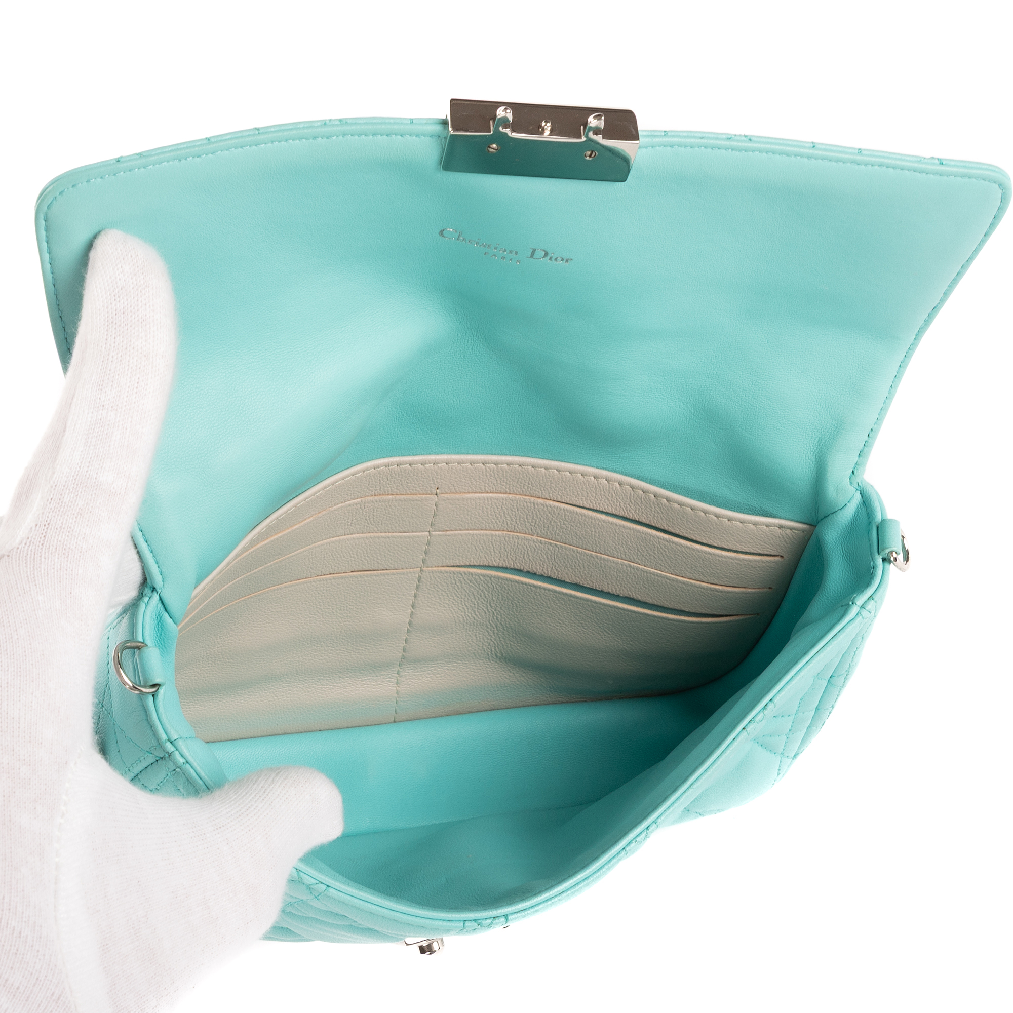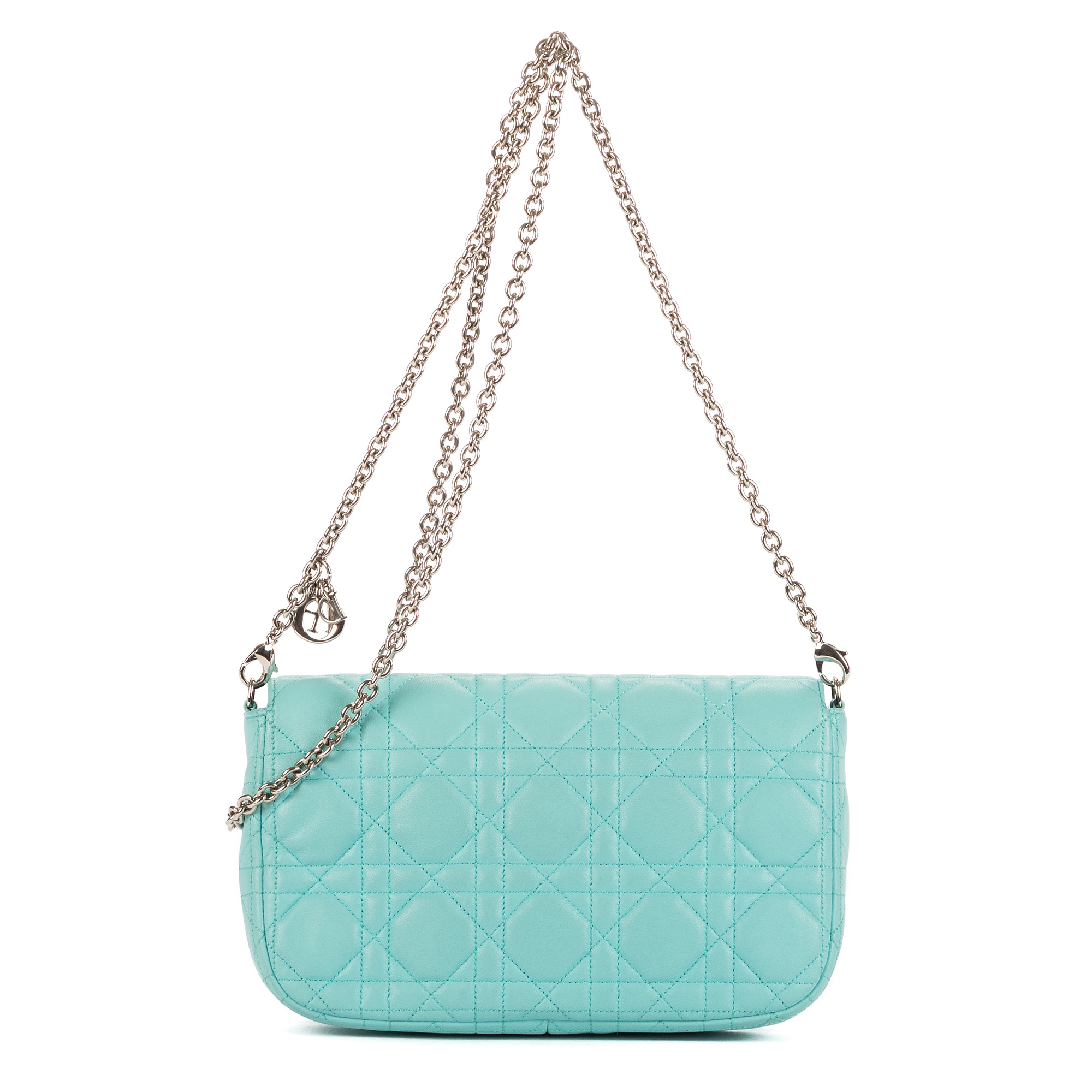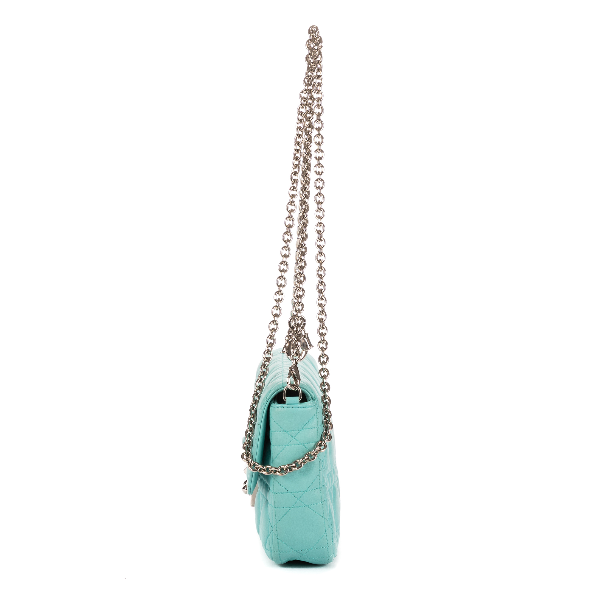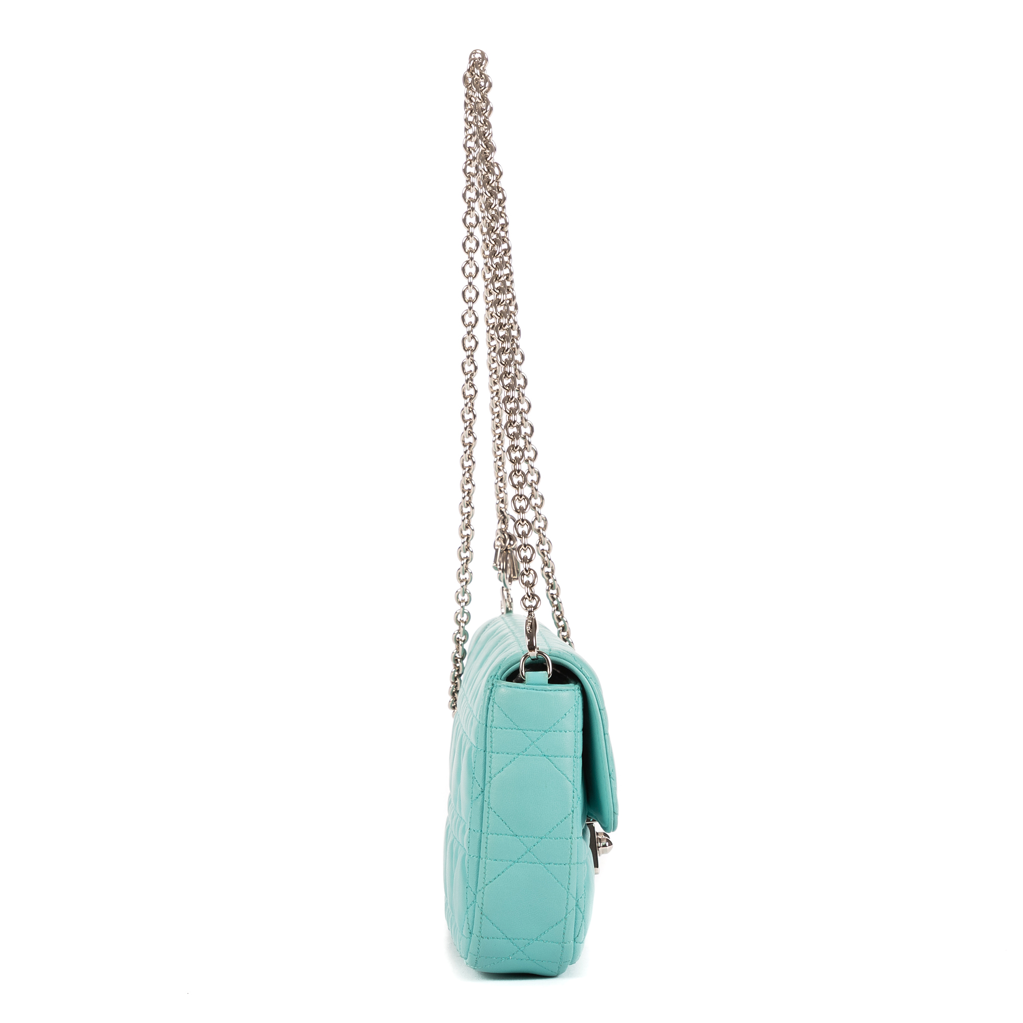Christian Dior Shoulder Bag Miss Dior Wallet On Chain in Turquoise Cannage Leather and Silver hardware. The product is in Perfect Condition (AA).