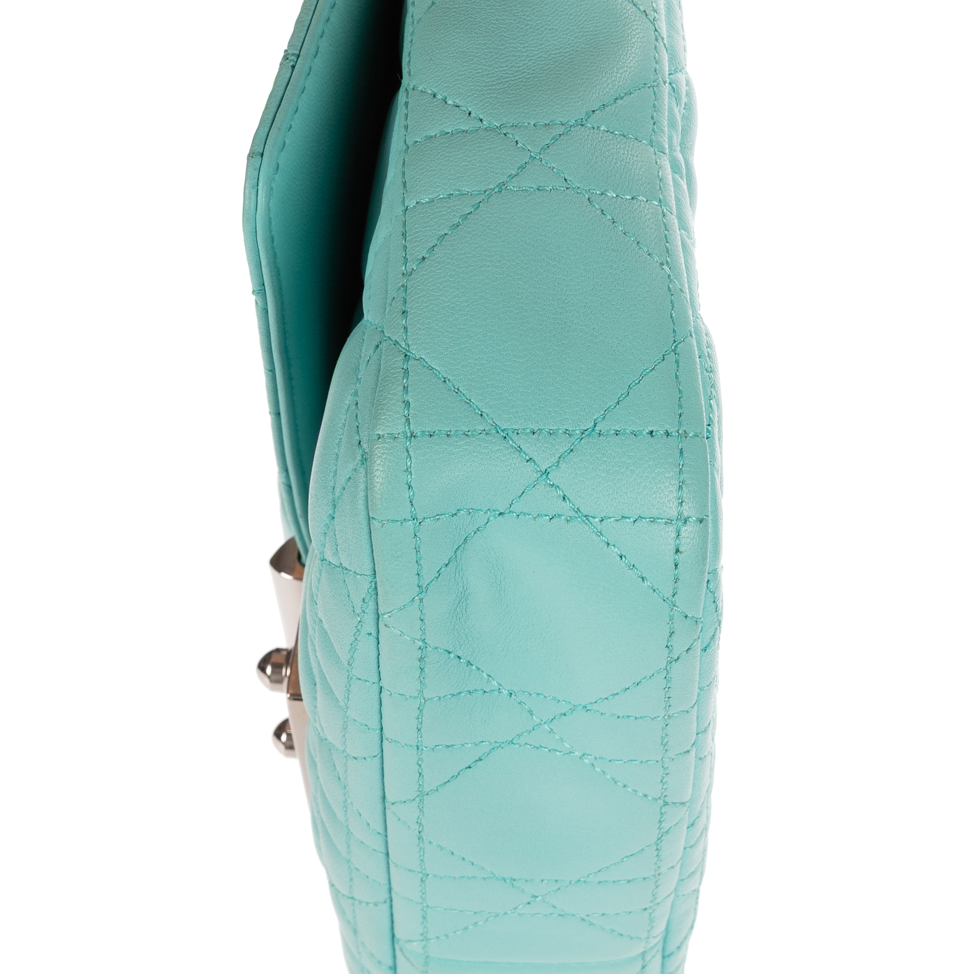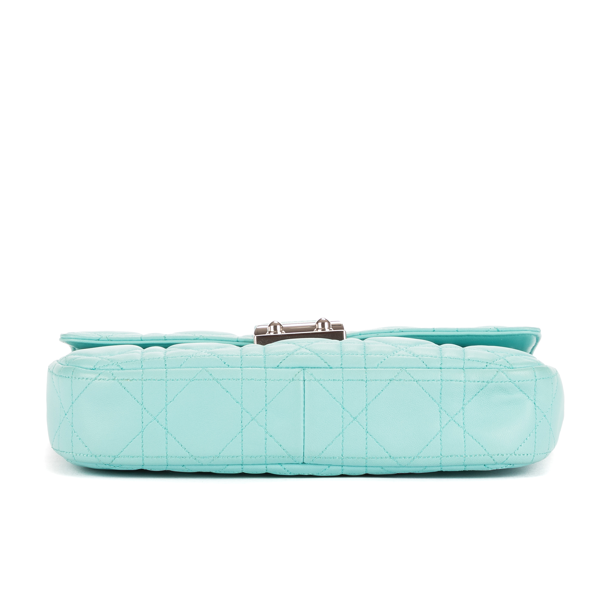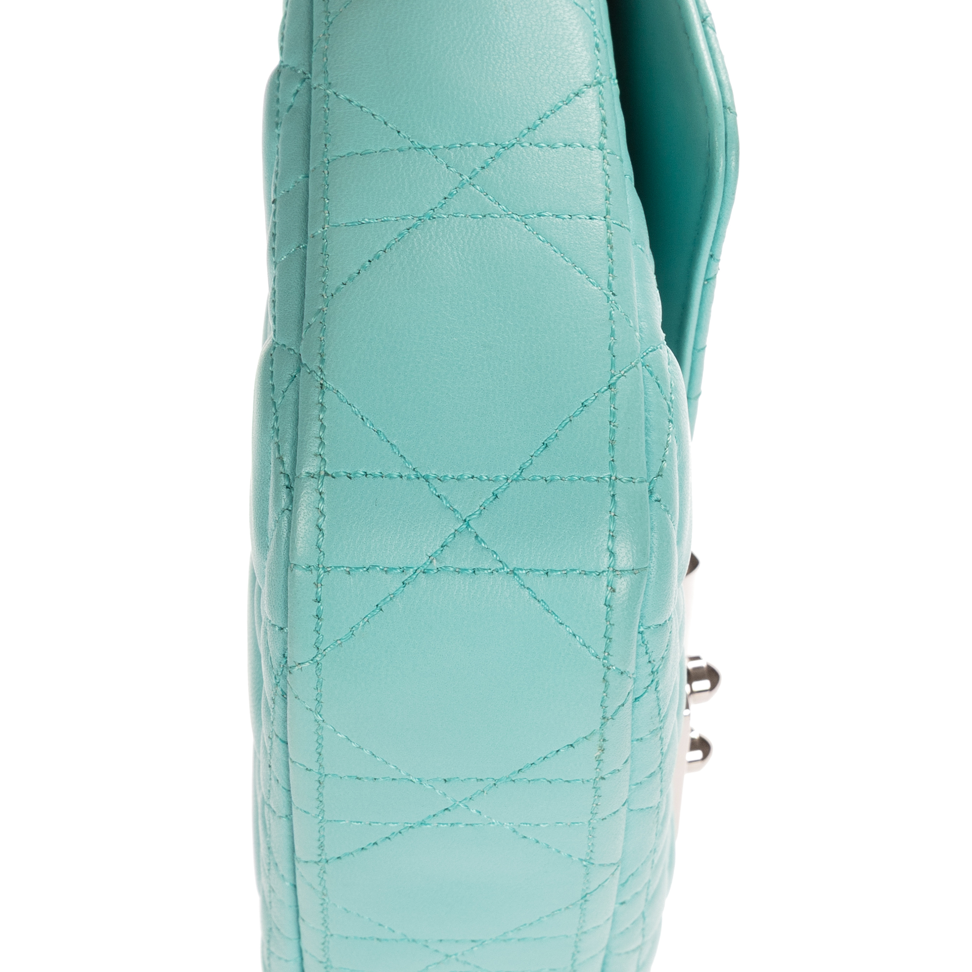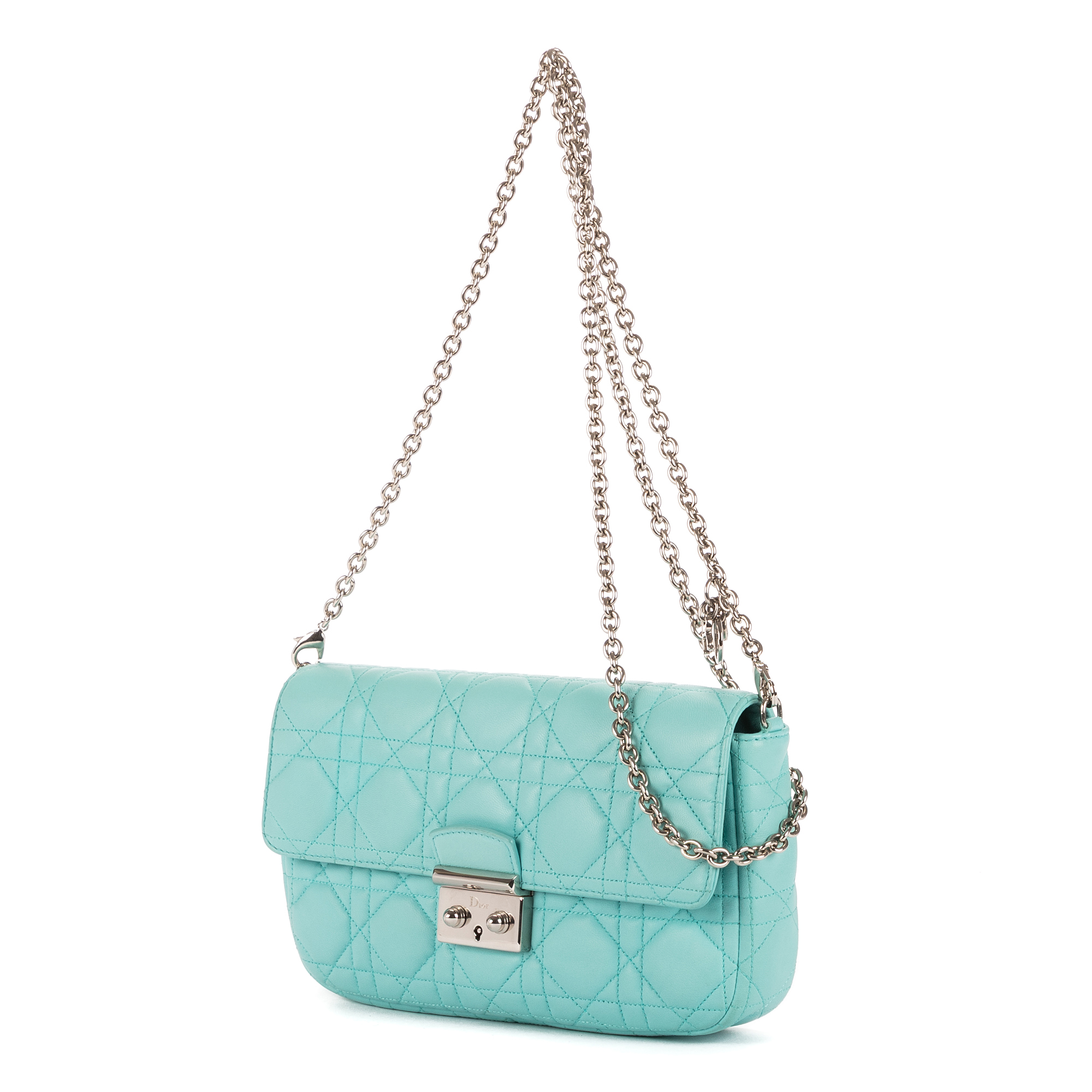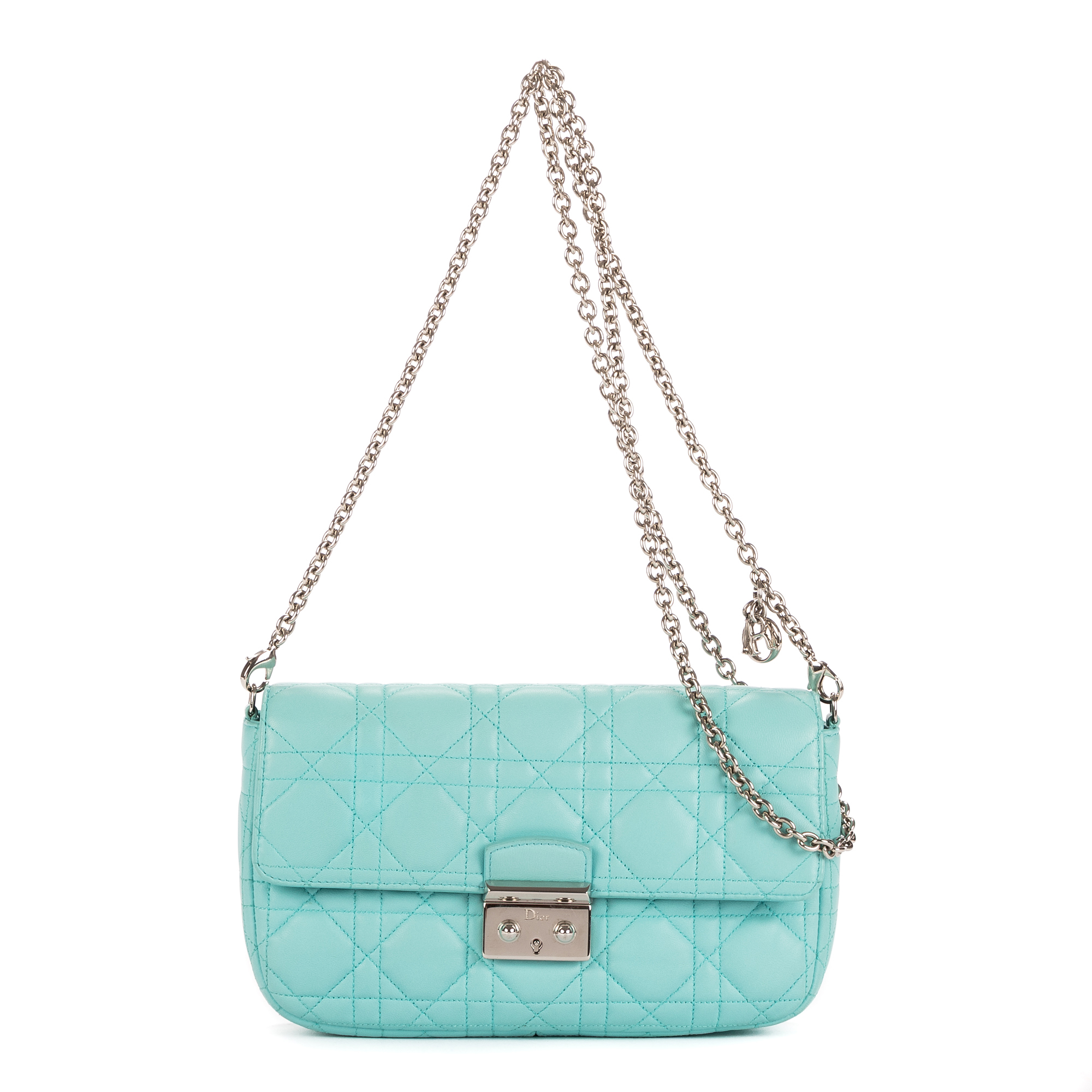 Christian Dior Shoulder Bag Miss Dior Wallet On Chain in Turquoise Cannage Leather and Silver hardware. The product is in Perfect Condition (AA).
