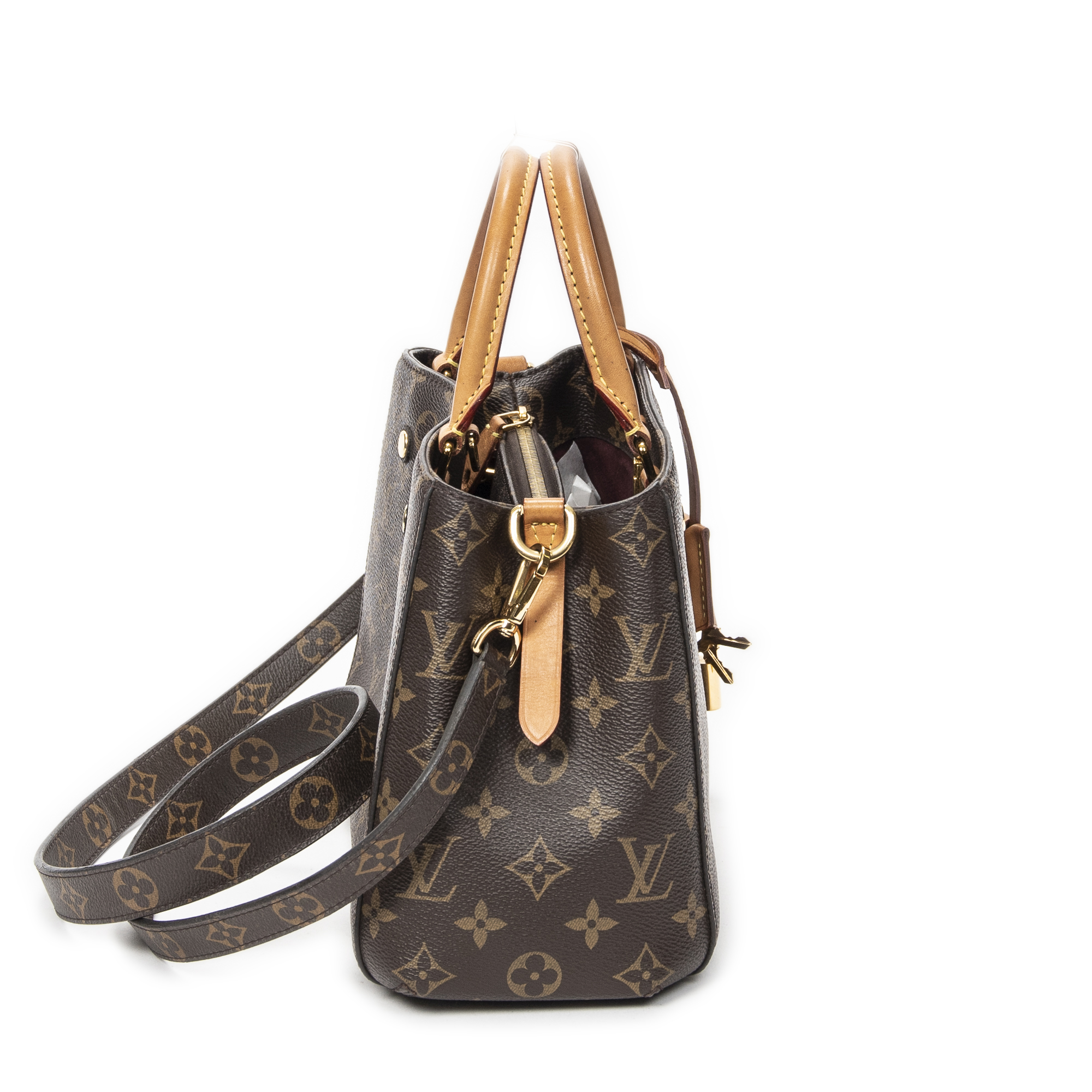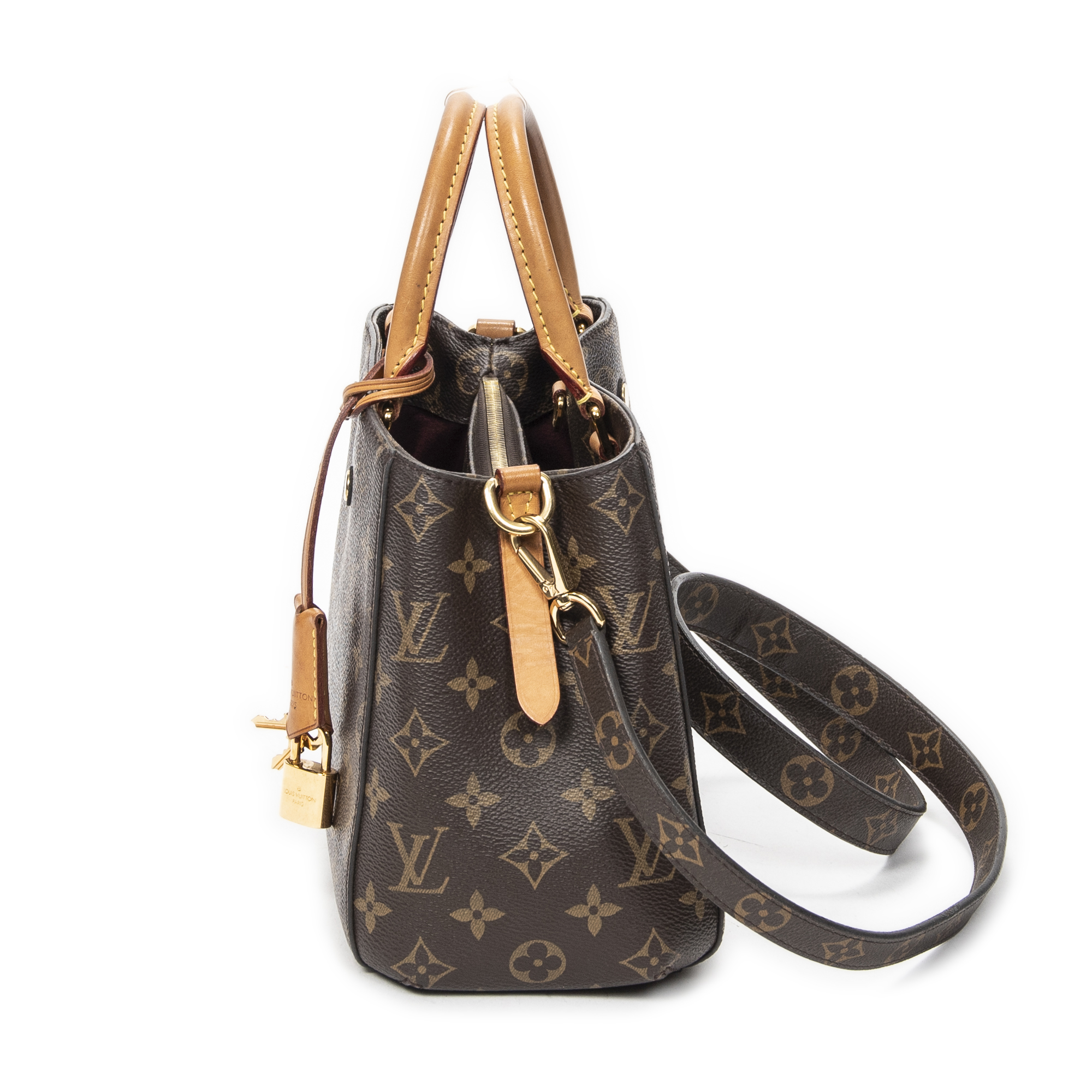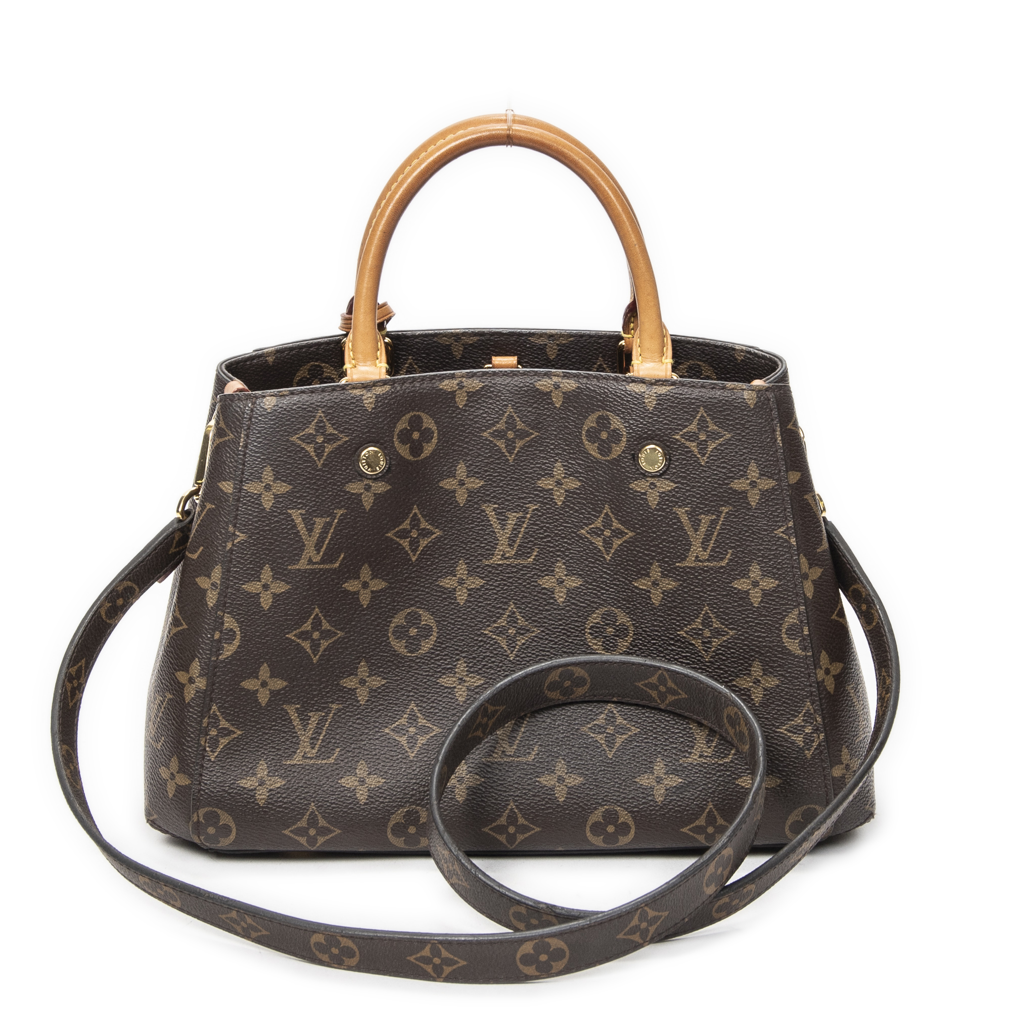 Louis Vuitton Shoulder Bag Montaigne BB in Brown Monogram Canvas and Golden Brass hardware. The product is in Very Good Condition (AB).
