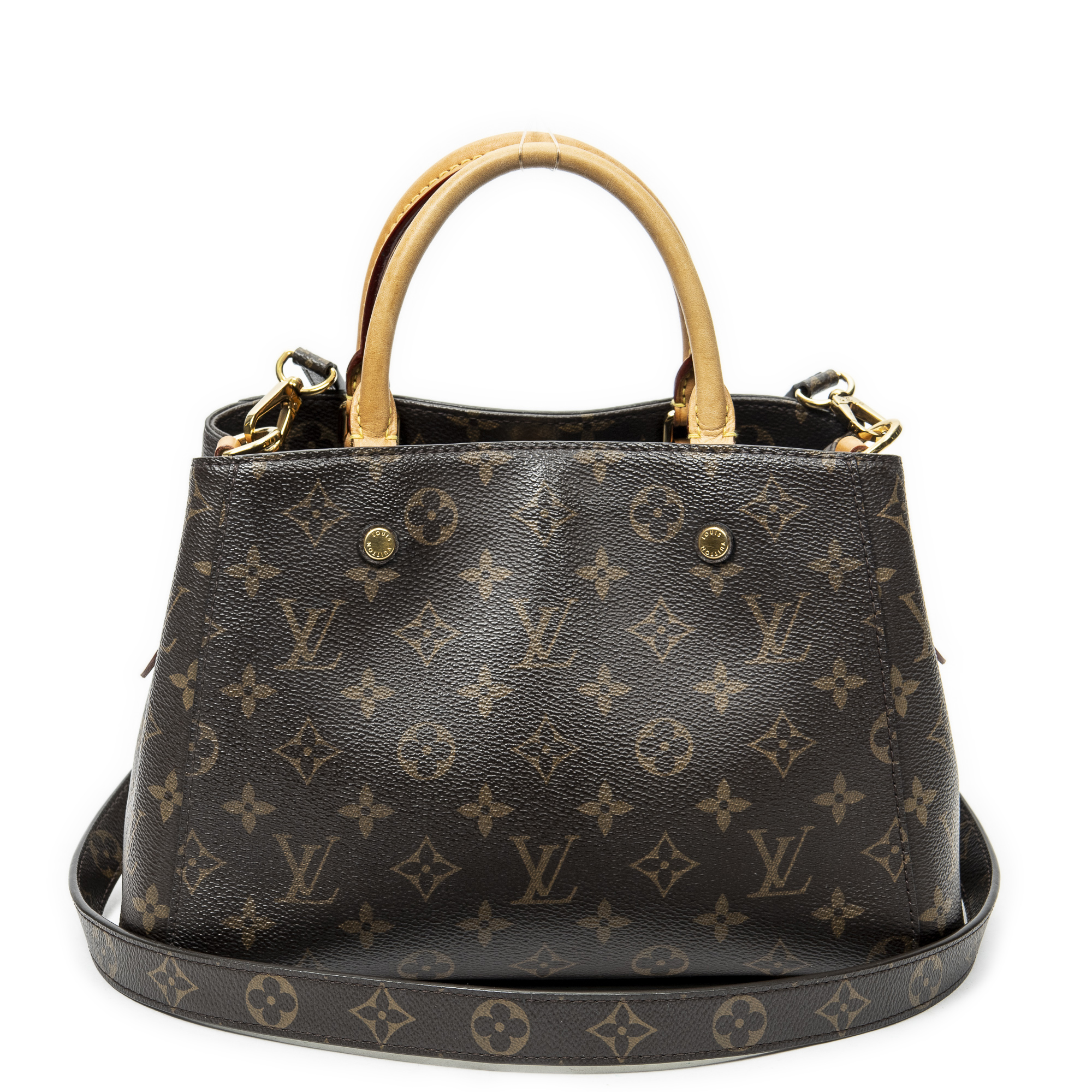 Louis Vuitton Shoulder Bag Montaigne BB in Brown Monogram Canvas and Golden Brass hardware. The product is in Excellent Condition (A).