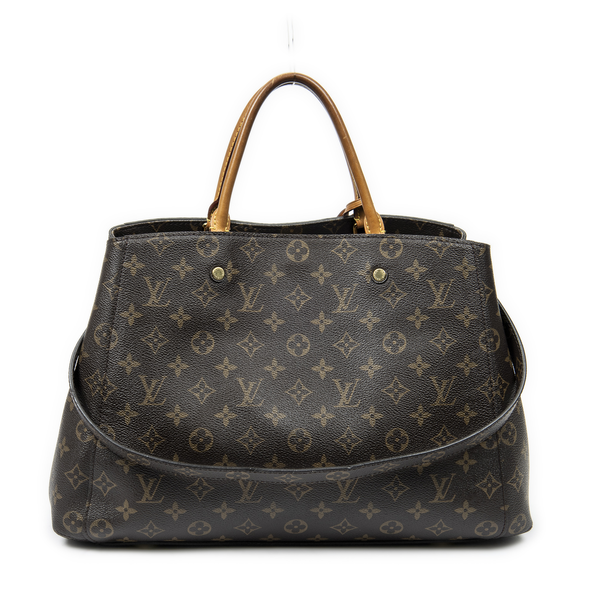 Louis Vuitton Shoulder Bag Montaigne GM in Brown Monogram Canvas and Golden Brass hardware. The product is in Very Good Condition (AB).