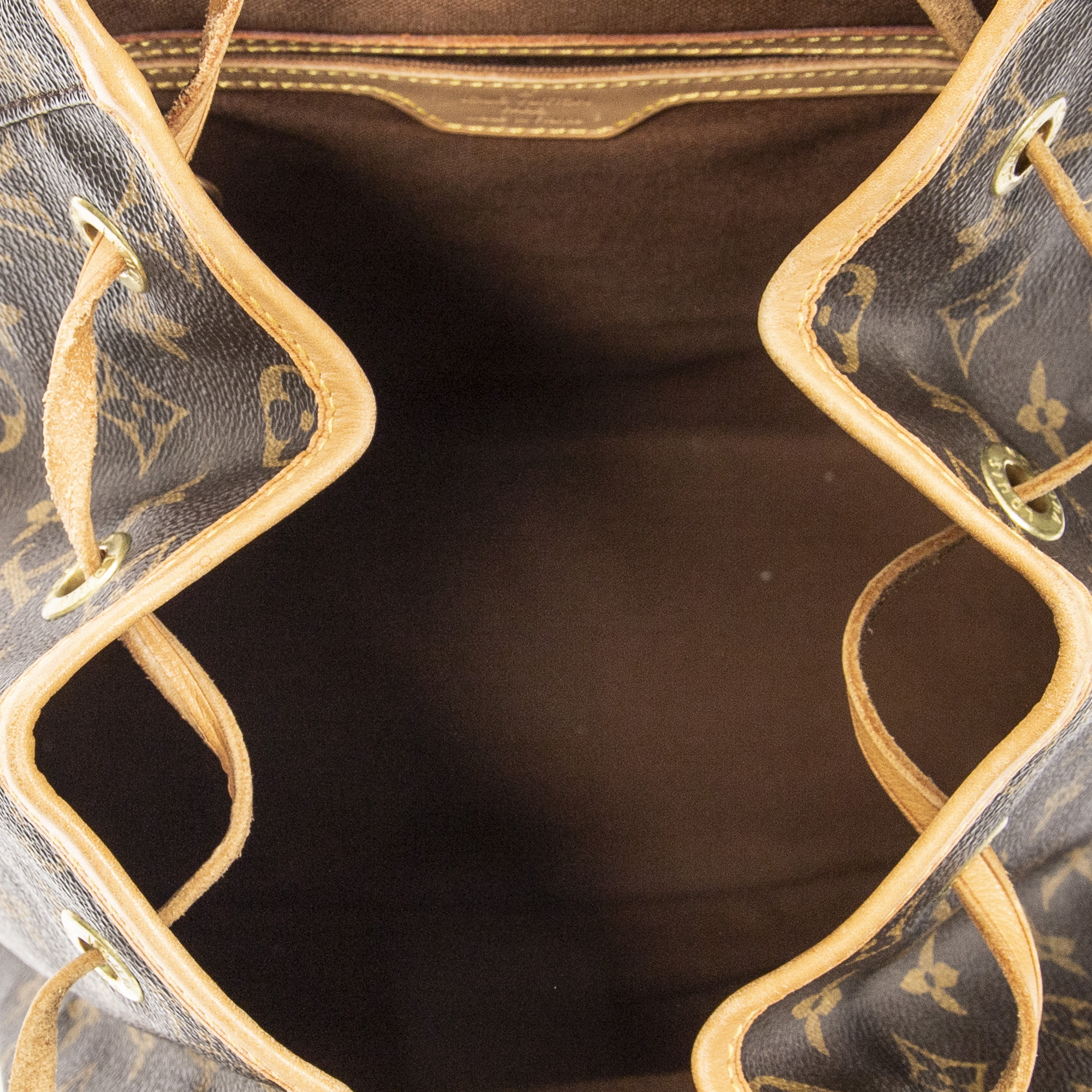 Louis Vuitton Shoulder Bag Montsouris GM in Brown Monogram Canvas and Golden Brass hardware. The product is in Very Good Condition (AB).