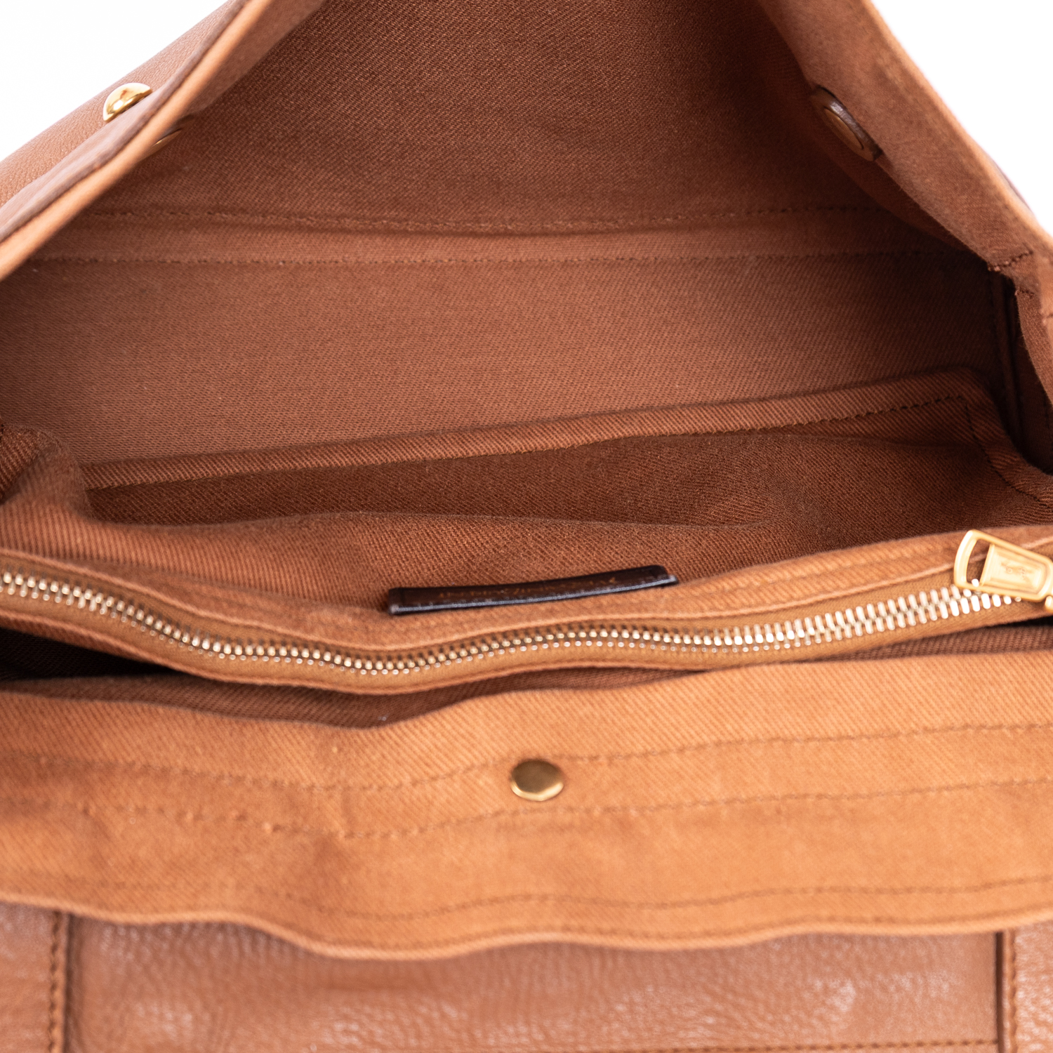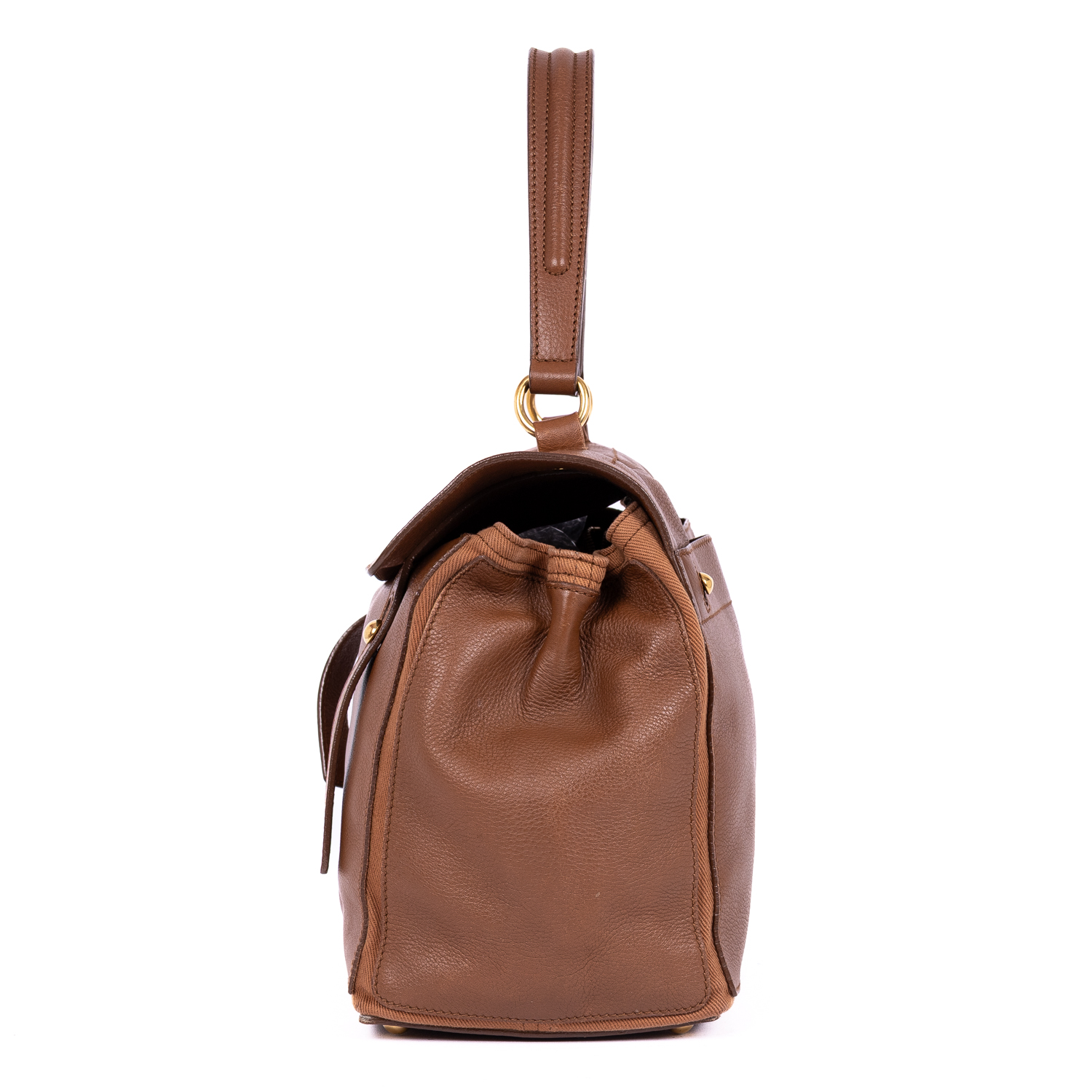 Yves Saint Laurent Shoulder Bag Muse Two Medium in Brown Calfskin Leather and Gold hardware. The product is in Excellent Condition (A).