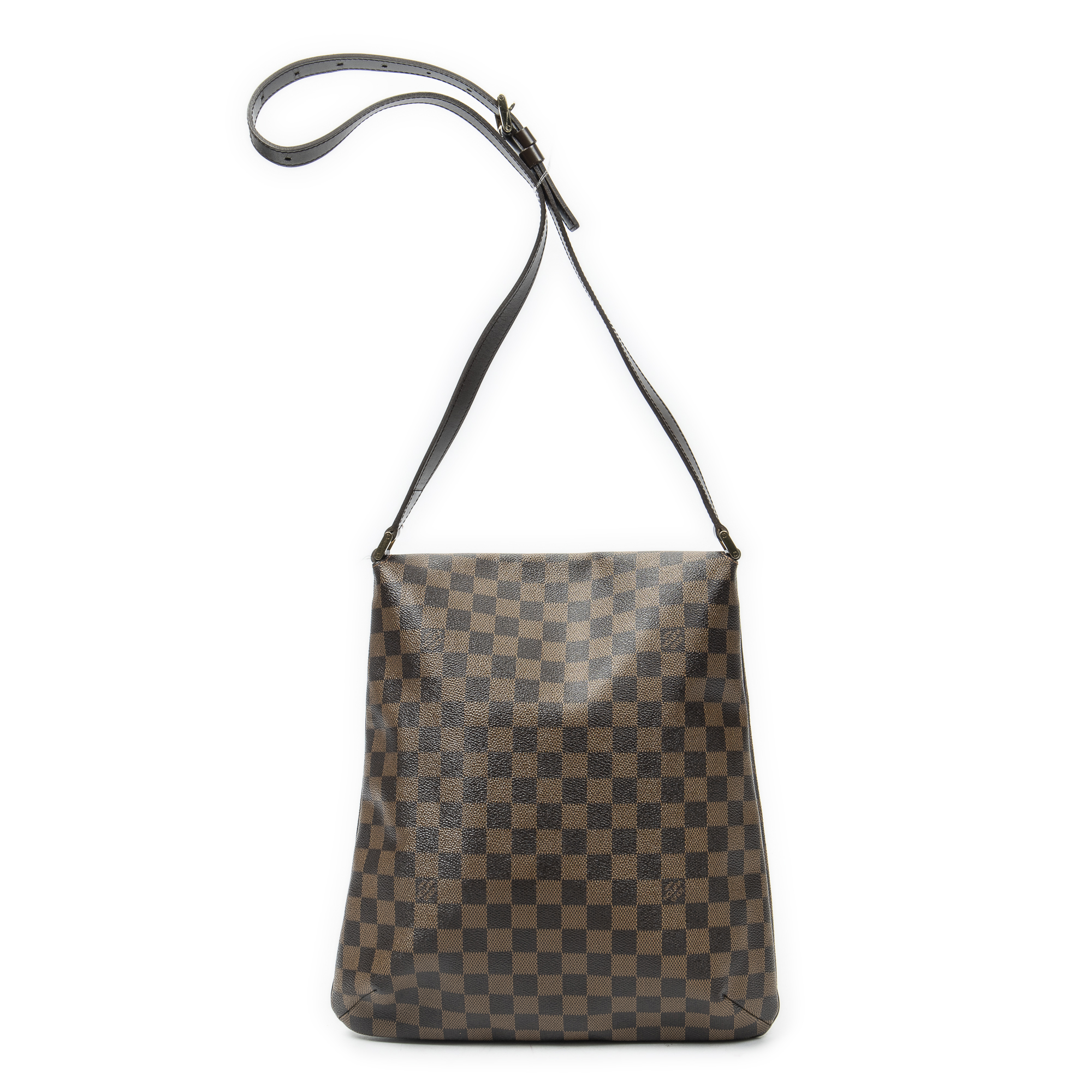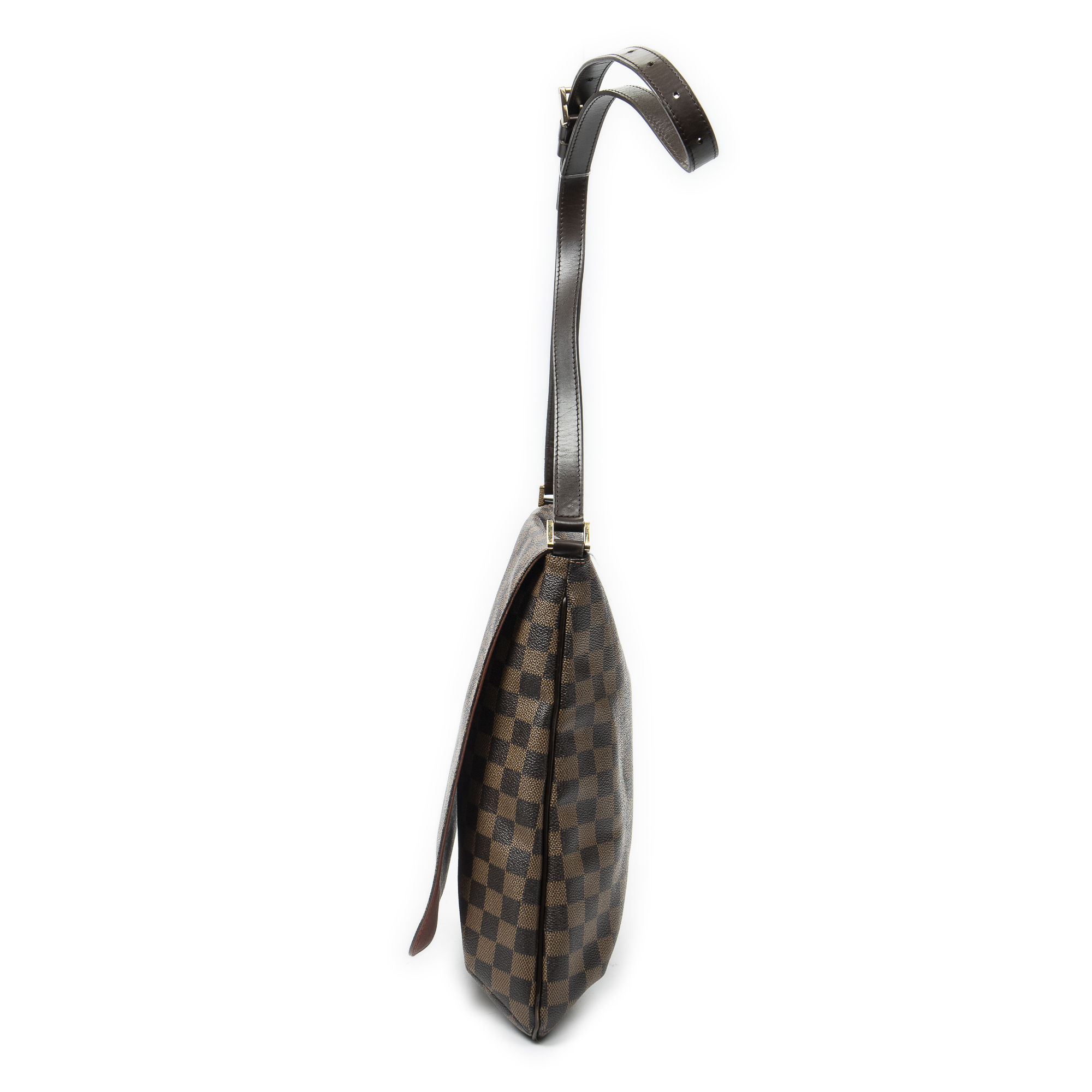 Louis Vuitton Shoulder Bag Musette in Brown Damier Ebene and Golden Brass hardware. The product is in Excellent Condition (A).