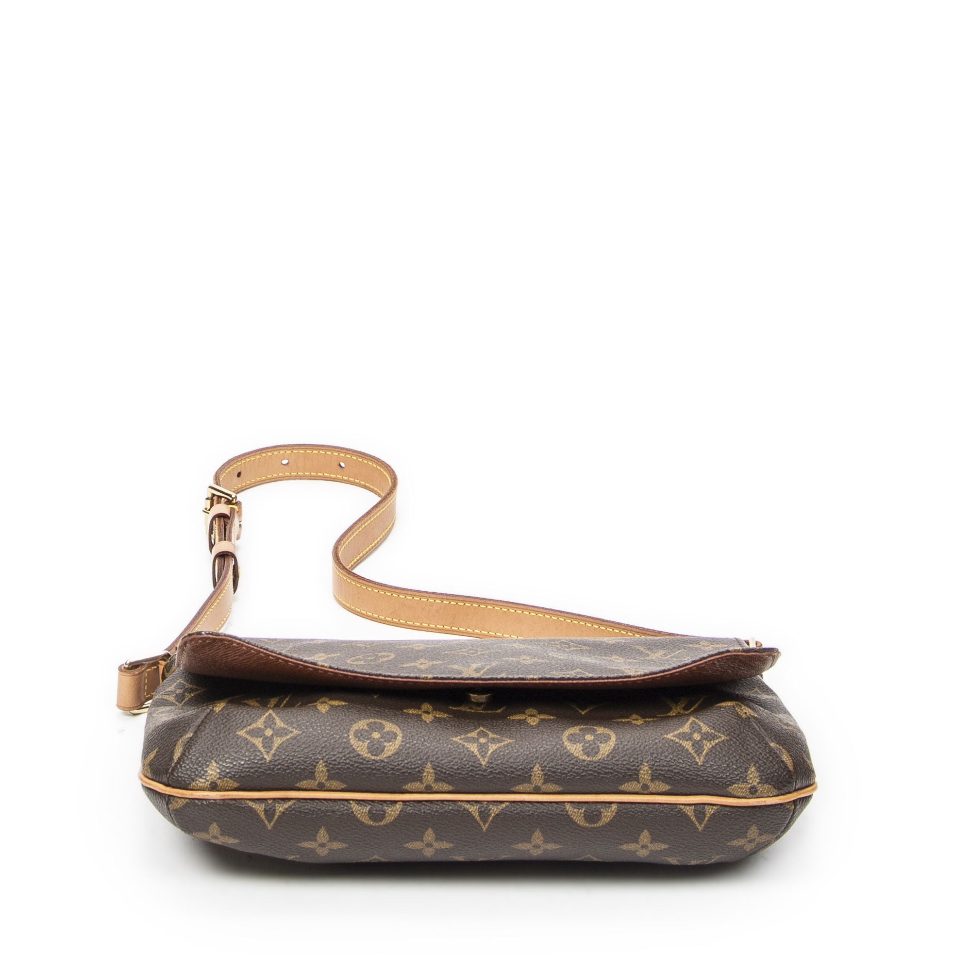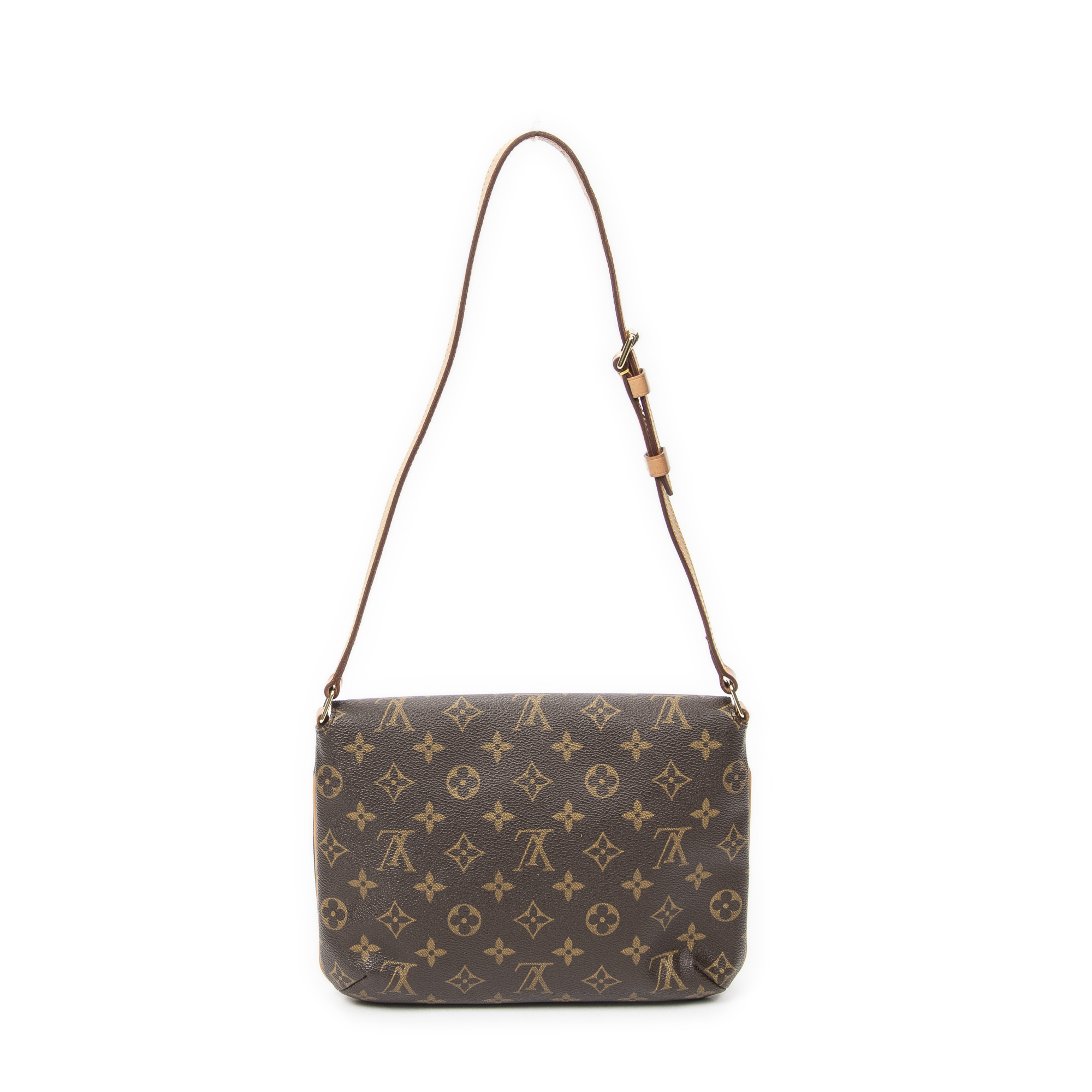 Louis Vuitton Shoulder Bag Musette Salsa in Brown Monogram Canvas and Golden Brass hardware. The product is in Excellent Condition (A).