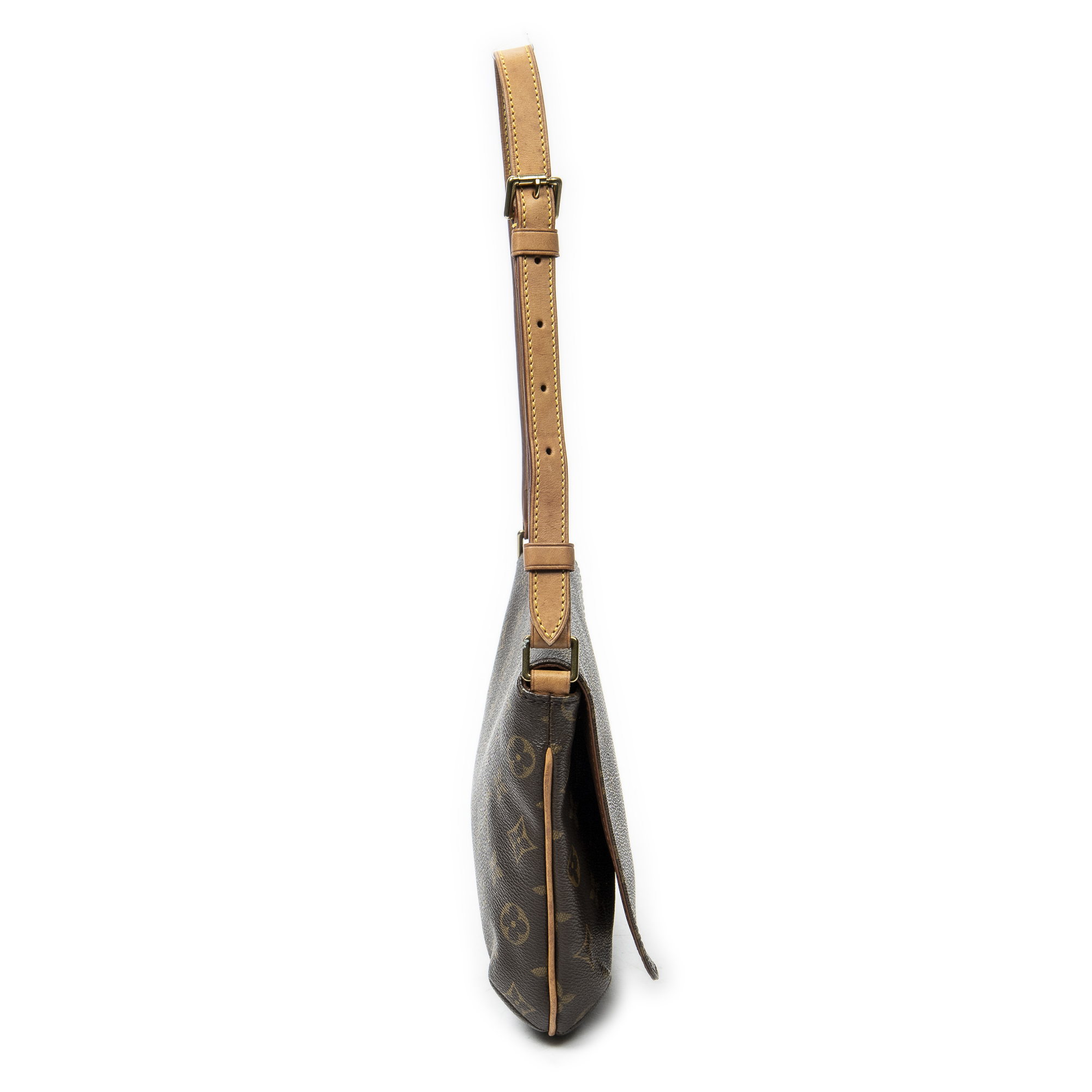 Louis Vuitton Shoulder Bag Musette Tango in Brown Monogram Canvas and Golden Brass hardware. The product is in Very Good Condition (AB).