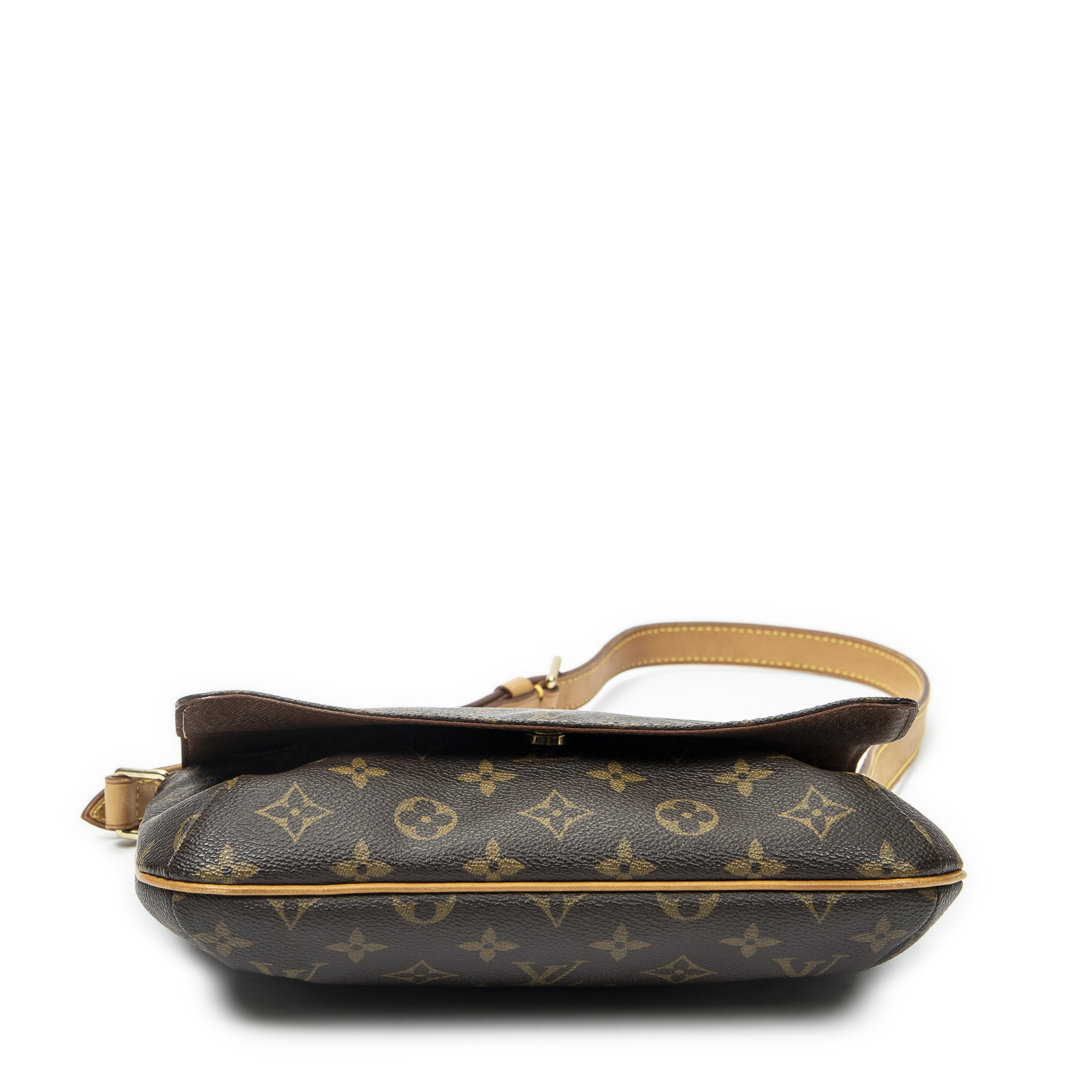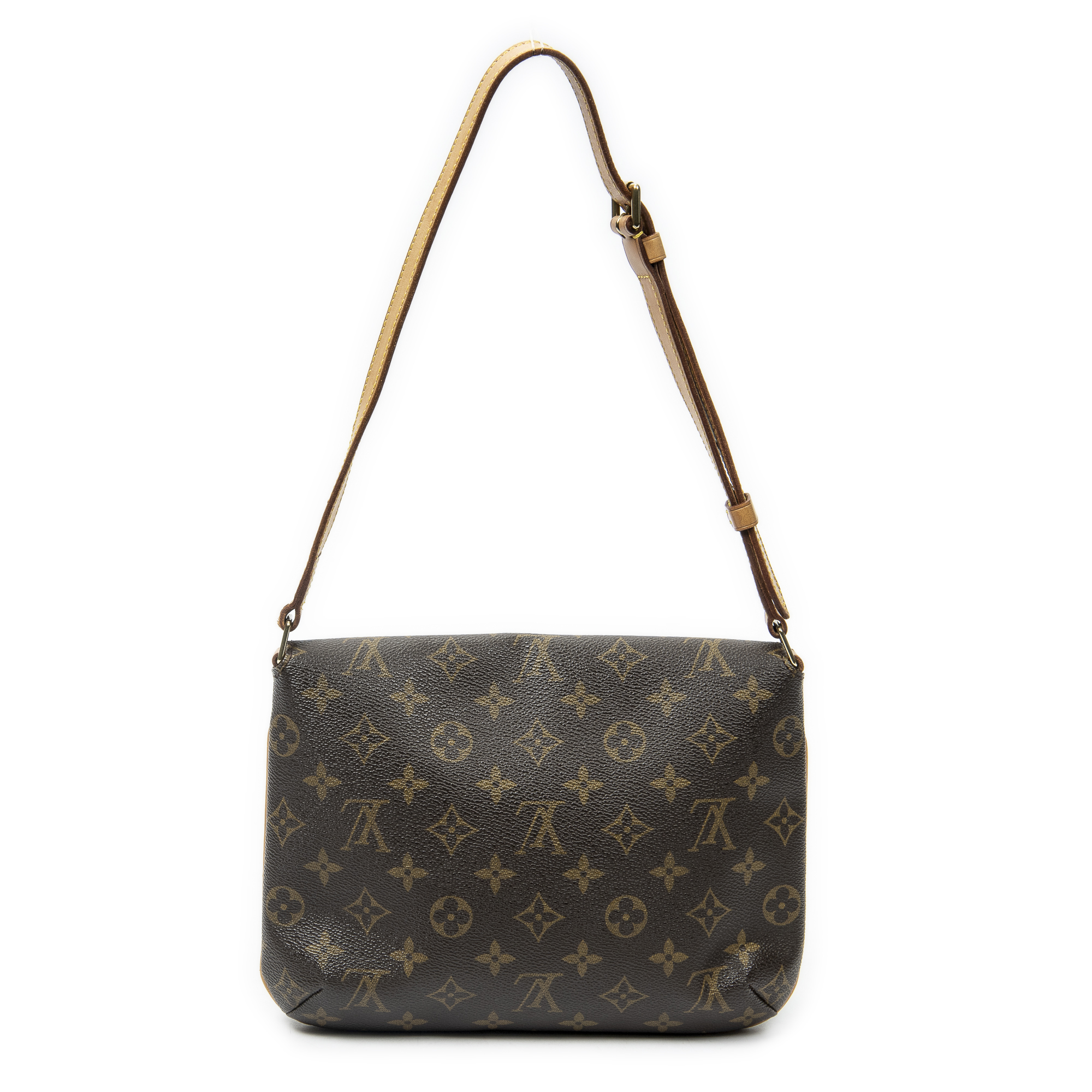 Louis Vuitton Shoulder Bag Musette Tango in Brown Monogram Canvas and Golden Brass hardware. The product is in Excellent Condition (A).