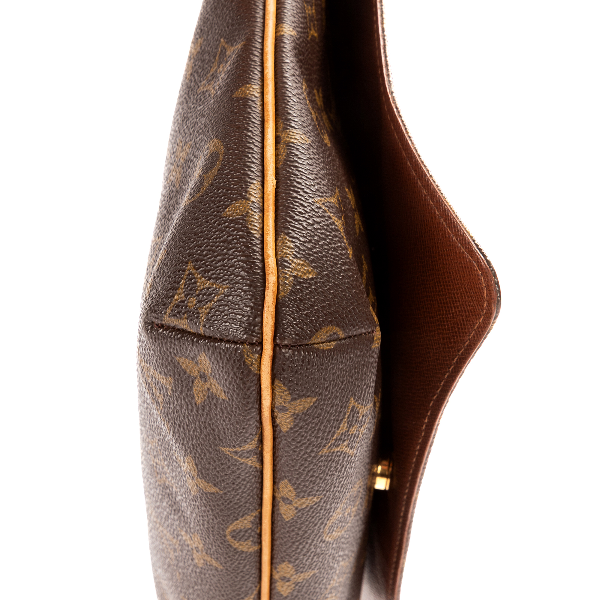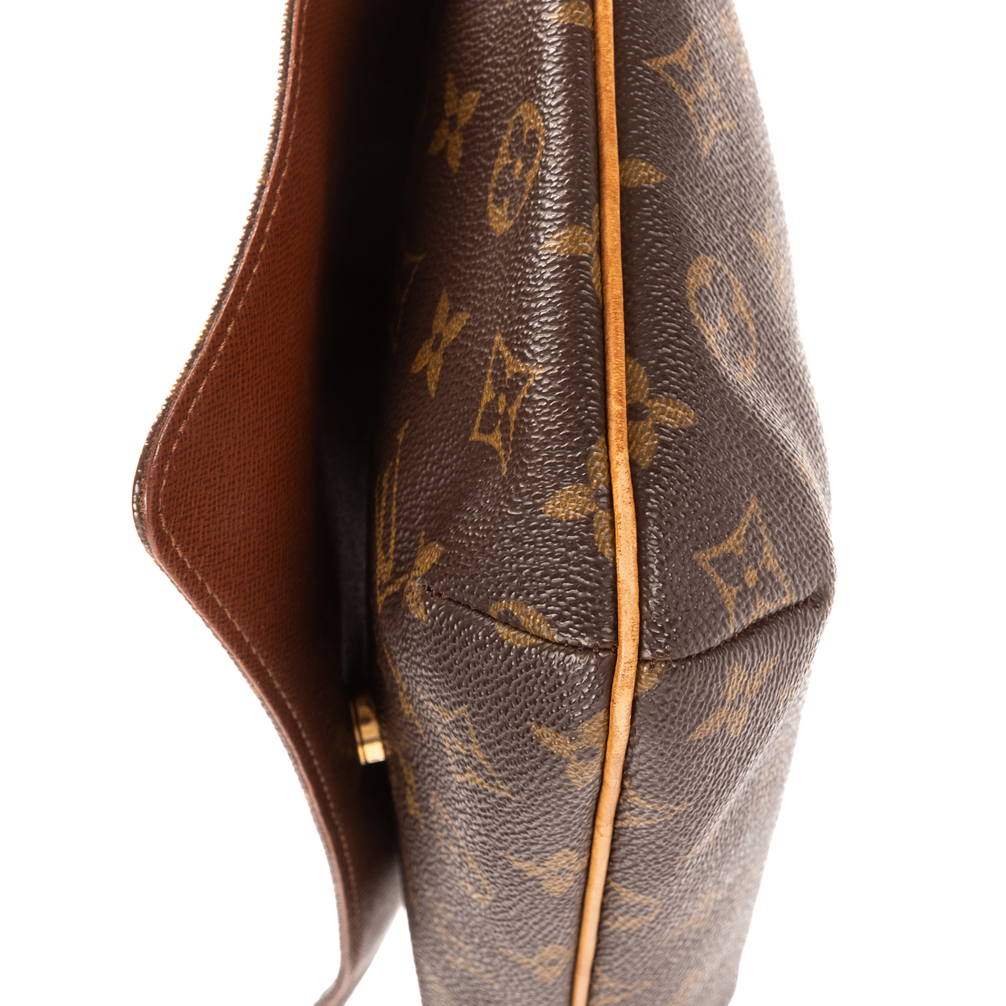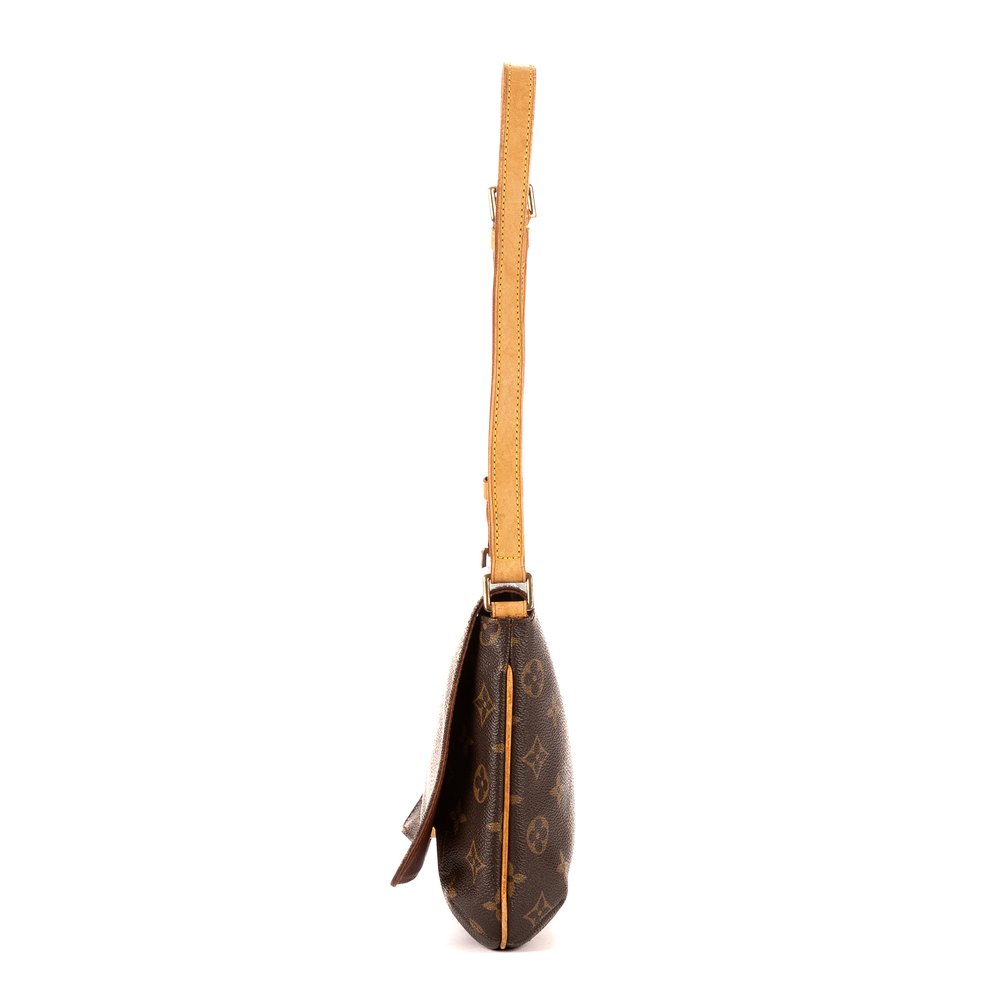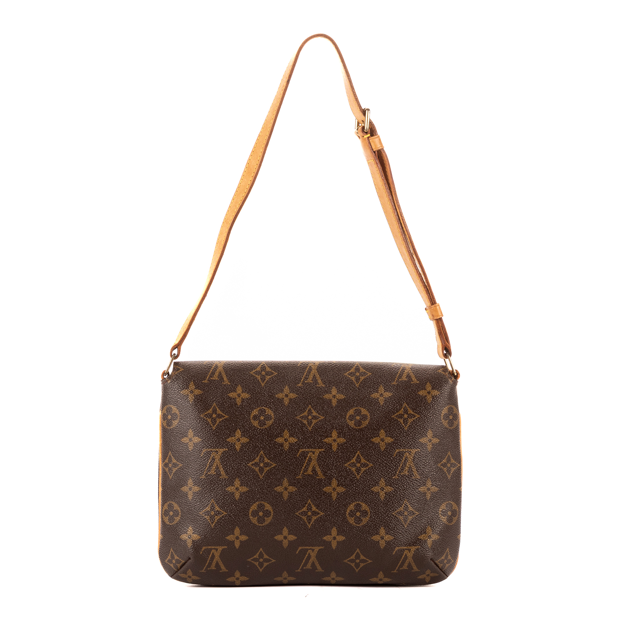 Louis Vuitton Shoulder Bag Musette Tango in Brown Monogram Canvas and Golden Brass hardware. The product is in Excellent Condition (A).
